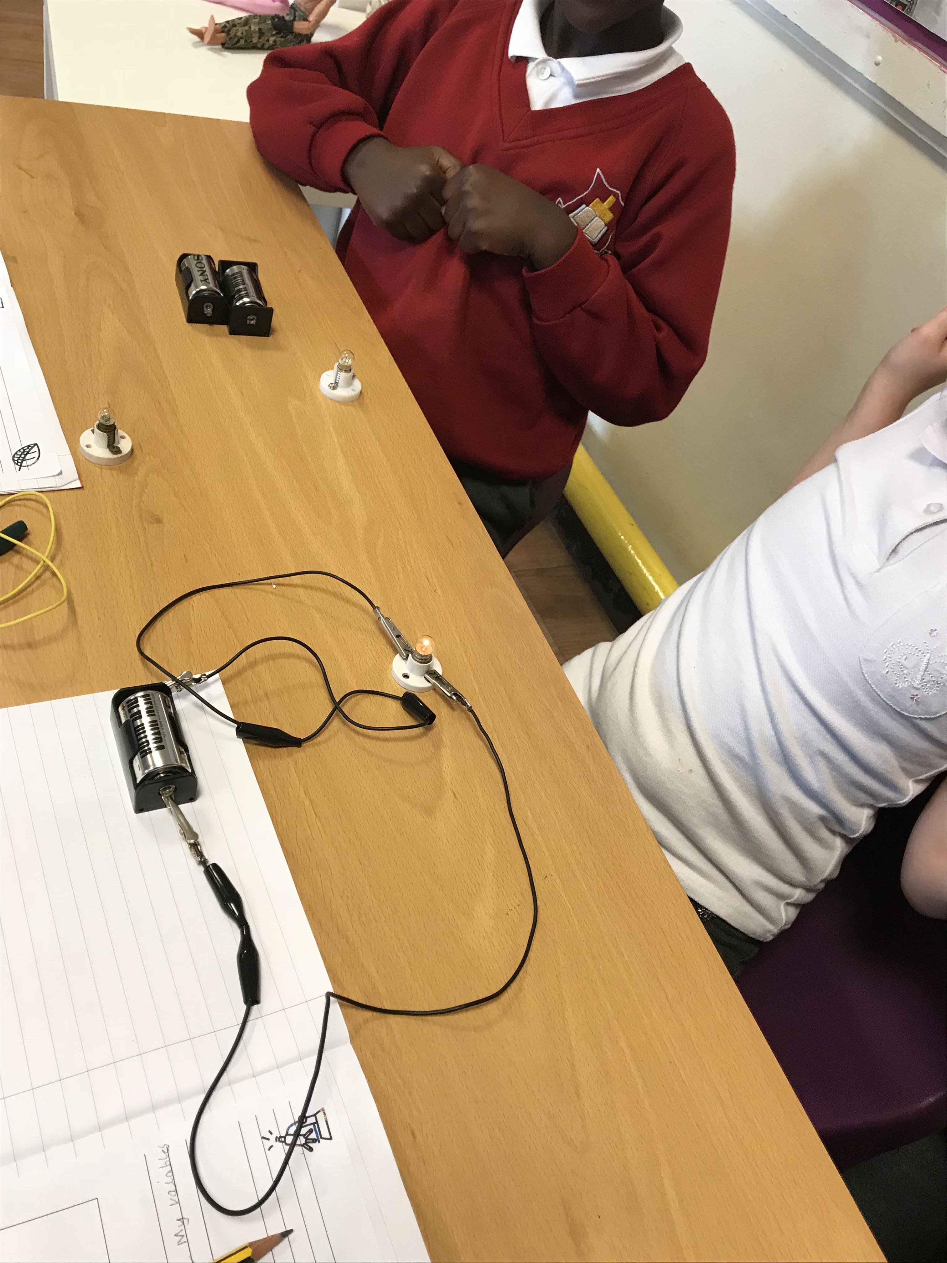 Year 2 have been busy this half term learning about electricity. They ended their unit of work by investigating how to change the brightness of a bulb depending on the amount of electricity within a circuit. They loved using the wires, bulbs and batteries.
