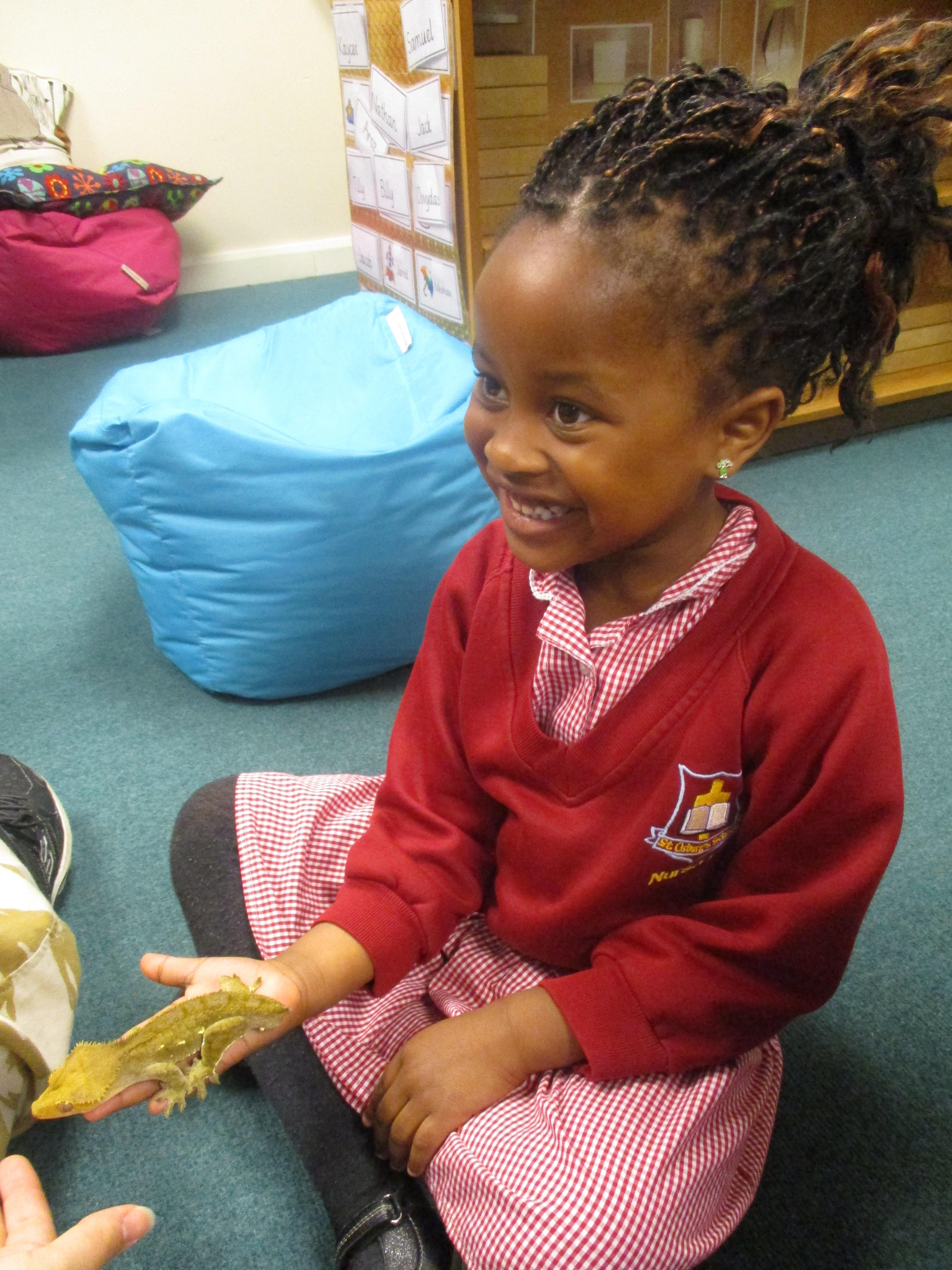 We had an amazing visit from KPN Reptiles and they brought lots of different animals into nursery for us to hold. We had a chance to hold Geoffrey the Bearded Dragon, Olive the Boa-Constrictor, Dredd and Sticky the Gecko's and Shelly the giant land snail.