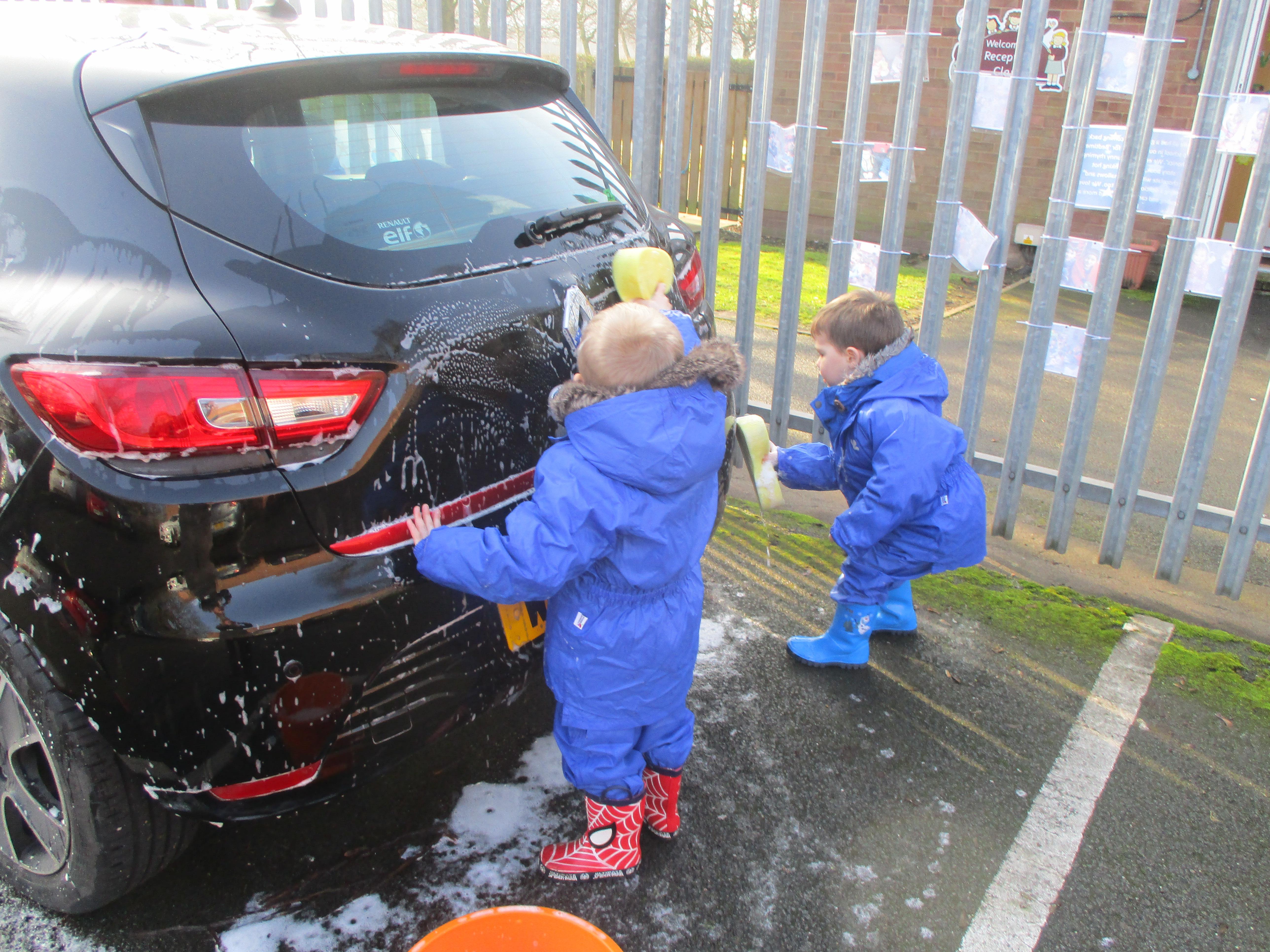 We have been developing our gross motor skills and learning about the world around us as we had fun washing cars.We made sure they were bright and shiny so that they are easier to see and safer on the roads.