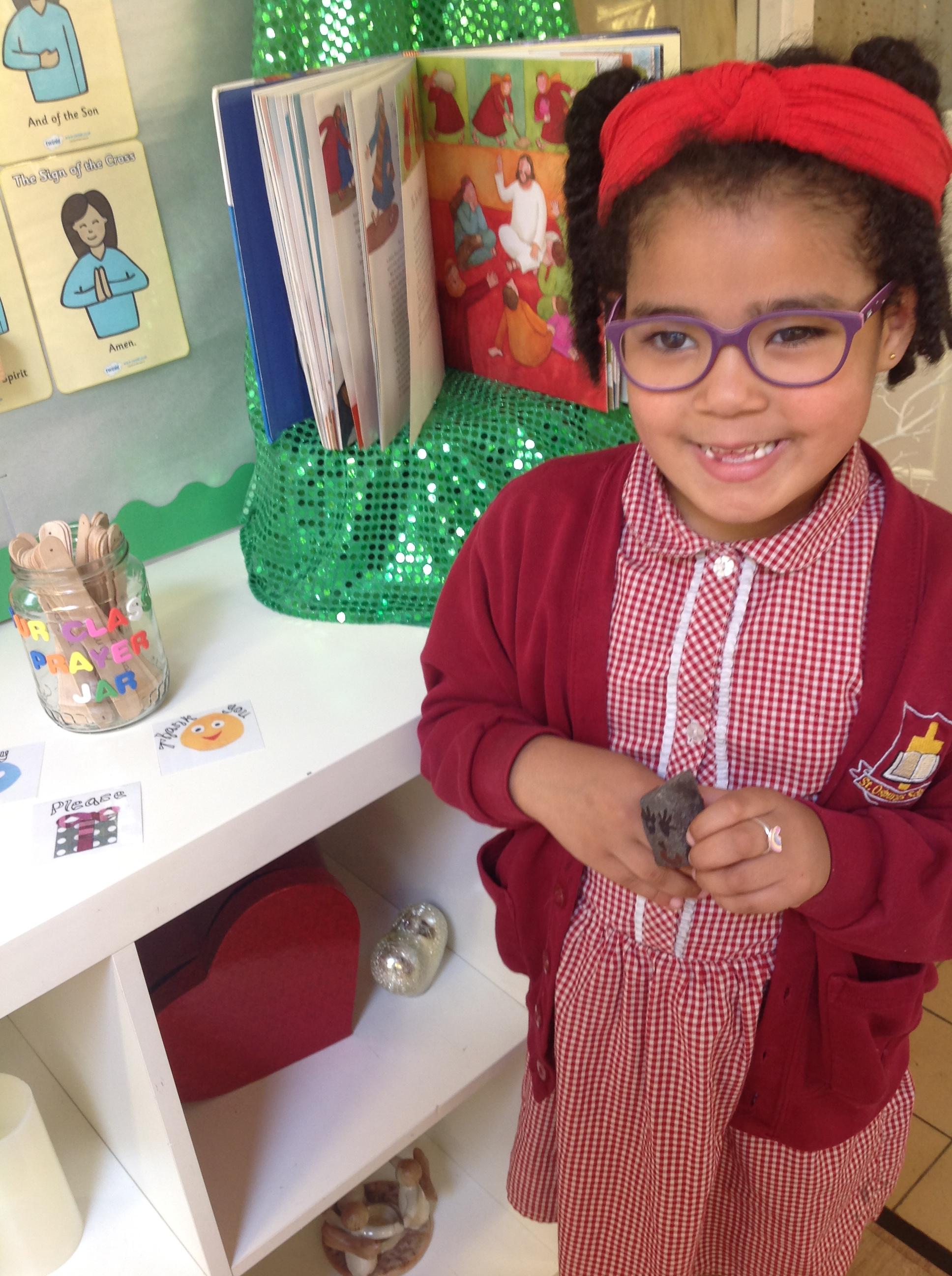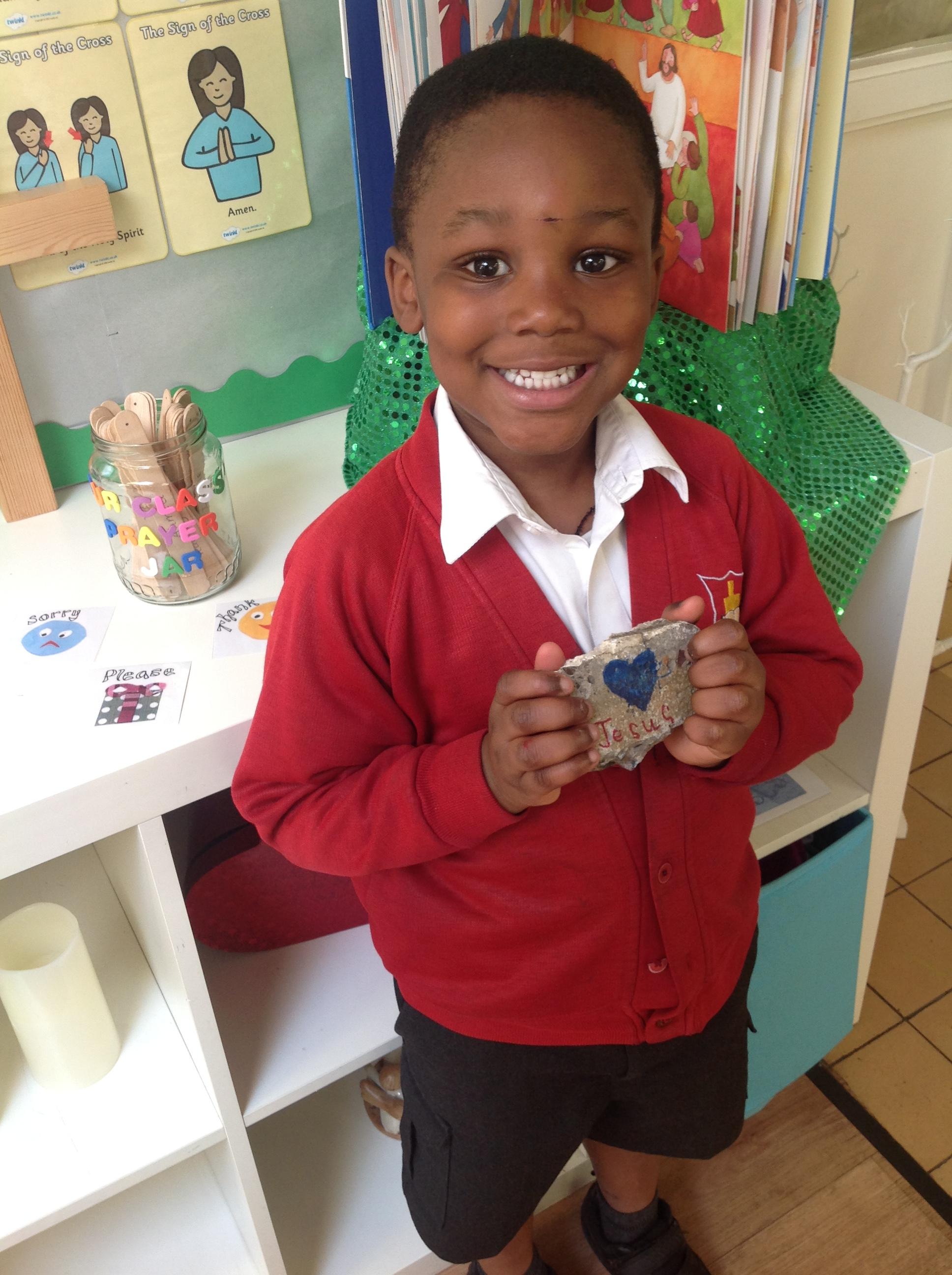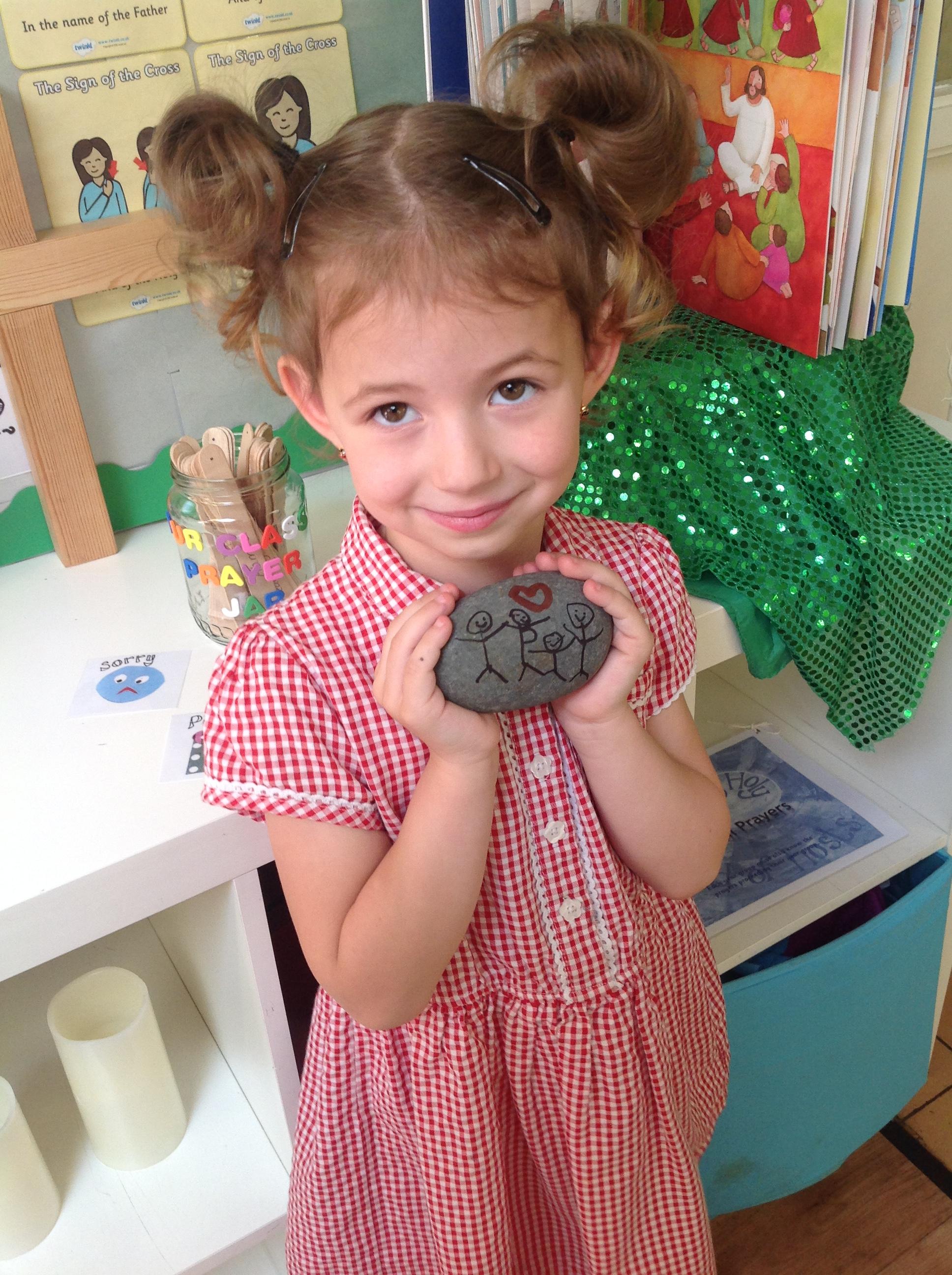 We made our own prayer stones to help us think of personal prayers to Jesus