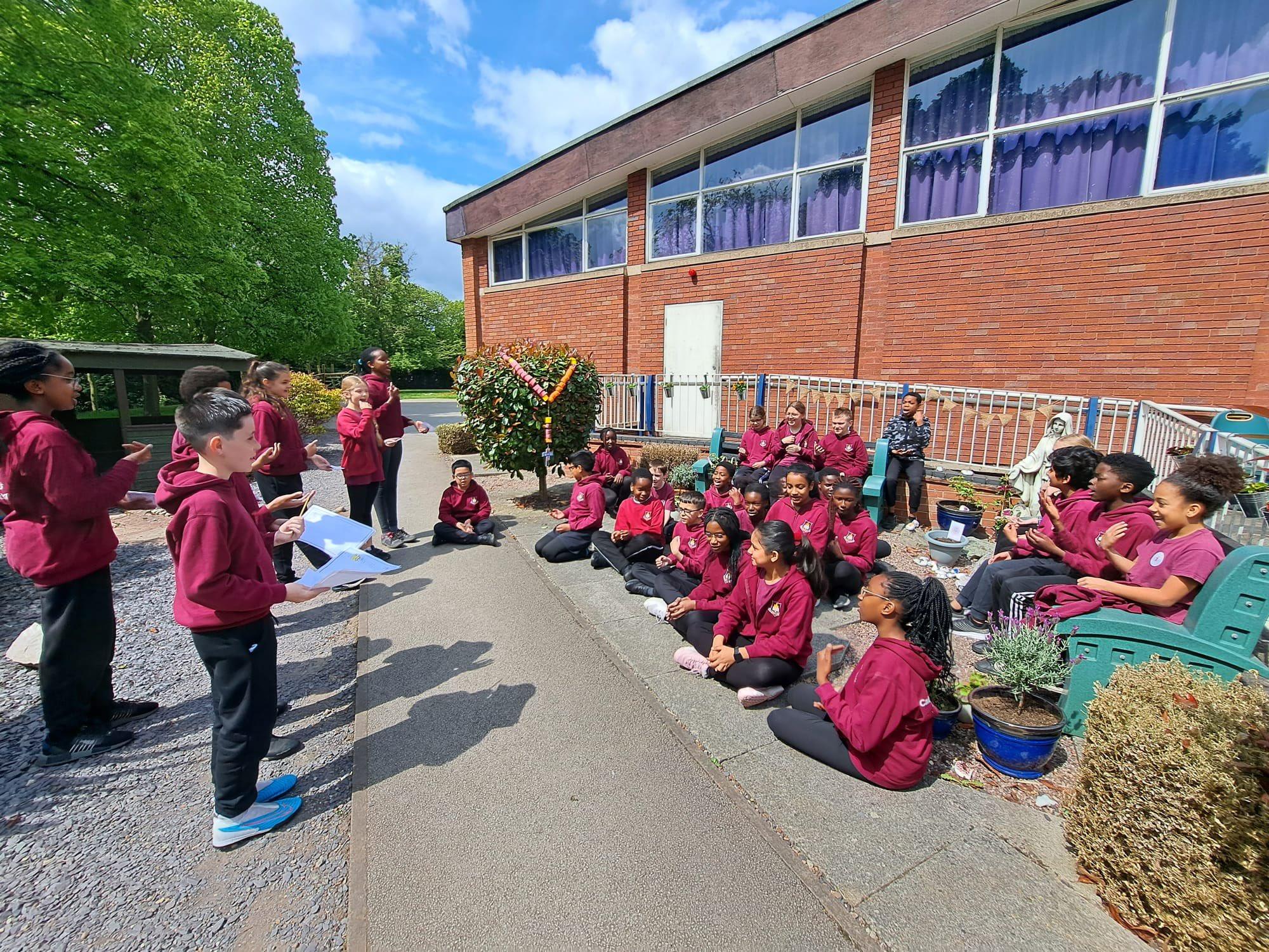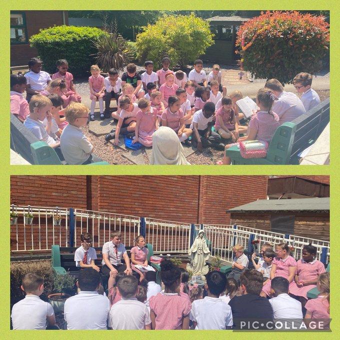 One of our lovely members of staff, Mrs Blow, has kindly revamped our Prayer Garden that has a few lovely features such as, a huge Rosary, flowers, a decorated banner, some prayer stones and a wonderful statue of Mary. Some members (Chloe and Freya) have offered to take some time out of their breaks to water the flowers.