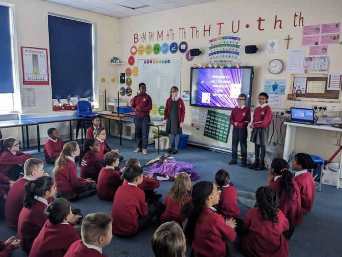 We will be talking about what happened this year with the chaplaincy team. Lots of things happened this term! We started this term by forming our group of members with pupils from Year 3 to 6, 20 students applied by writing to Mrs Rynott about how we could help others to follow in Jesus’s footsteps, with all of us getting a spot on the team.