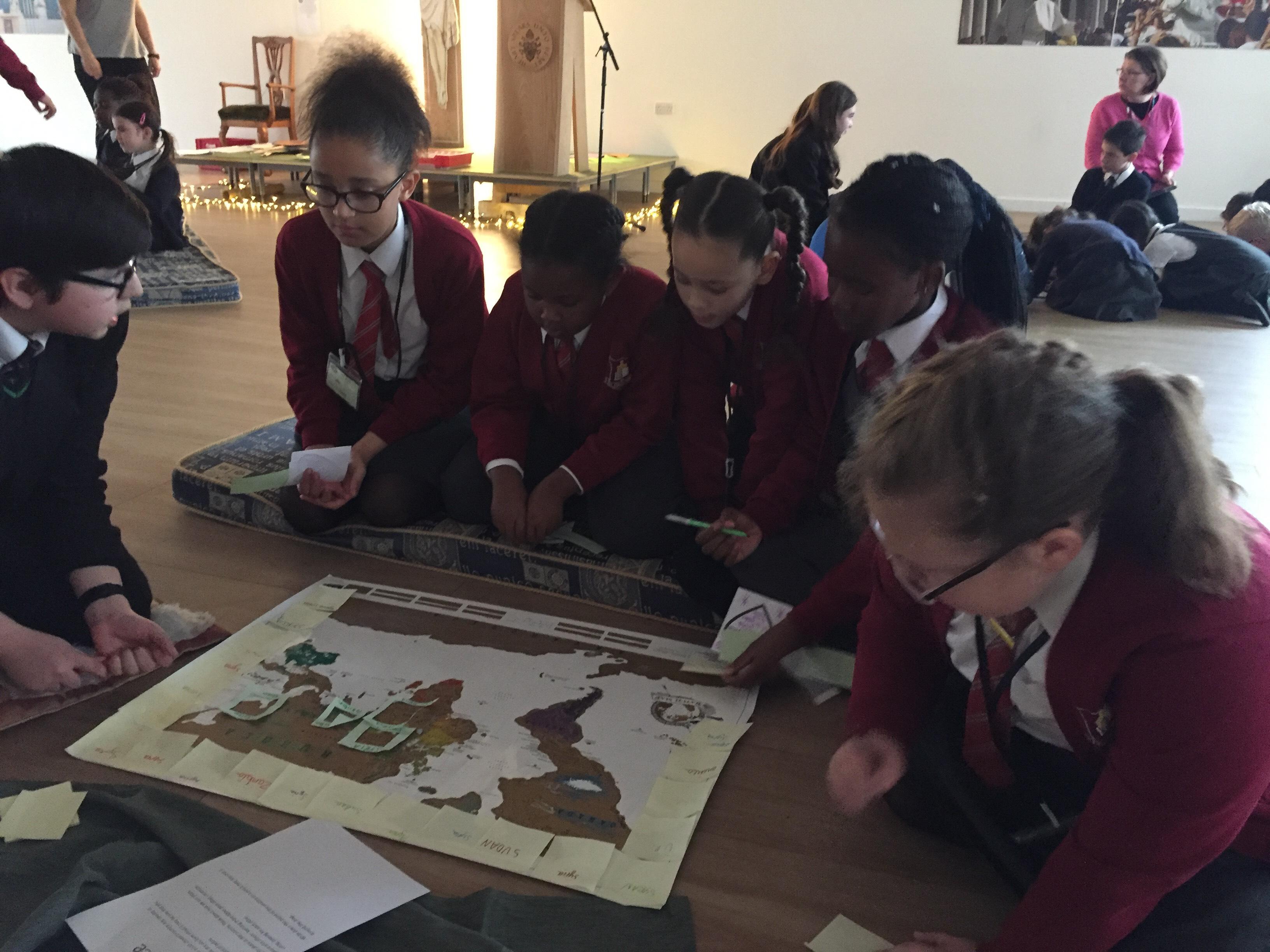 Our newly found team went checking the rooms to make sure they all had a crucifix ( Year 3 and 4 members) .The set of virtues and values for this term are Compassionate and Loving and we gave out posters for each classroom on these.