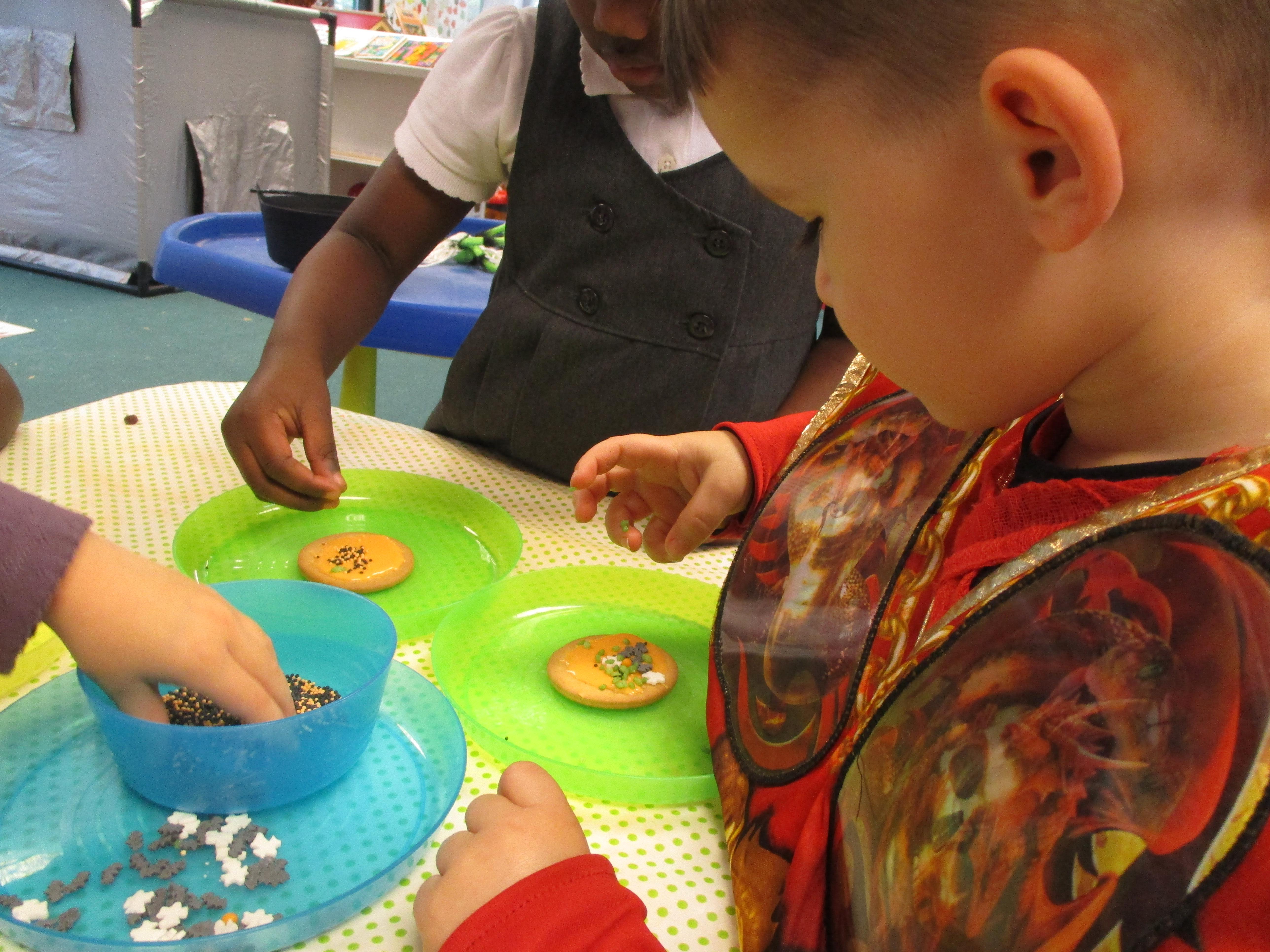 We have been having great fun carving pumpkins, making soup, decorating witch's biscuits and creating our own spooky pictures.