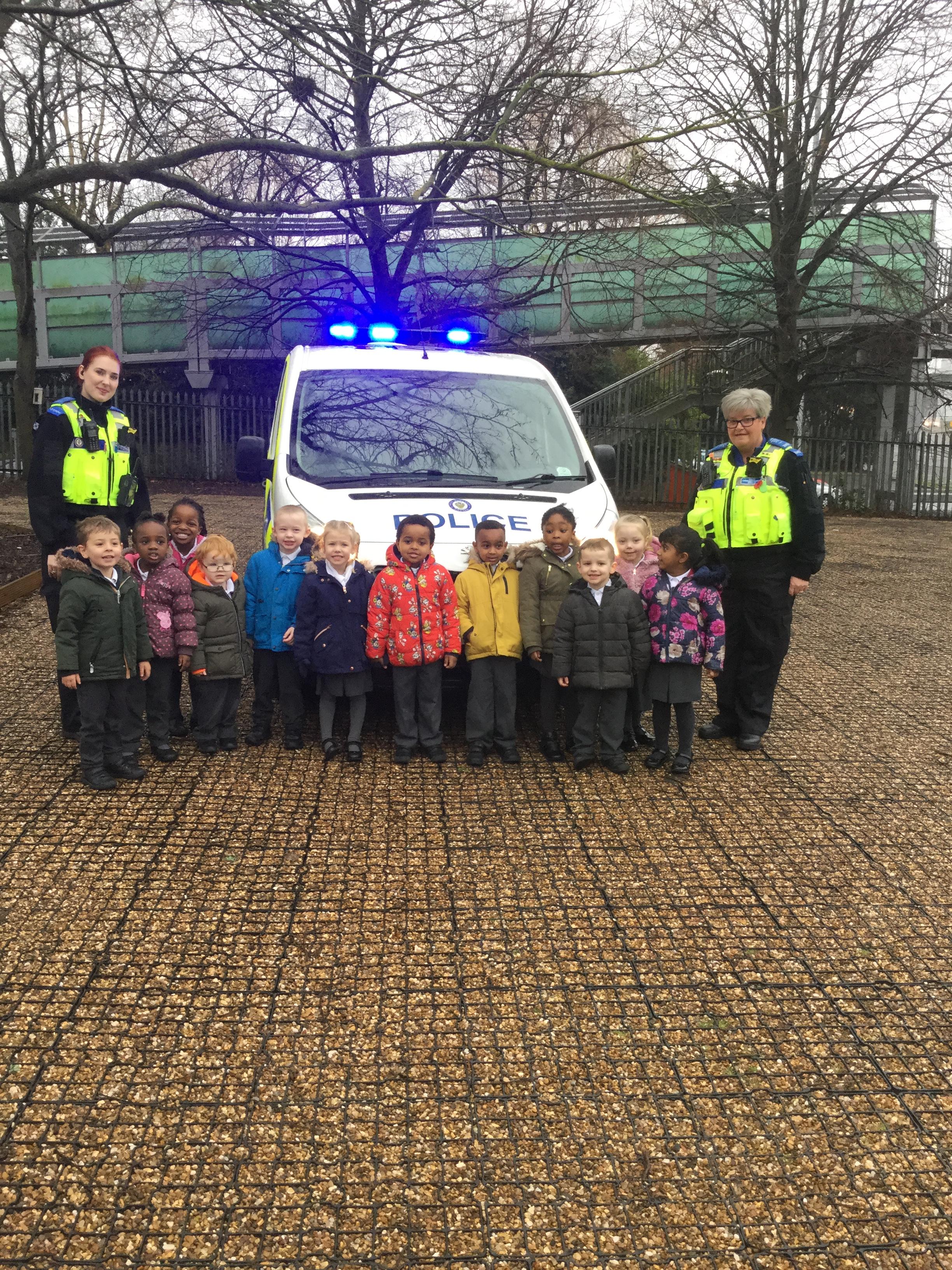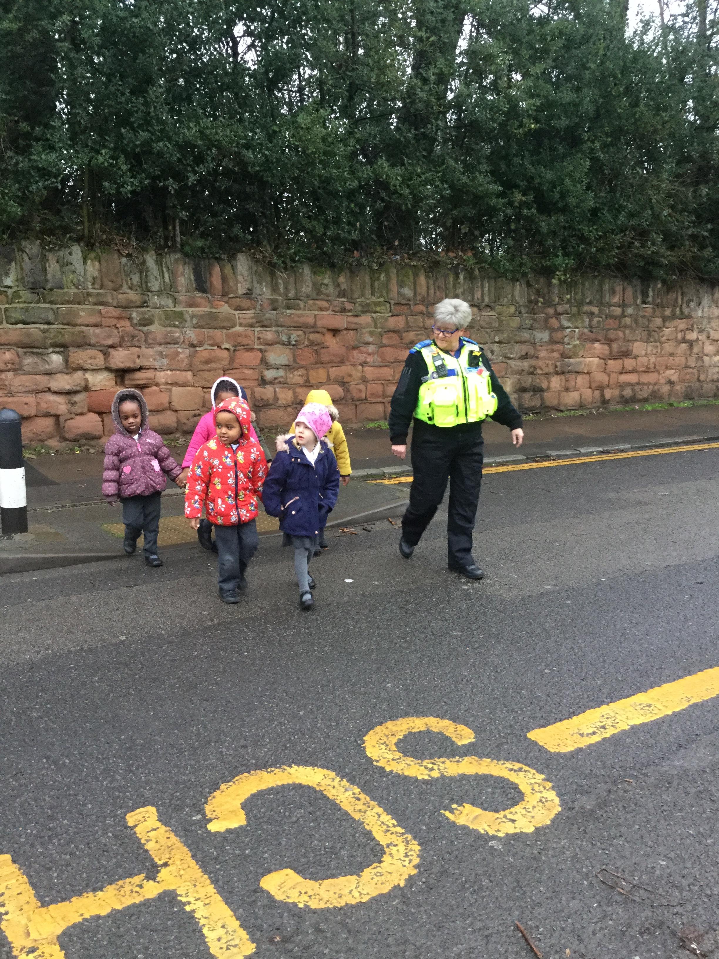 The Nursery children had a visit from PCSO Jake and her team to teach them about how to cross the road safely. They even sat in the back of a police vehicle and pressed the siren whihc was very exciting! PCSO Jake gave each child a safety certificate and a reflective badge to wear on their coat to help them be seen in the dark winter evenings.