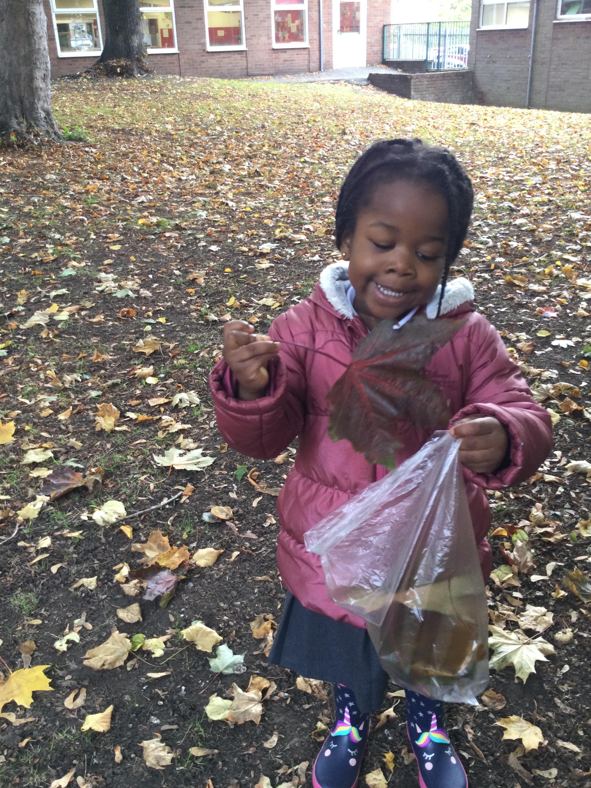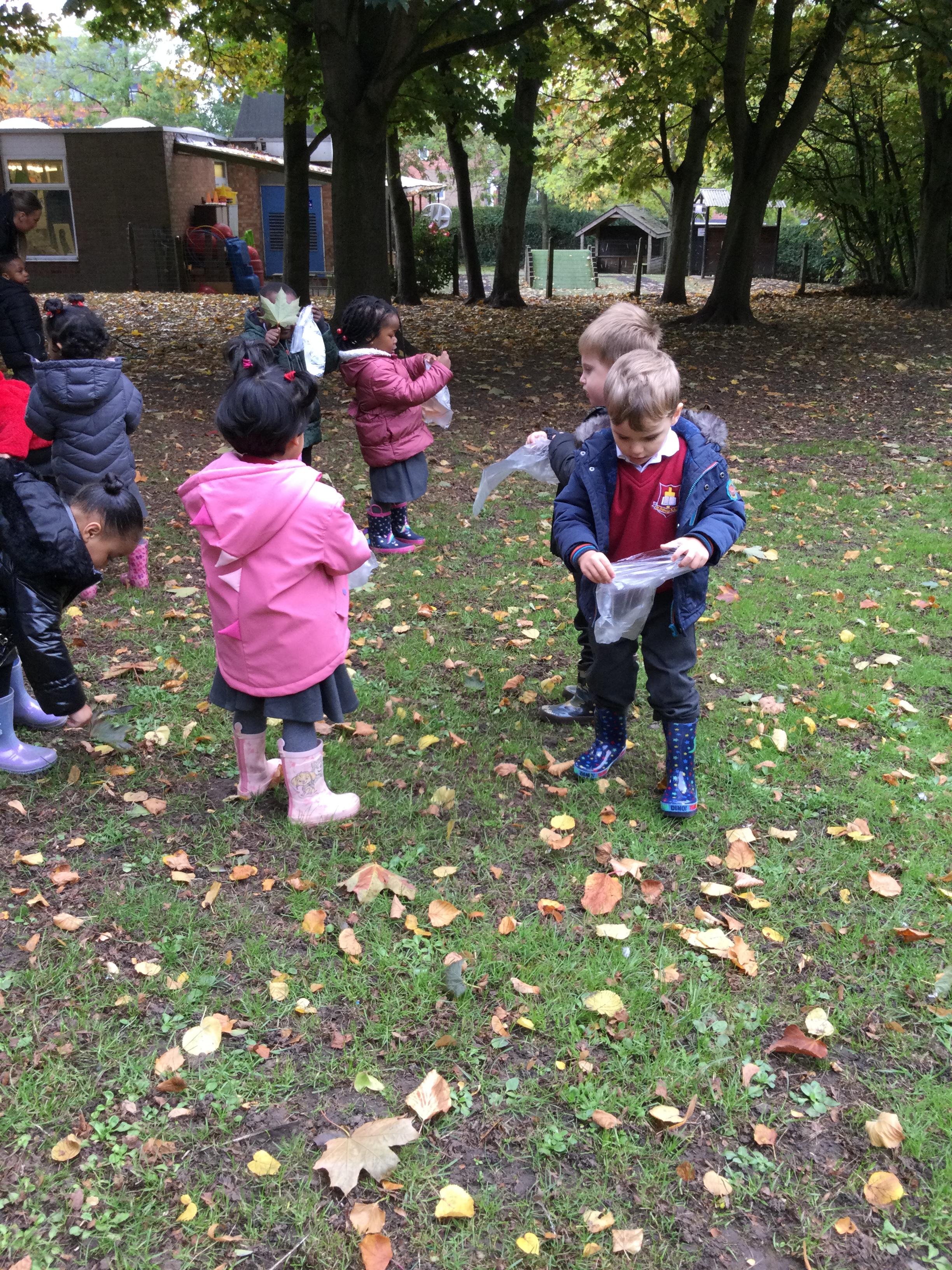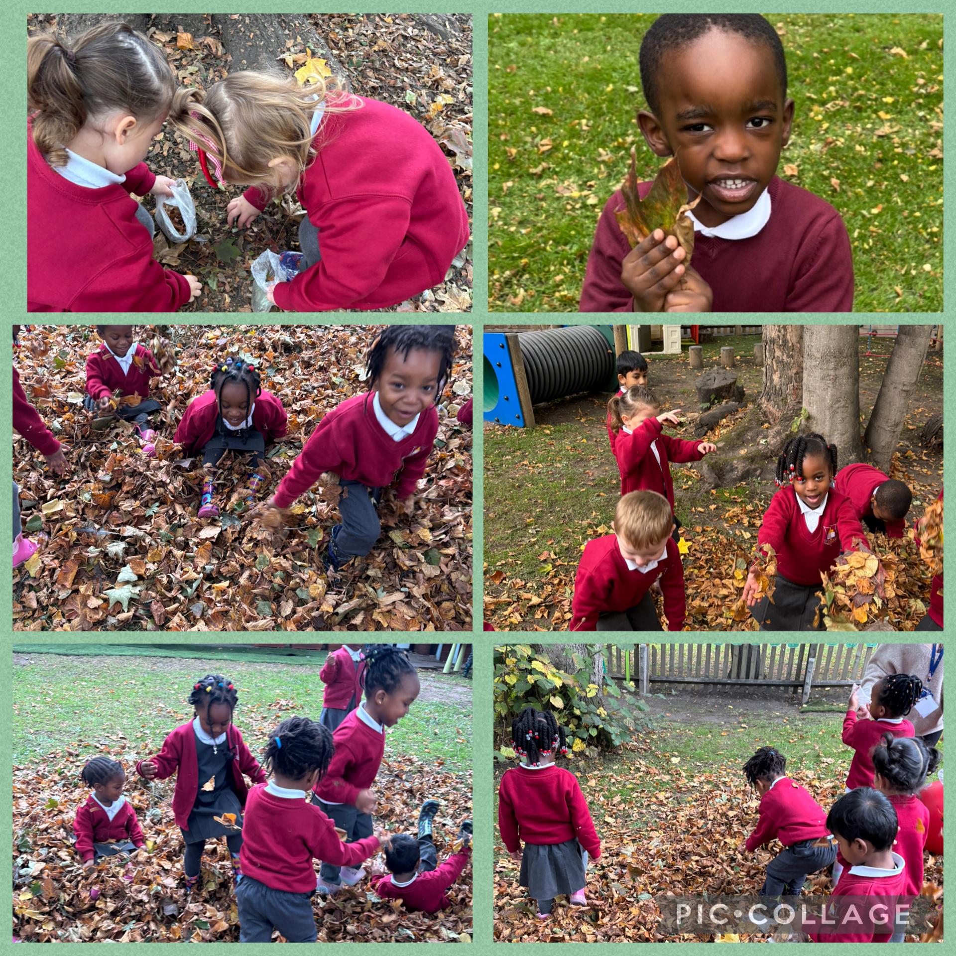 Today we went on an Autumn walk to enjoy God's wonderful world and to explore how the leaves have been changing colours and falling down from the trees. We collected a bag of leaves and made our own pile in the Nursery garden.