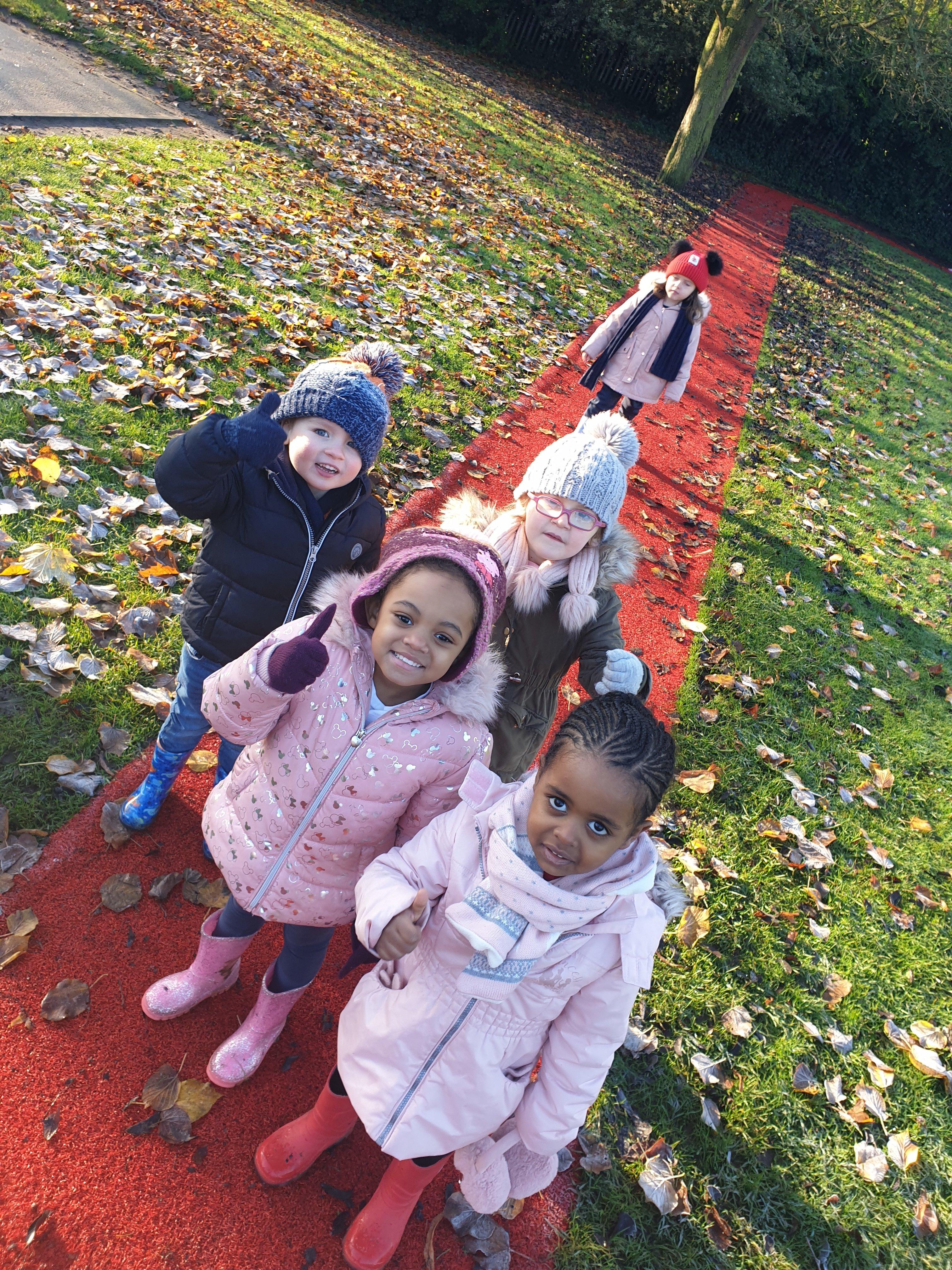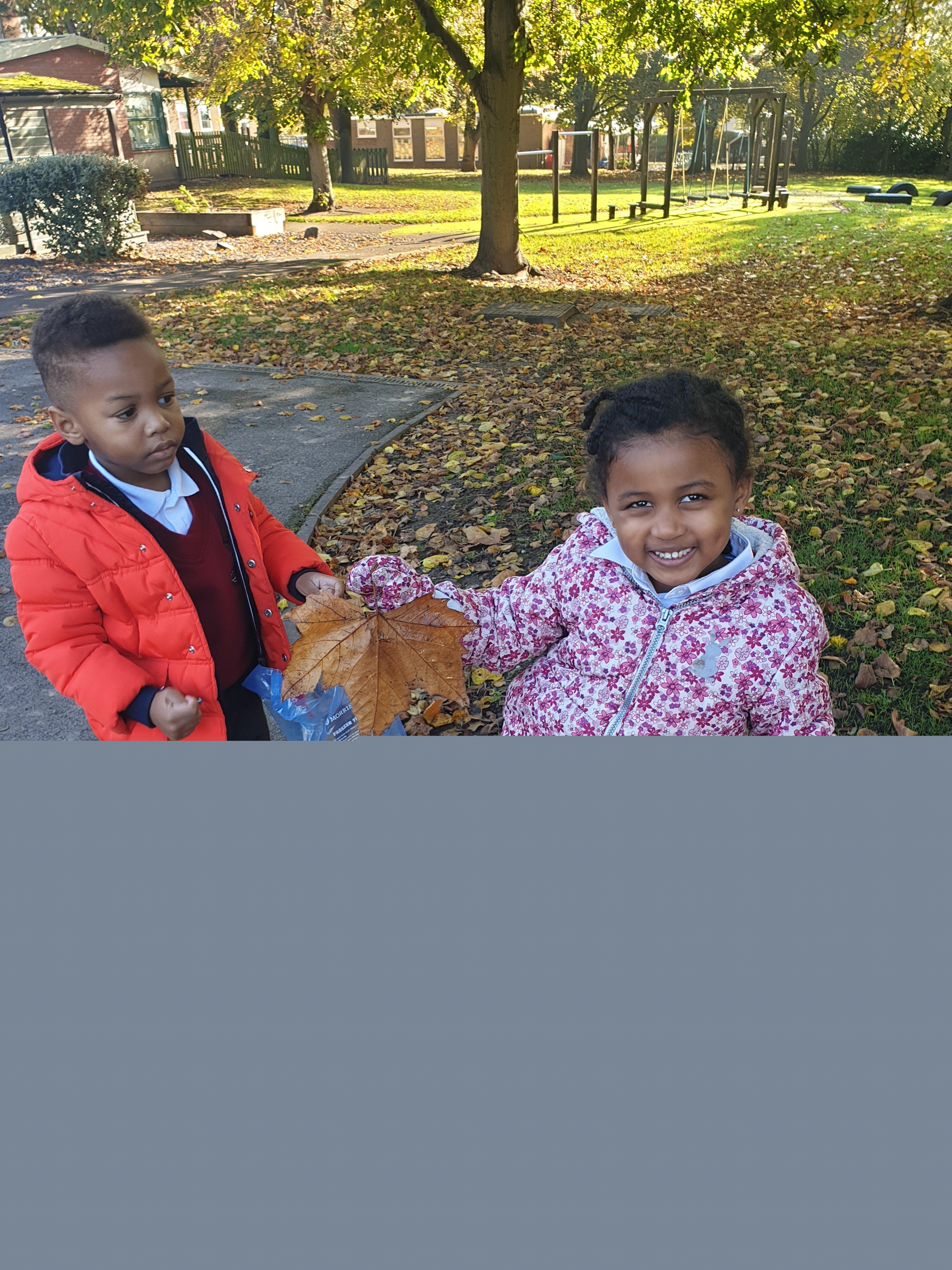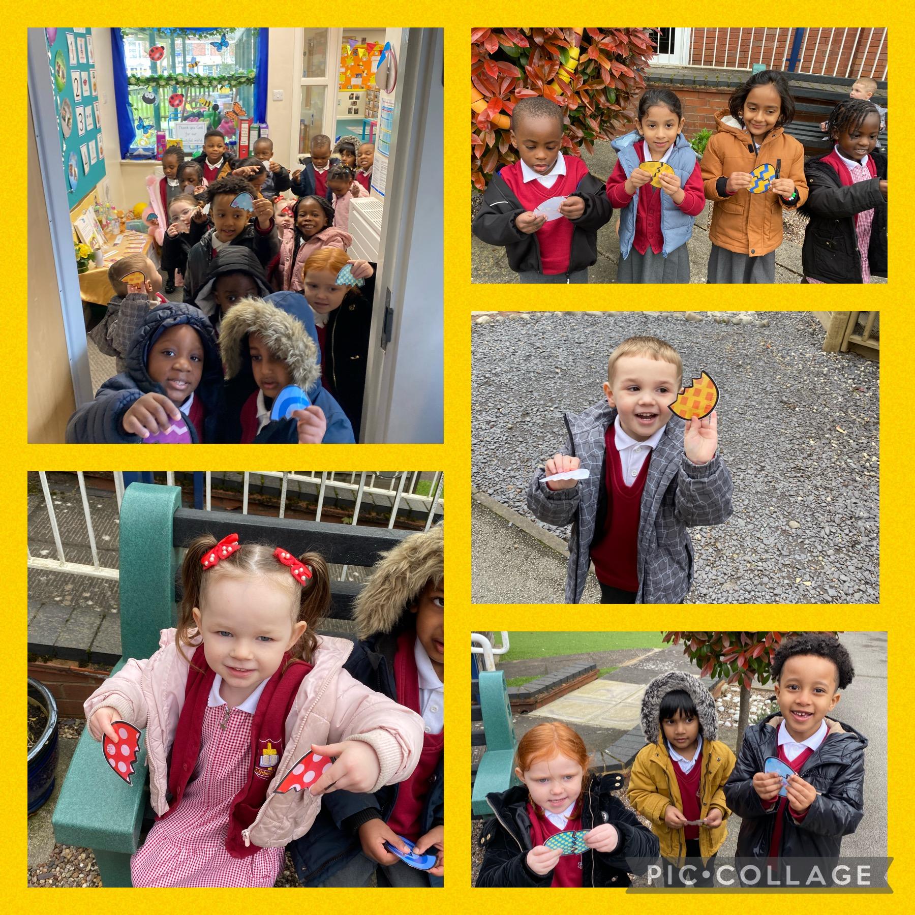 Today we went on an Autumn walk to enjoy God's wonderful world and to explore how the leaves have been changing colours and falling down from the trees. We collected a bag of leaves and made our own pile in the Nursery garden.