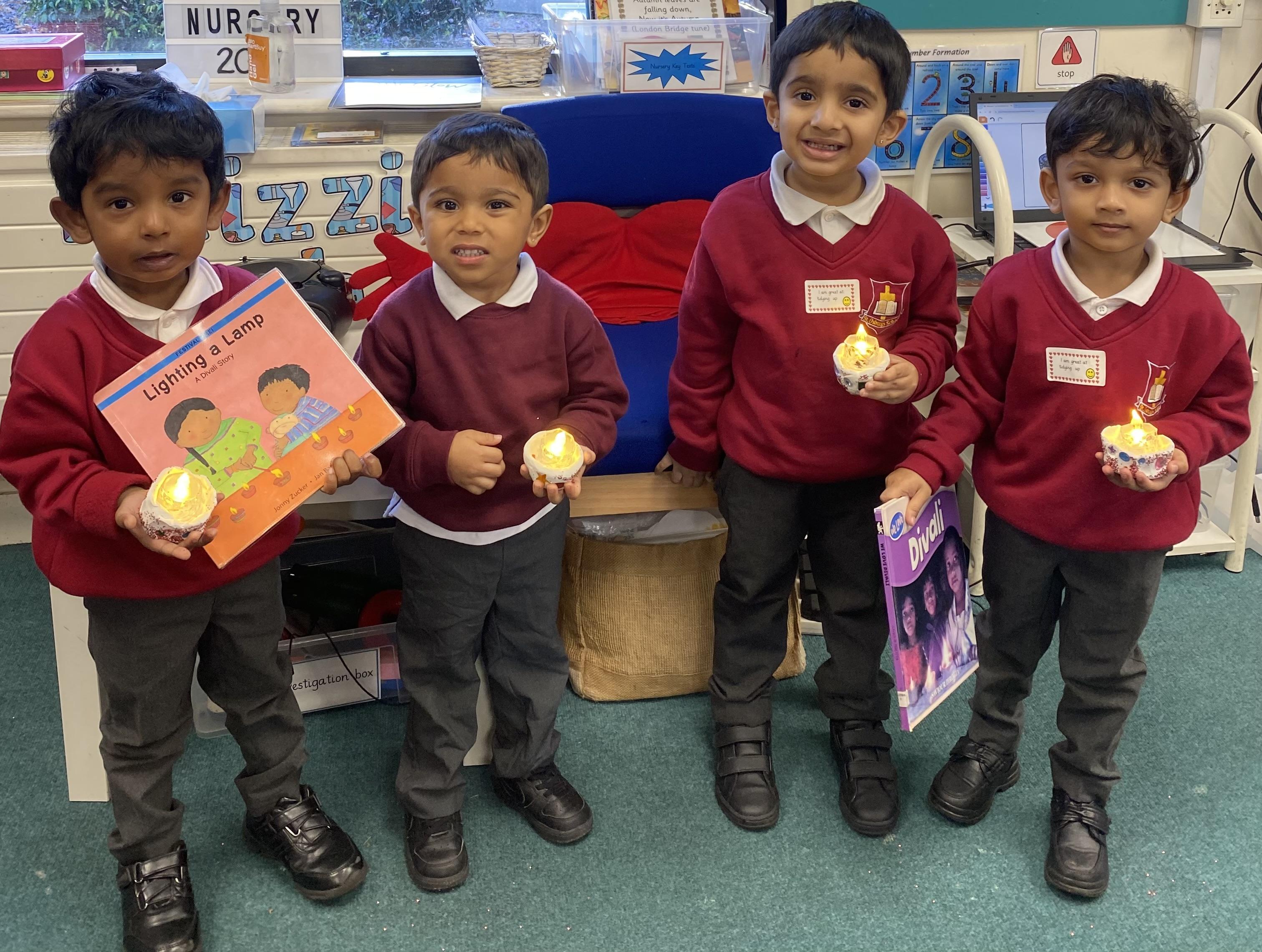 We have been learning about the Hindu festival which is celebrated in the Autumn and made diya lights to decorate our homes. We have four Nursery children who will be celebrating at home with their families.