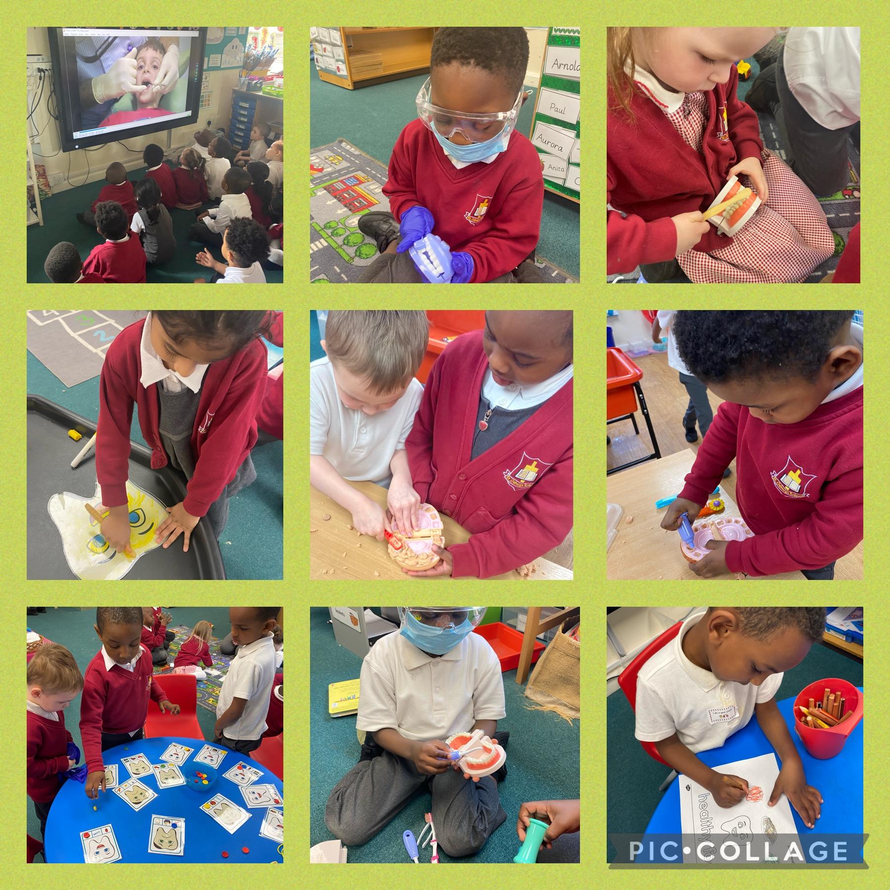 We have been learning about how to look after our teeth and have had fun exploring different resources in the classroom. We have each received a goody bag with a new toothbrush, toothpaste, stickers and a brushing chart. If the children retiring completed charts they will receive a special certificate from the Tooth Fairy!