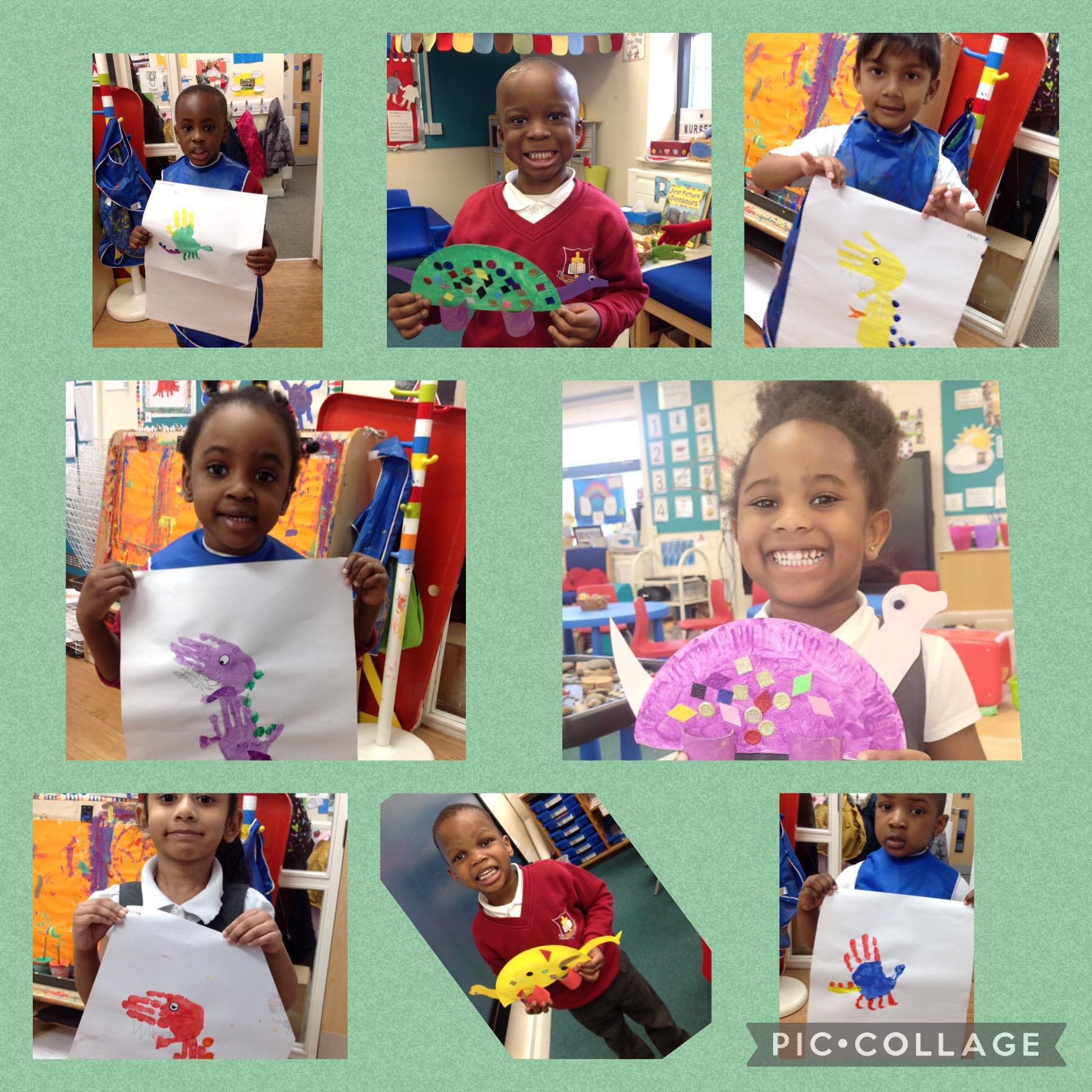 The Nursery children have enjoyed a dinosaur topic learning all about different types of dinosaurs. They read books, drew pictures, rescued them from a slimy swamp, moved like a dinosaur and dressed up as a T Rex or Triceratops. They even created their own junk model of a dinosaur and created handprint dinosaurs.