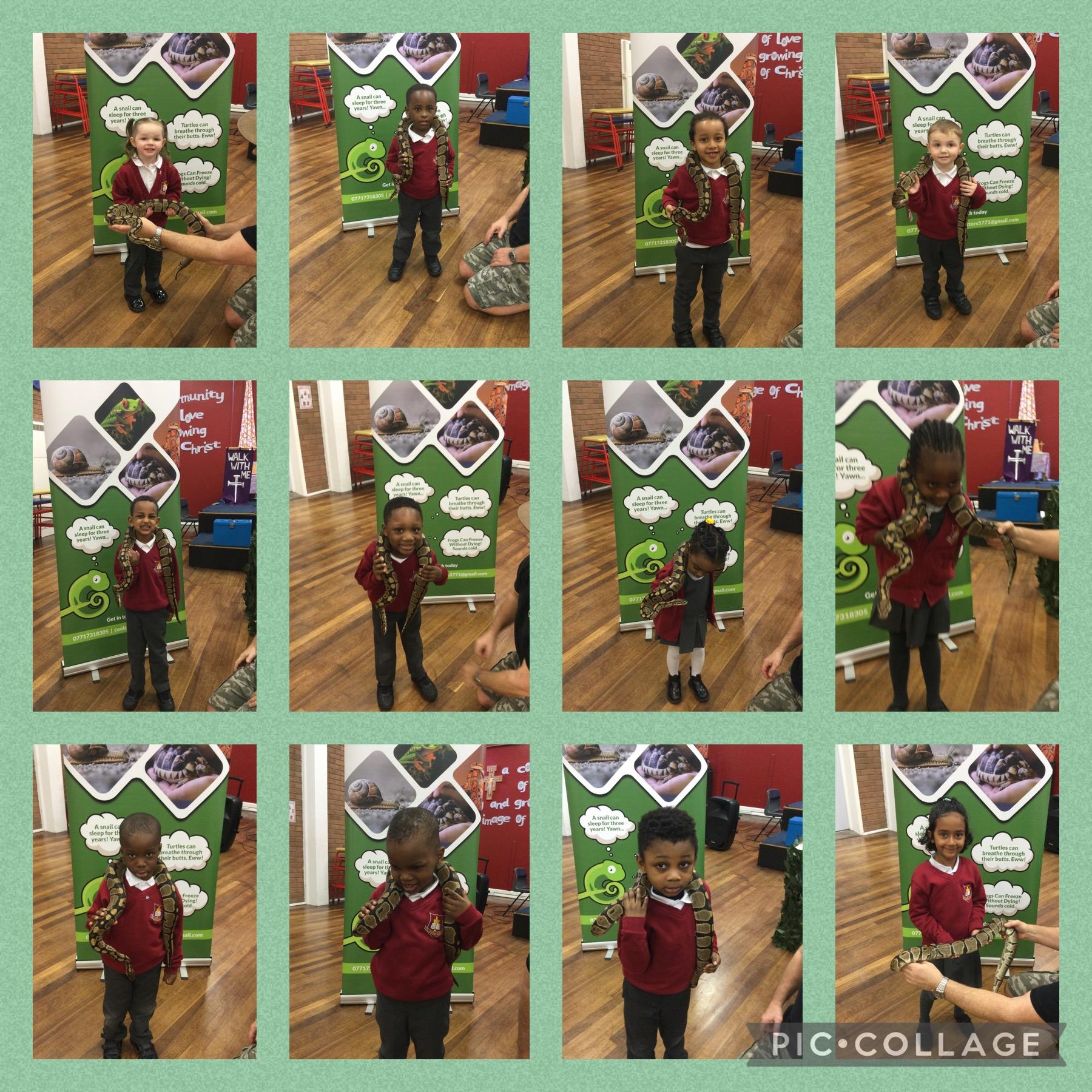We enjoyed having some of our pets in Nursery this week as we were learning about how to look after our pets. We met Buddy the dog, Toby the tortoise and had a visit from Cool critters roadshow. We loved holding Mia the African snake too !