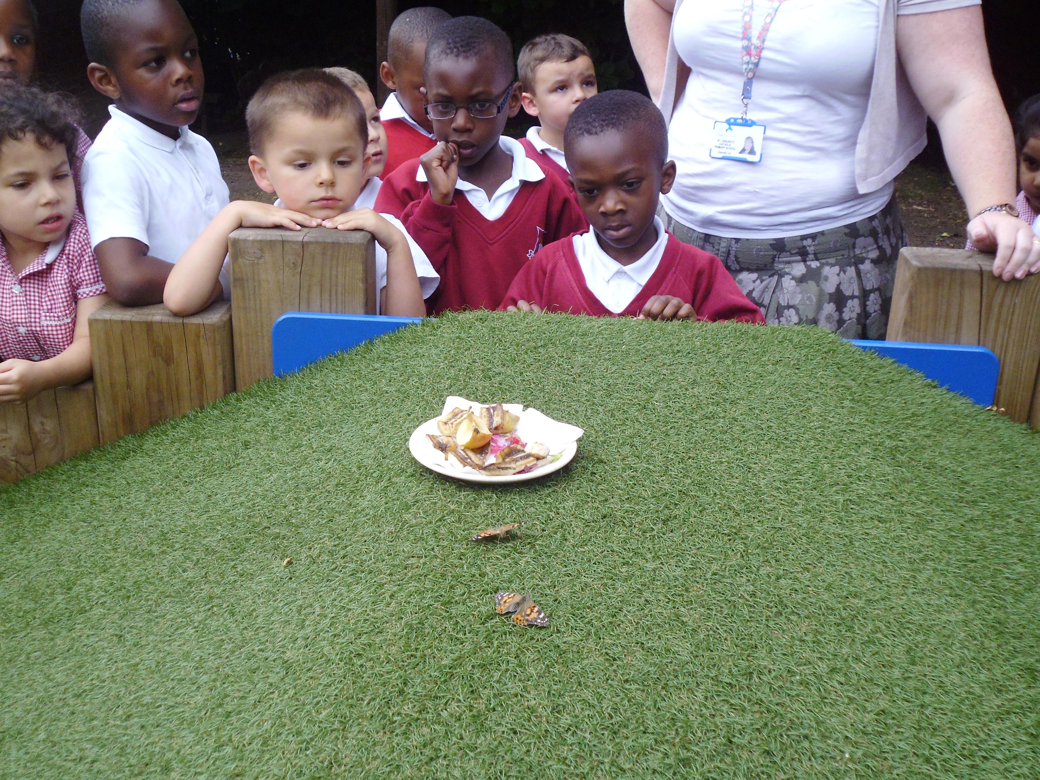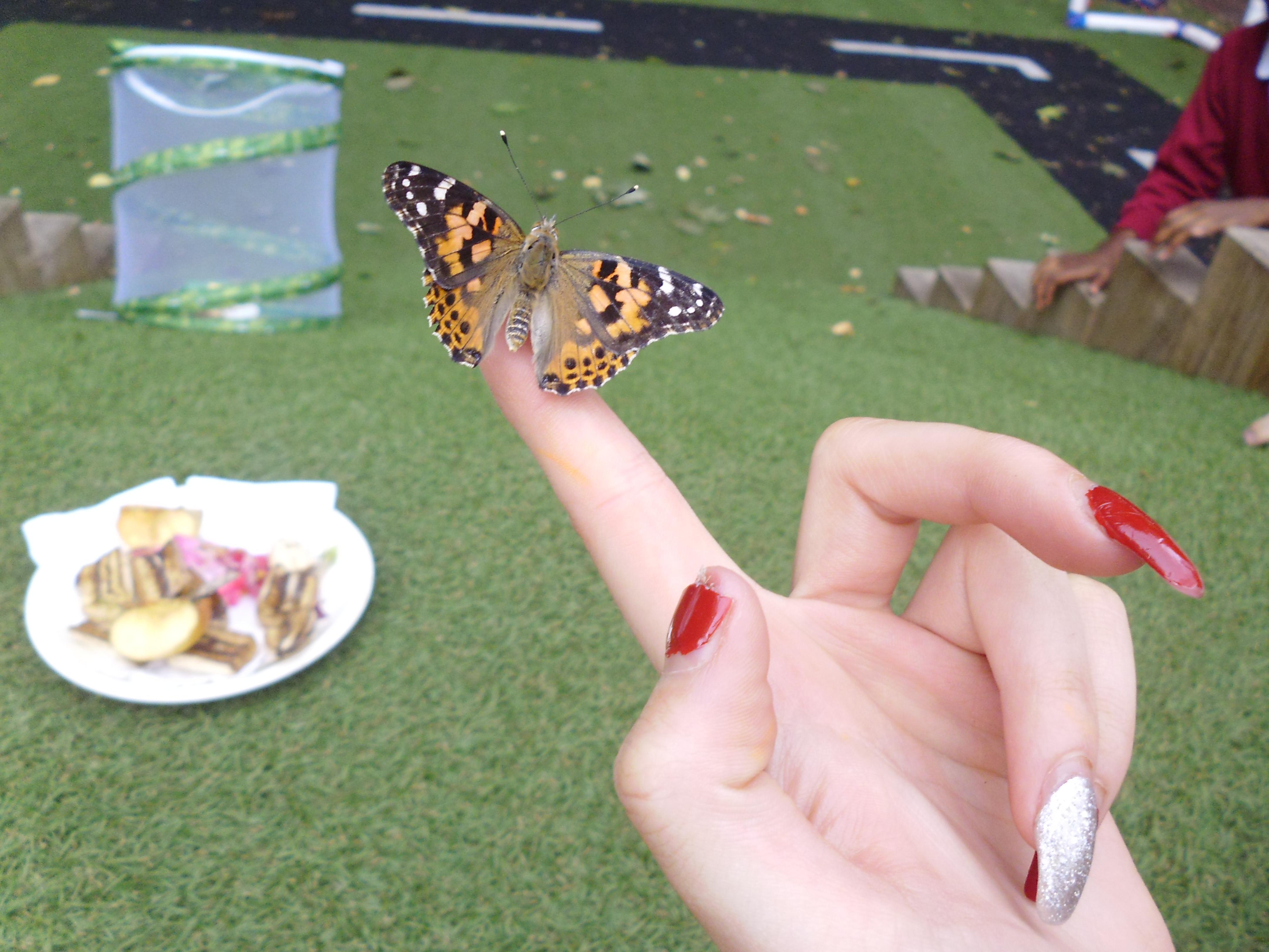 Our butterflies have finally hatched! We have been looking after them by giving them sweet fruit and squeezing a sugar syrup on bright flowers to act as nectar. After a few days of looking after them in our inside butterfly garden we released the butterflies our outdoor area and into their natural habitat.