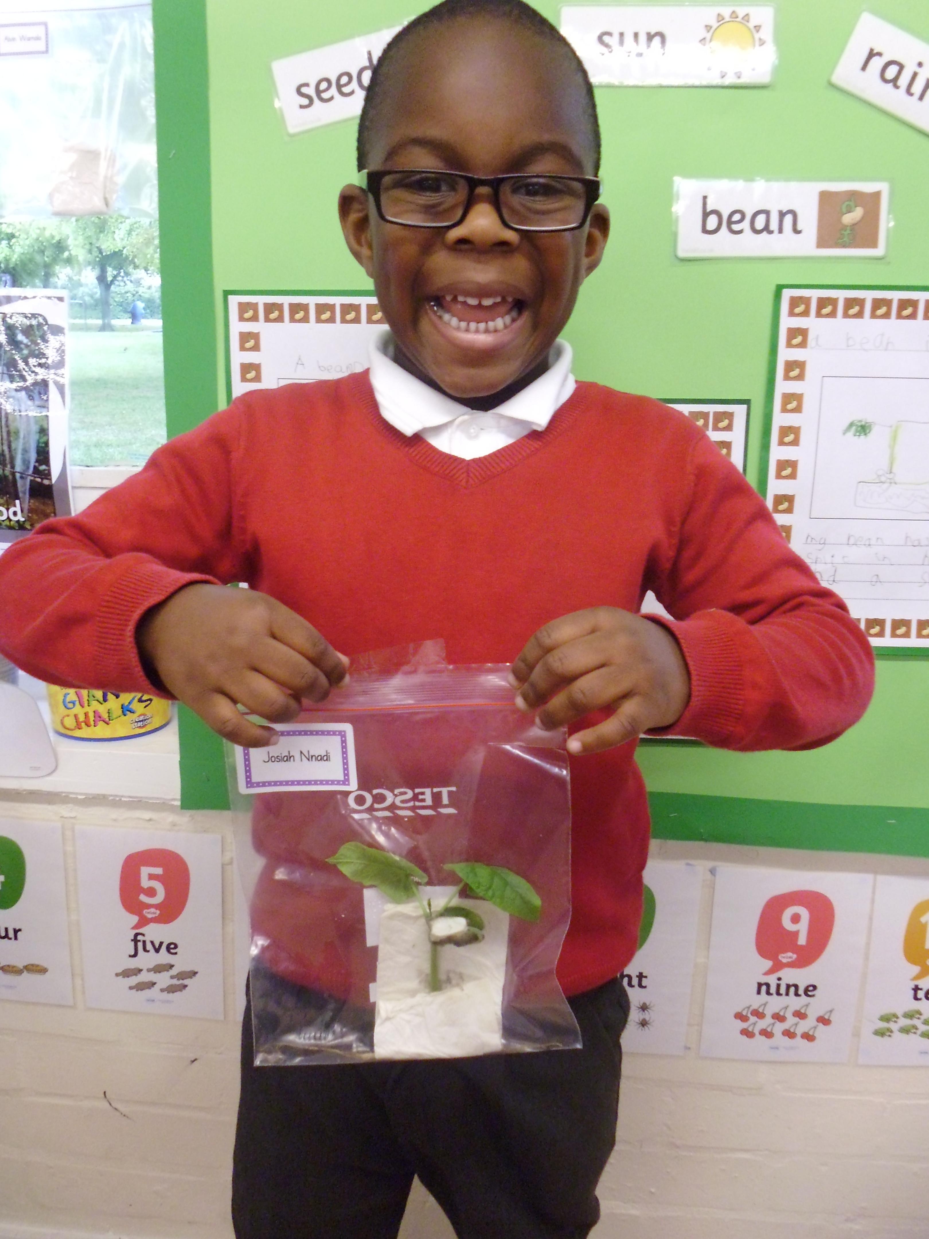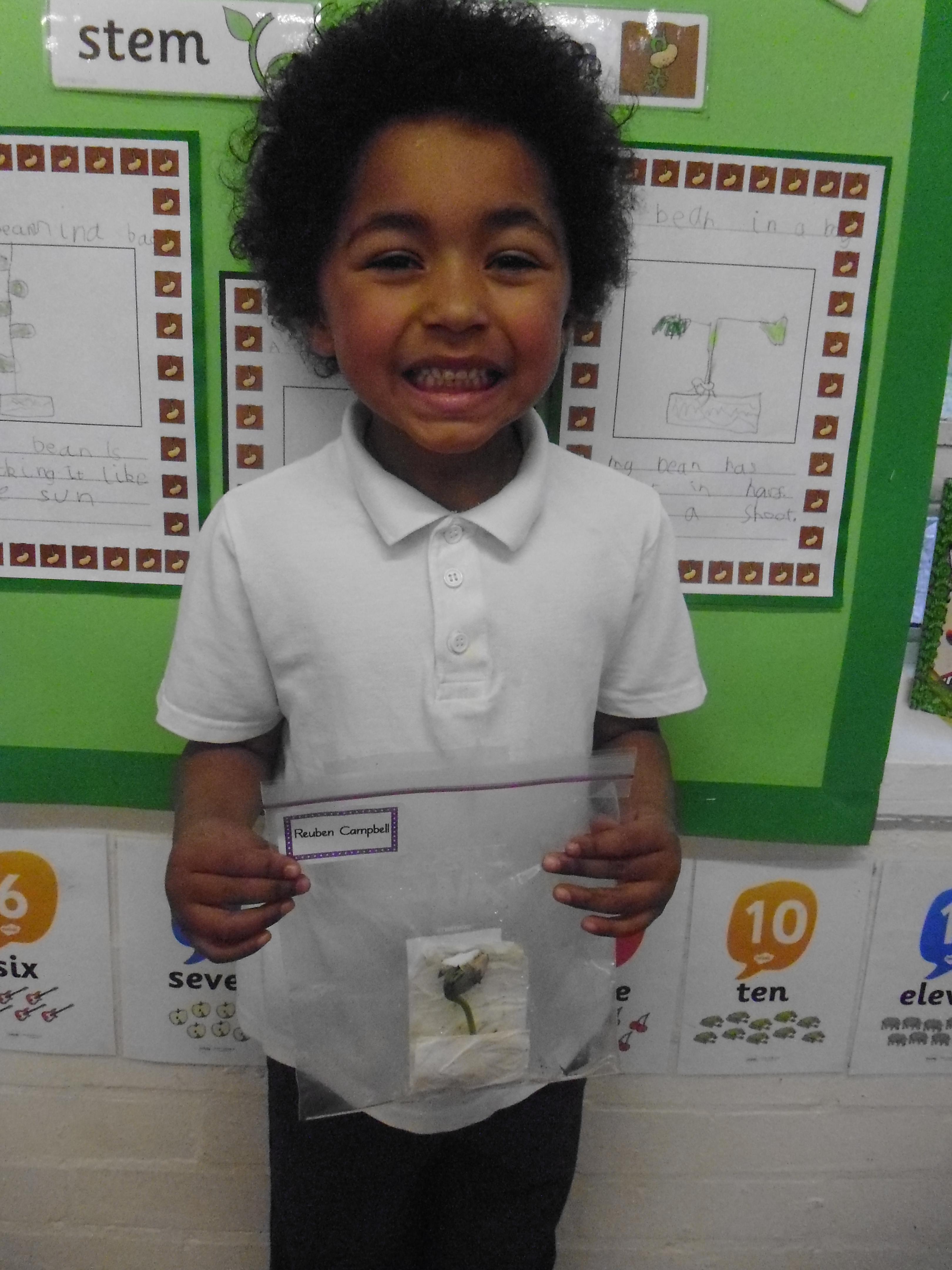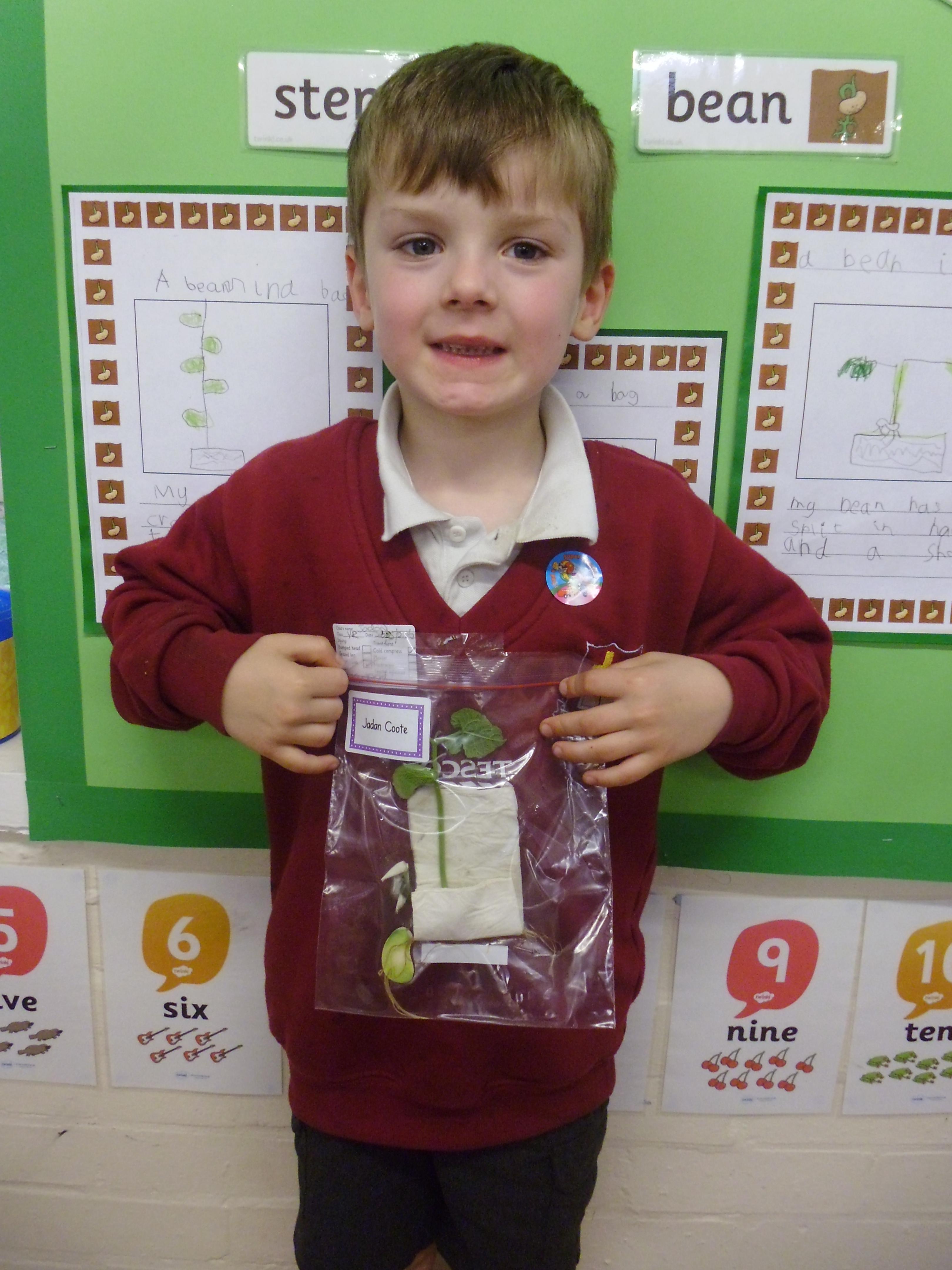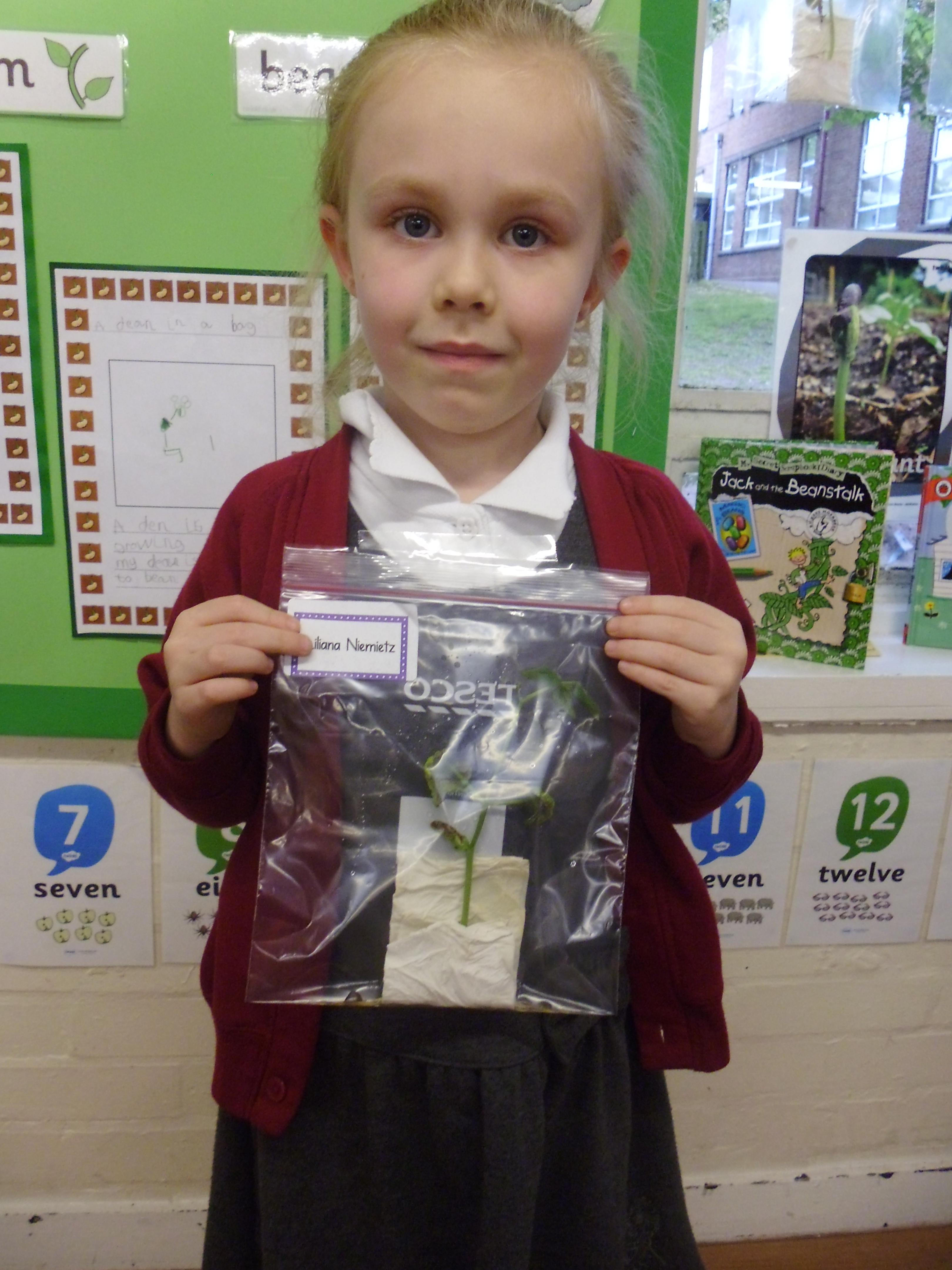 In Reception we have really been enjoying our growing theme. We were sent a hamper of growing things from Jack from the story Jack and the beanstalk. The hamper included our own beans to grow, growing stories and non fiction books and lots of packets of cress seeds. We have learnt so much about the life cycle of seed and have enjoyed watching our seeds grow ![]()