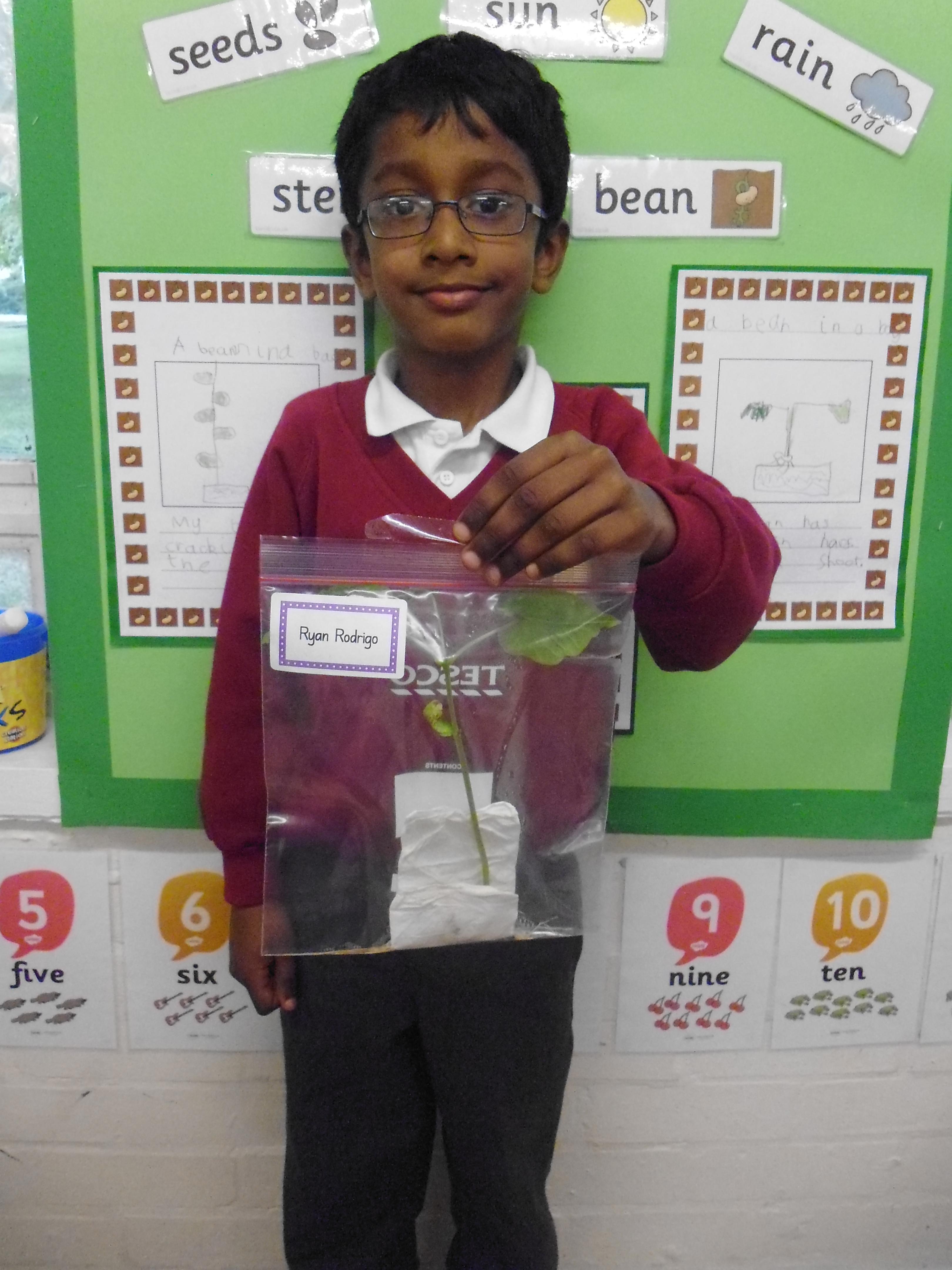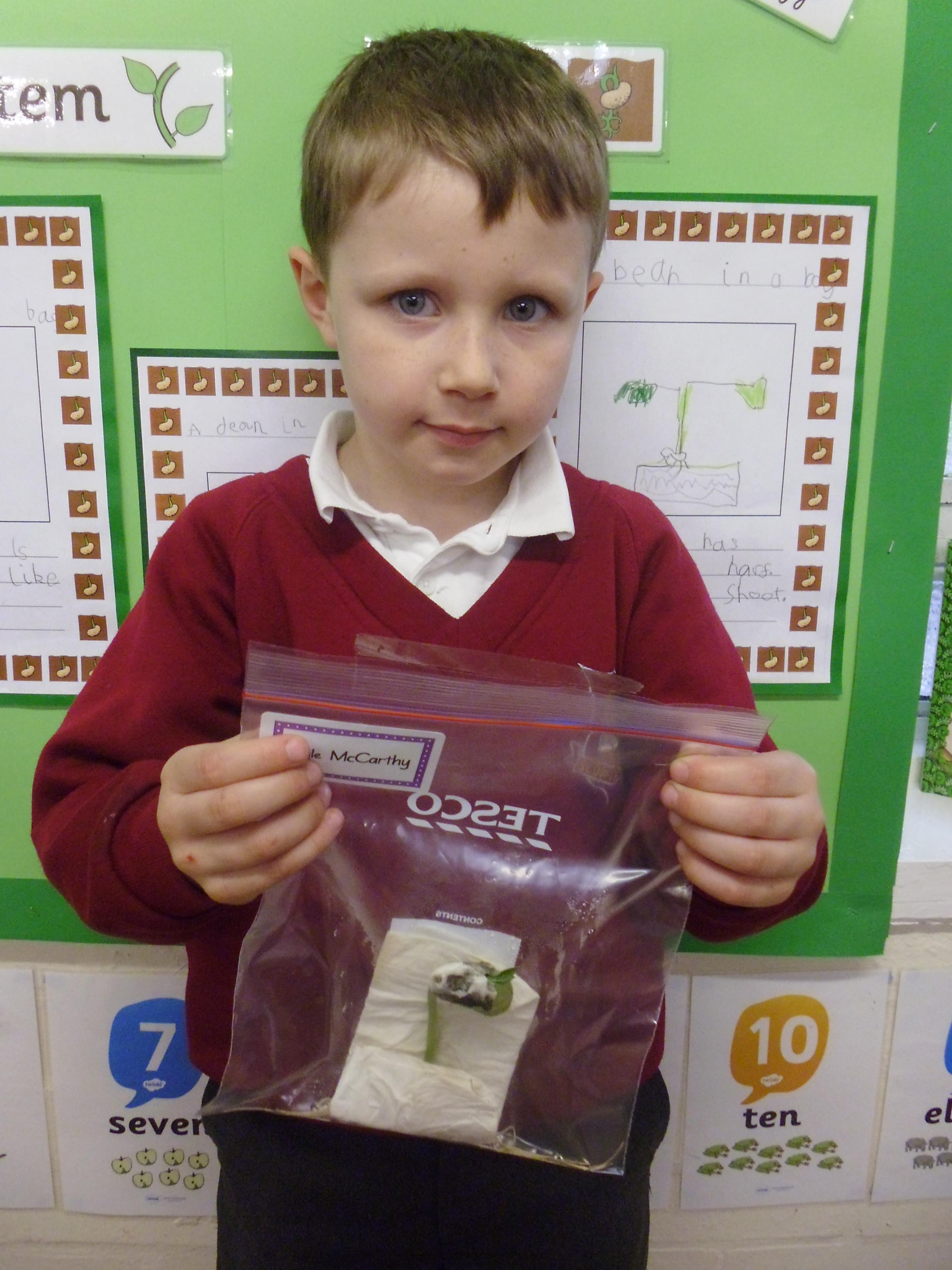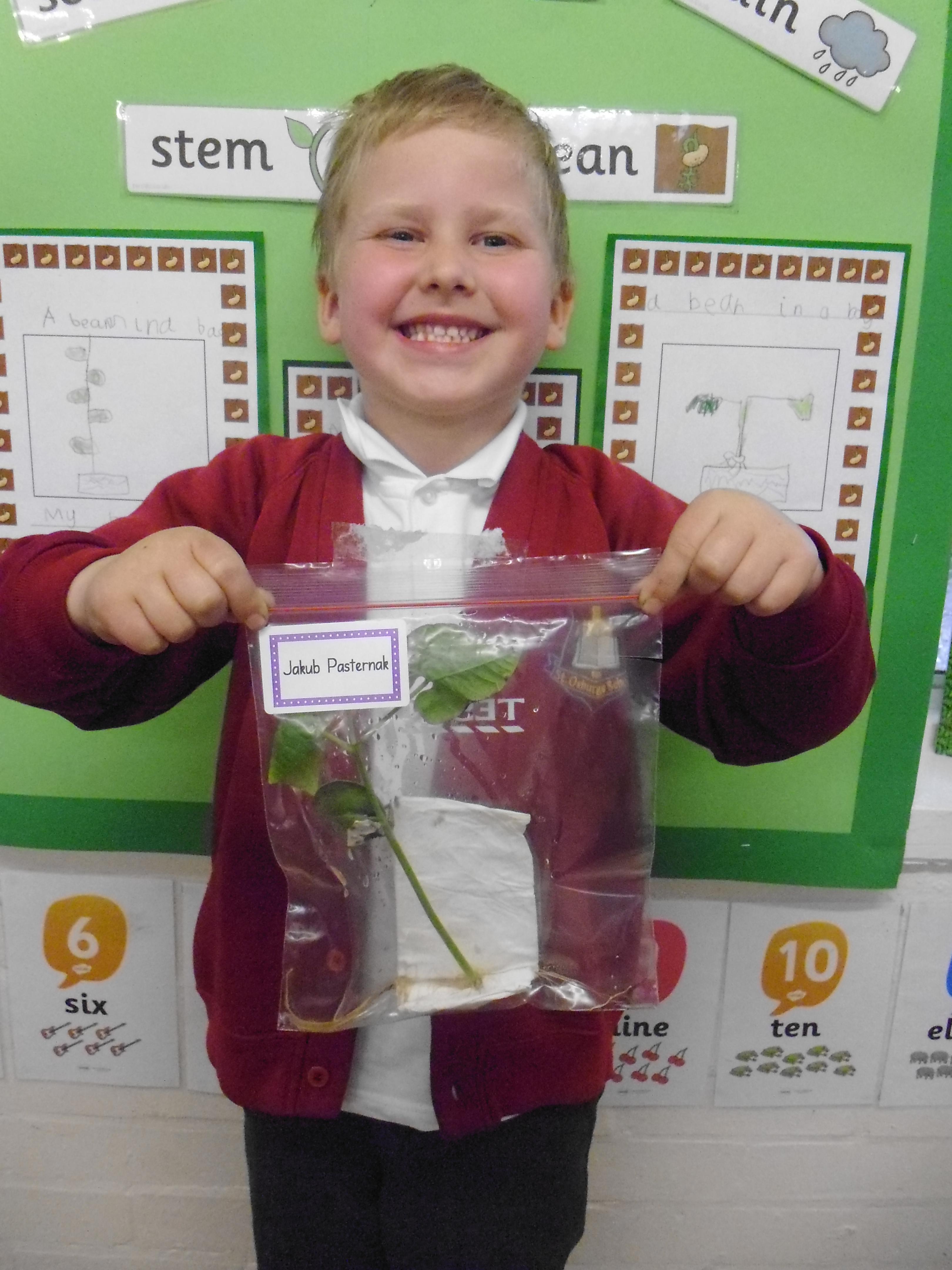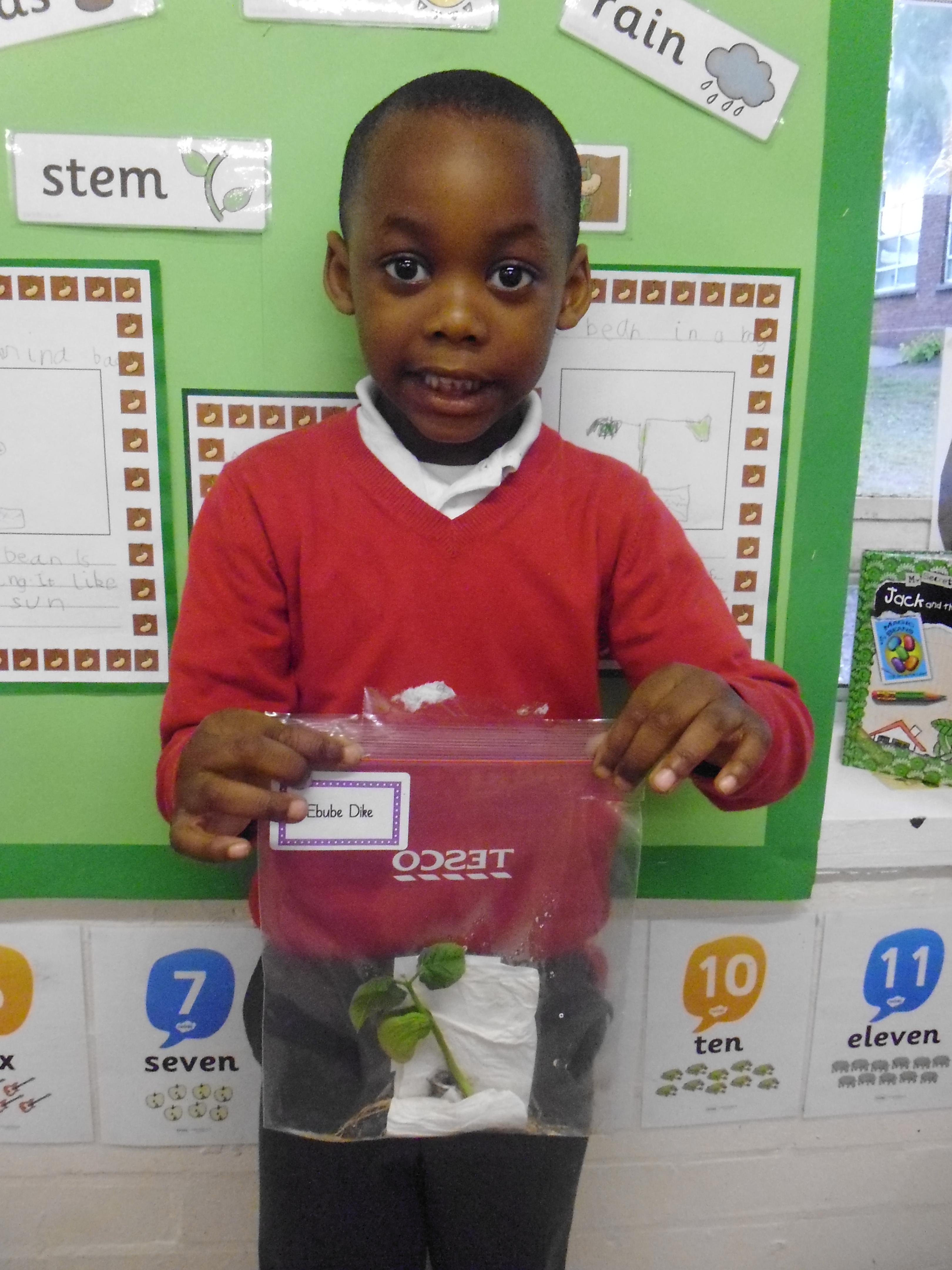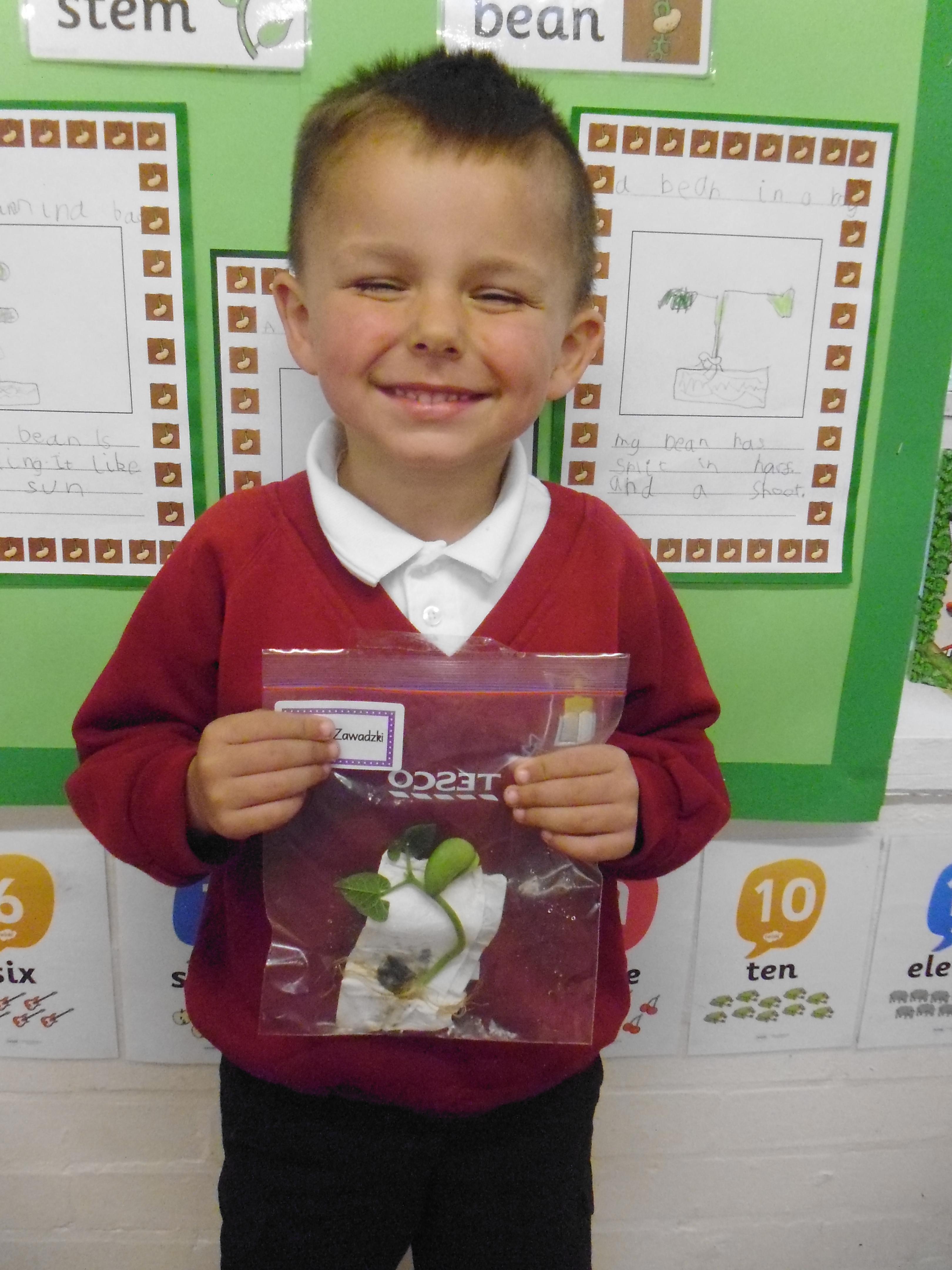 In Reception we have really been enjoying our growing theme. We were sent a hamper of growing things from Jack from the story Jack and the beanstalk. The hamper included our own beans to grow, growing stories and non fiction books and lots of packets of cress seeds. We have learnt so much about the life cycle of seed and have enjoyed watching our seeds grow ![]()