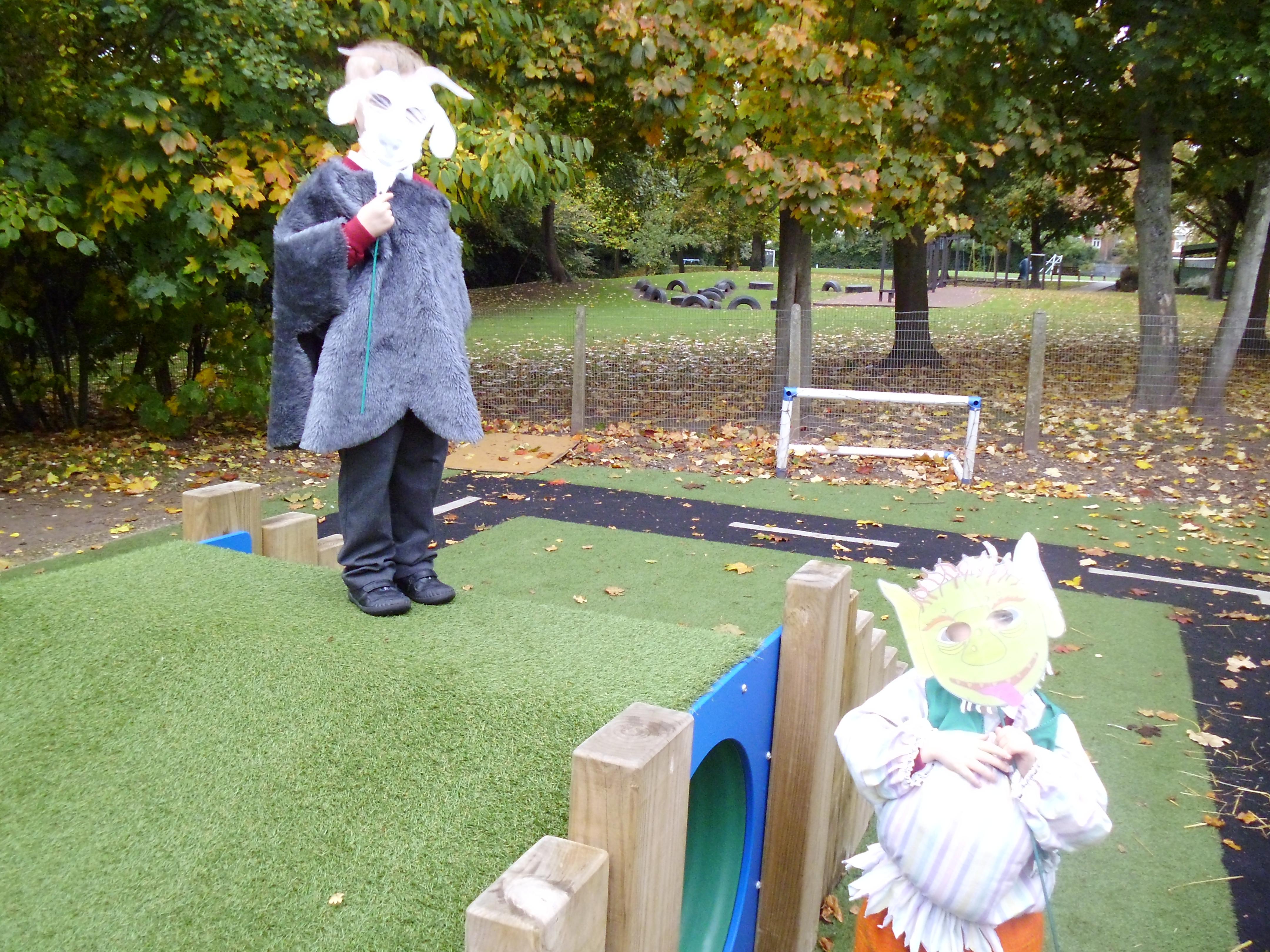 The children found a big wet green splodge outside and a letter from the Troll. The troll told the children he knew they had been reading the story and he was very impressed with their work. He set them challenge to act out the story.