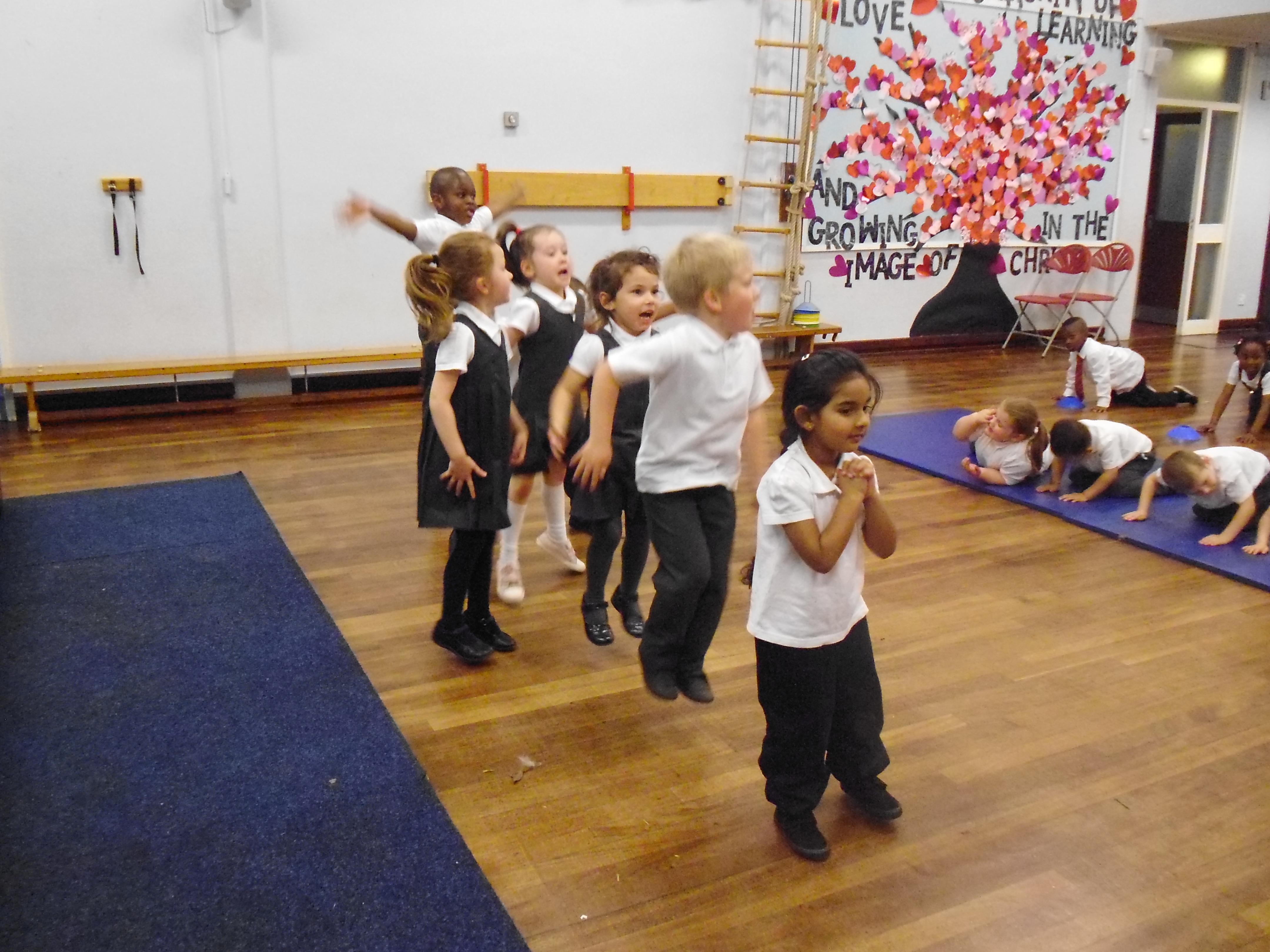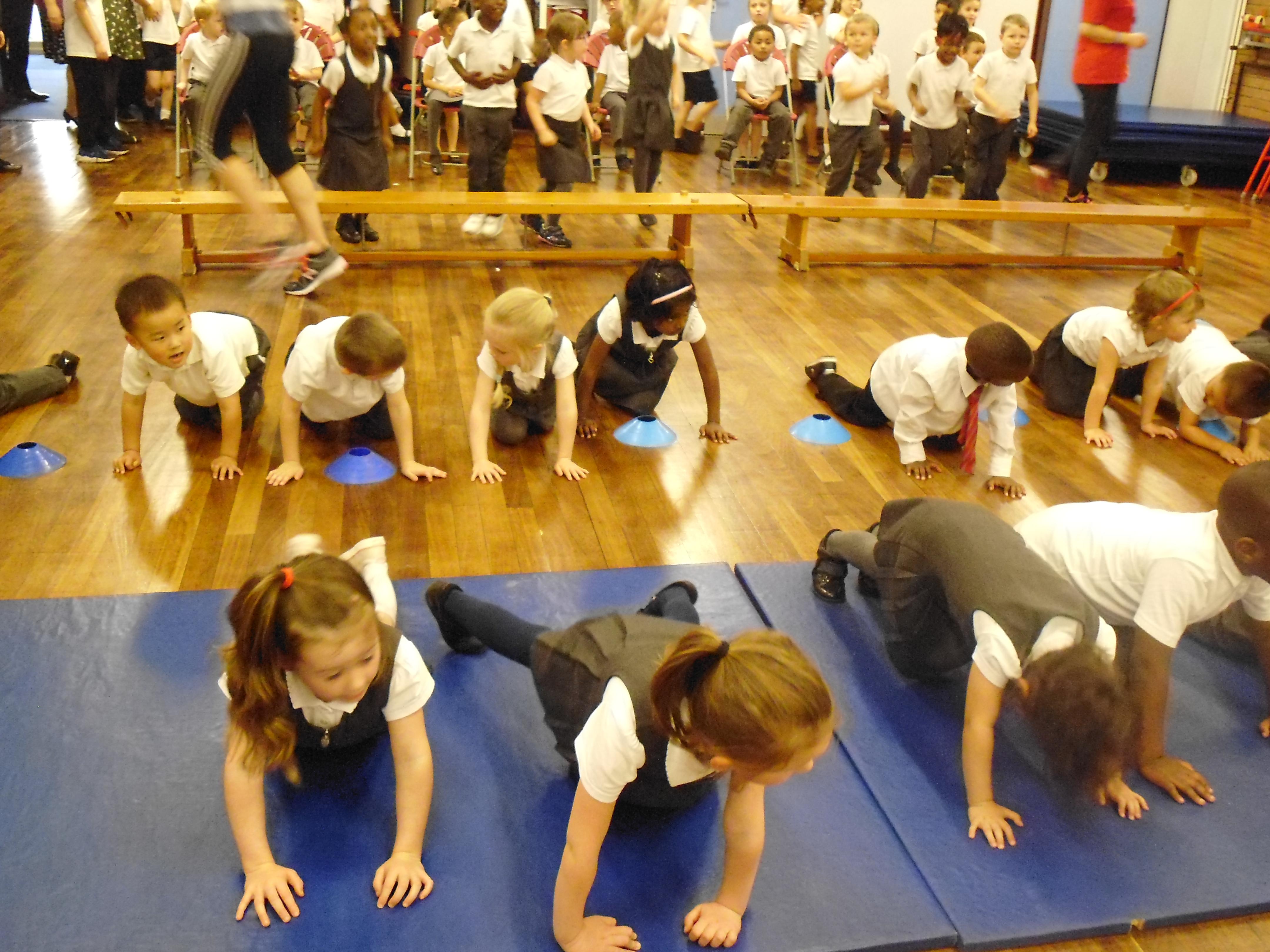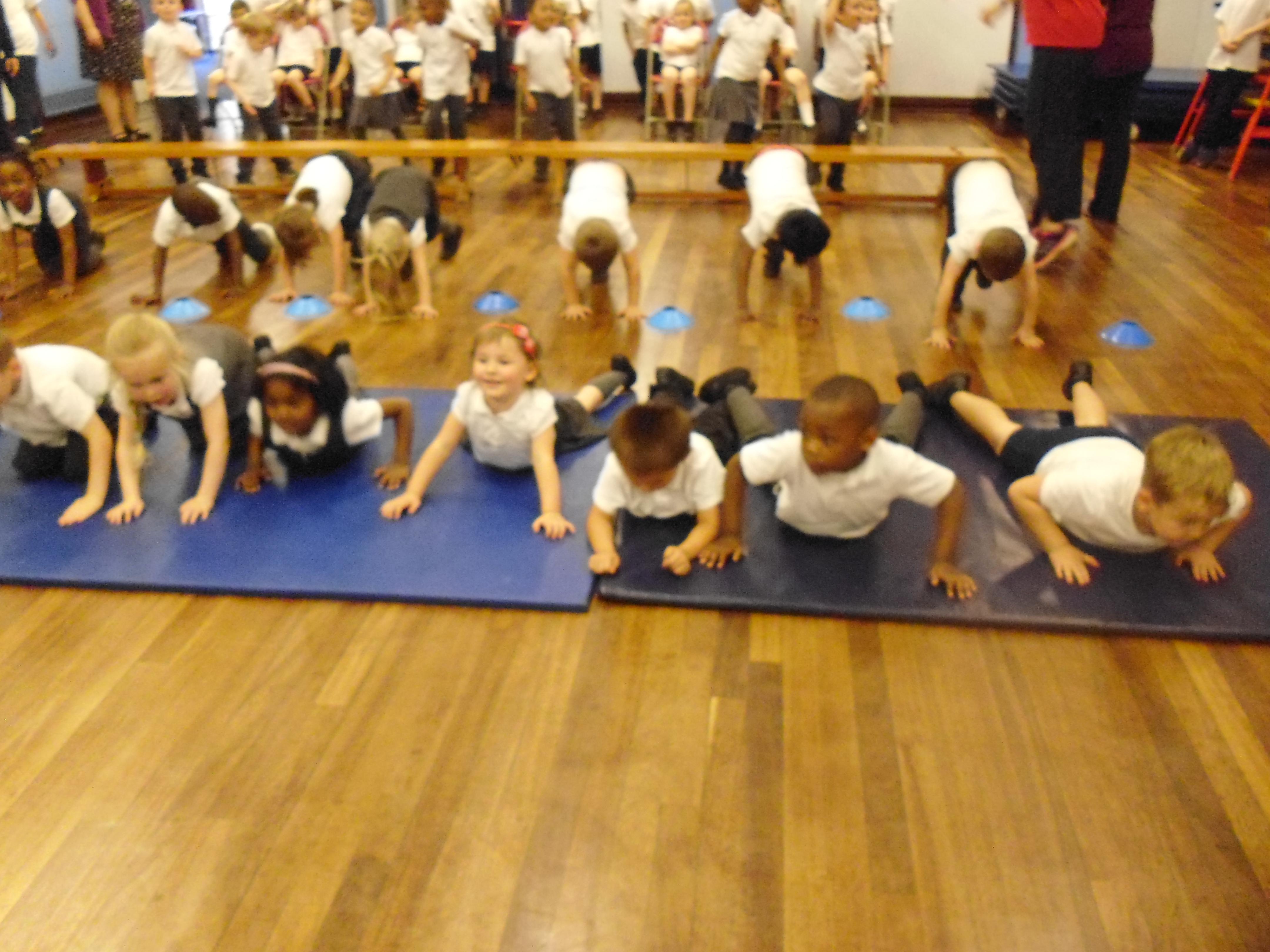 Reception also enthusiastically took part in a 'keep fit' class in the hall and had a go at lots of different exercises!