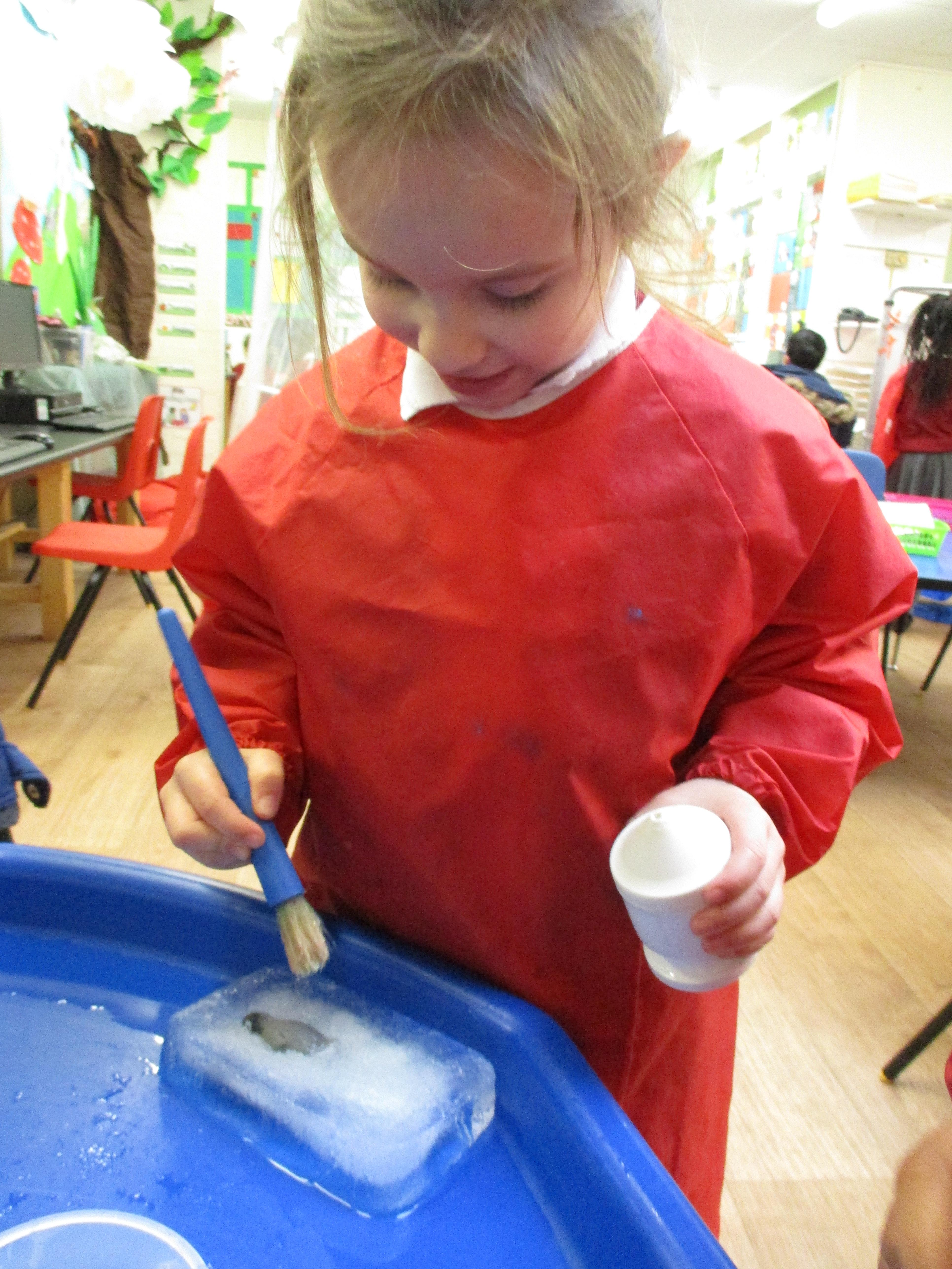 Reception experimented with a variety of ways to melt the ice including using warm water, salt and a variety of tools to chip away at the ice.