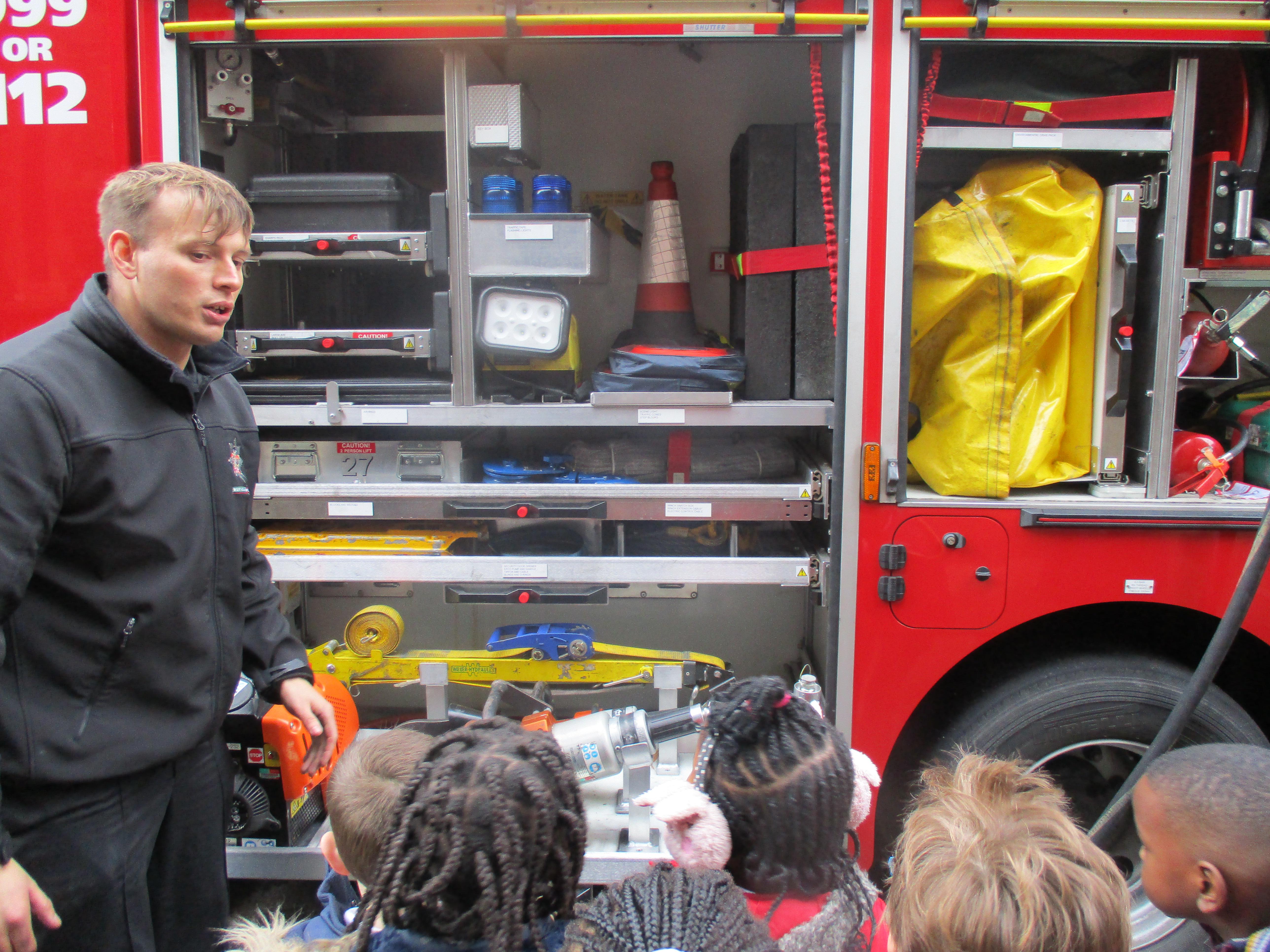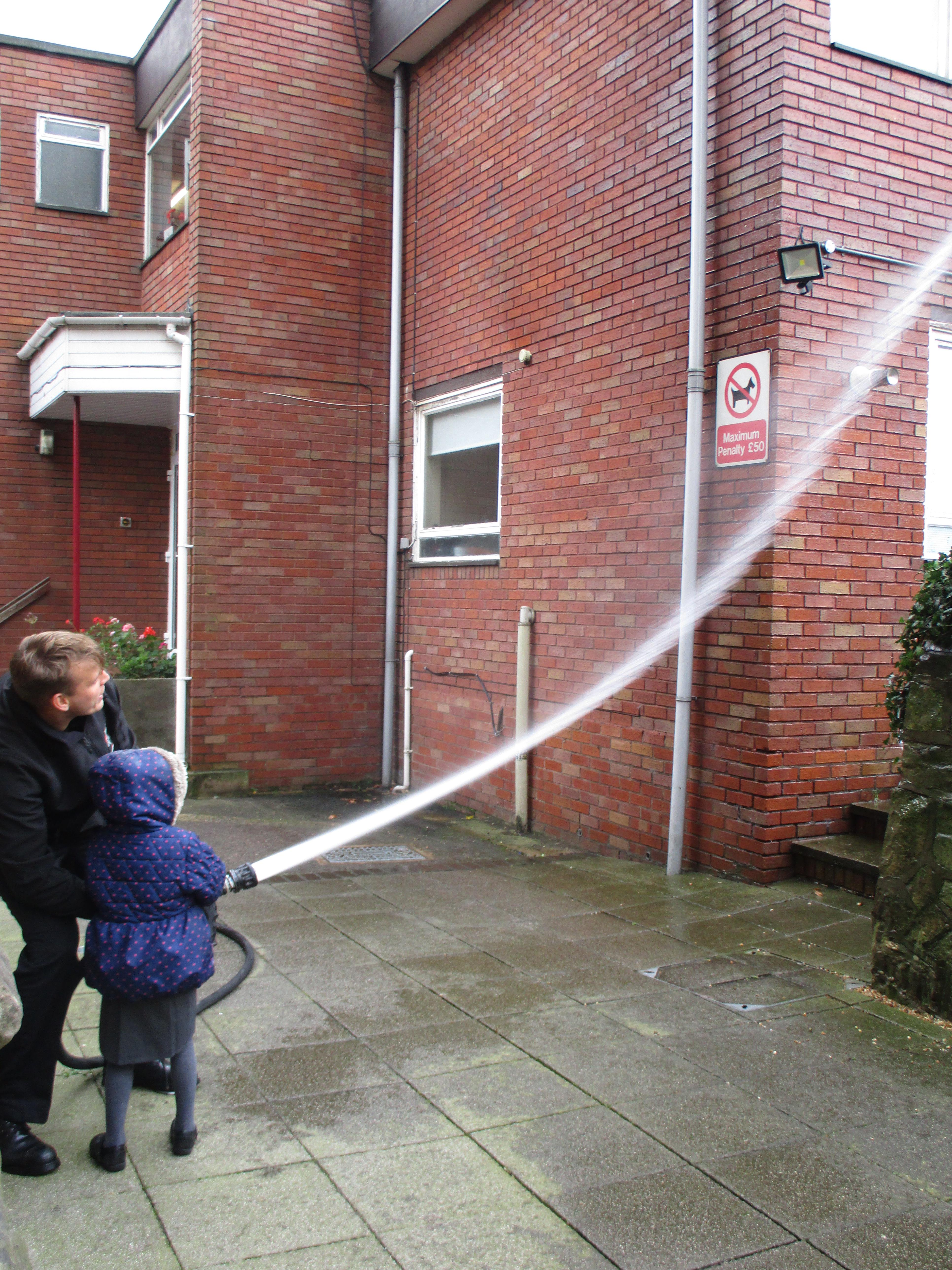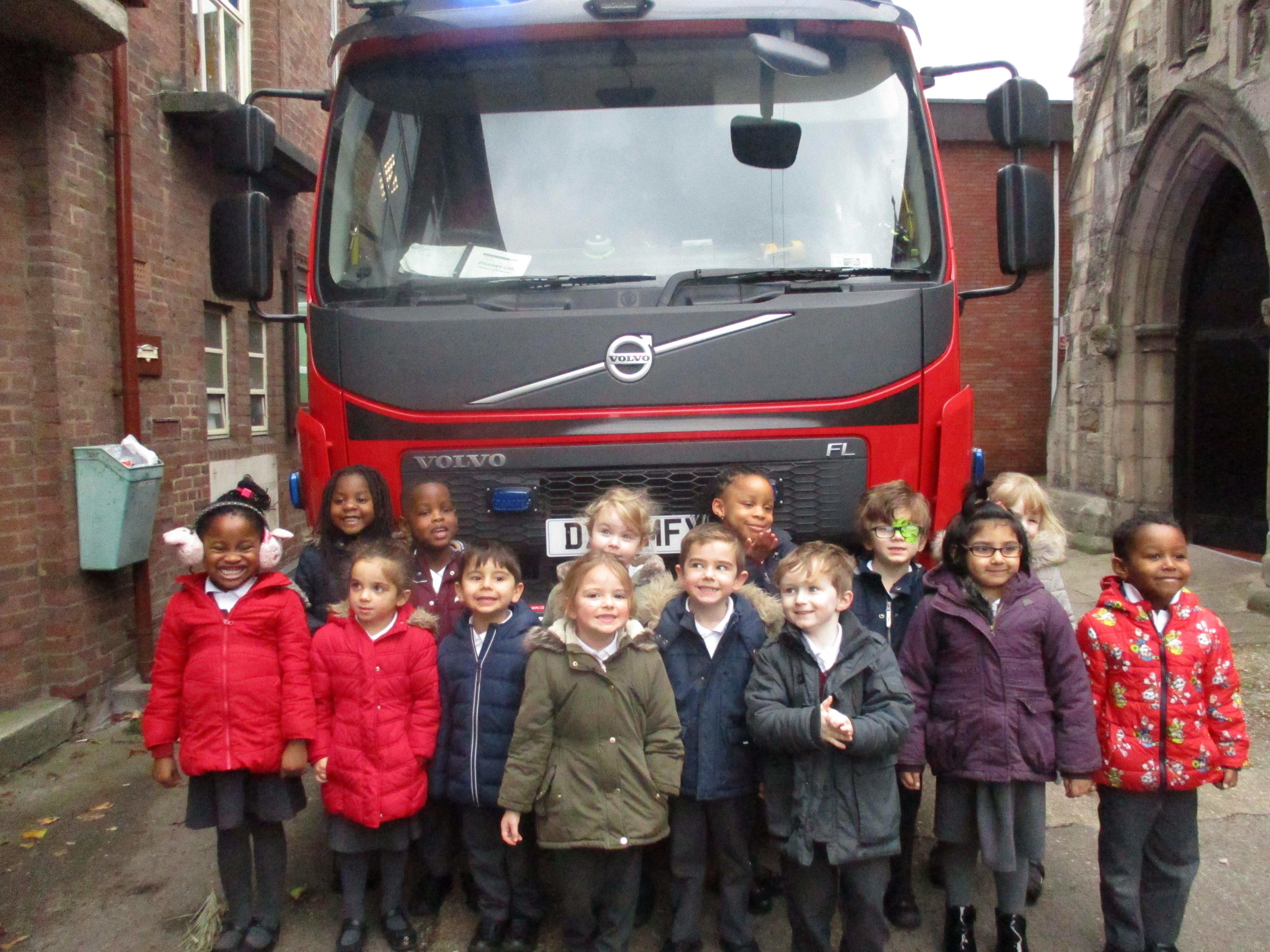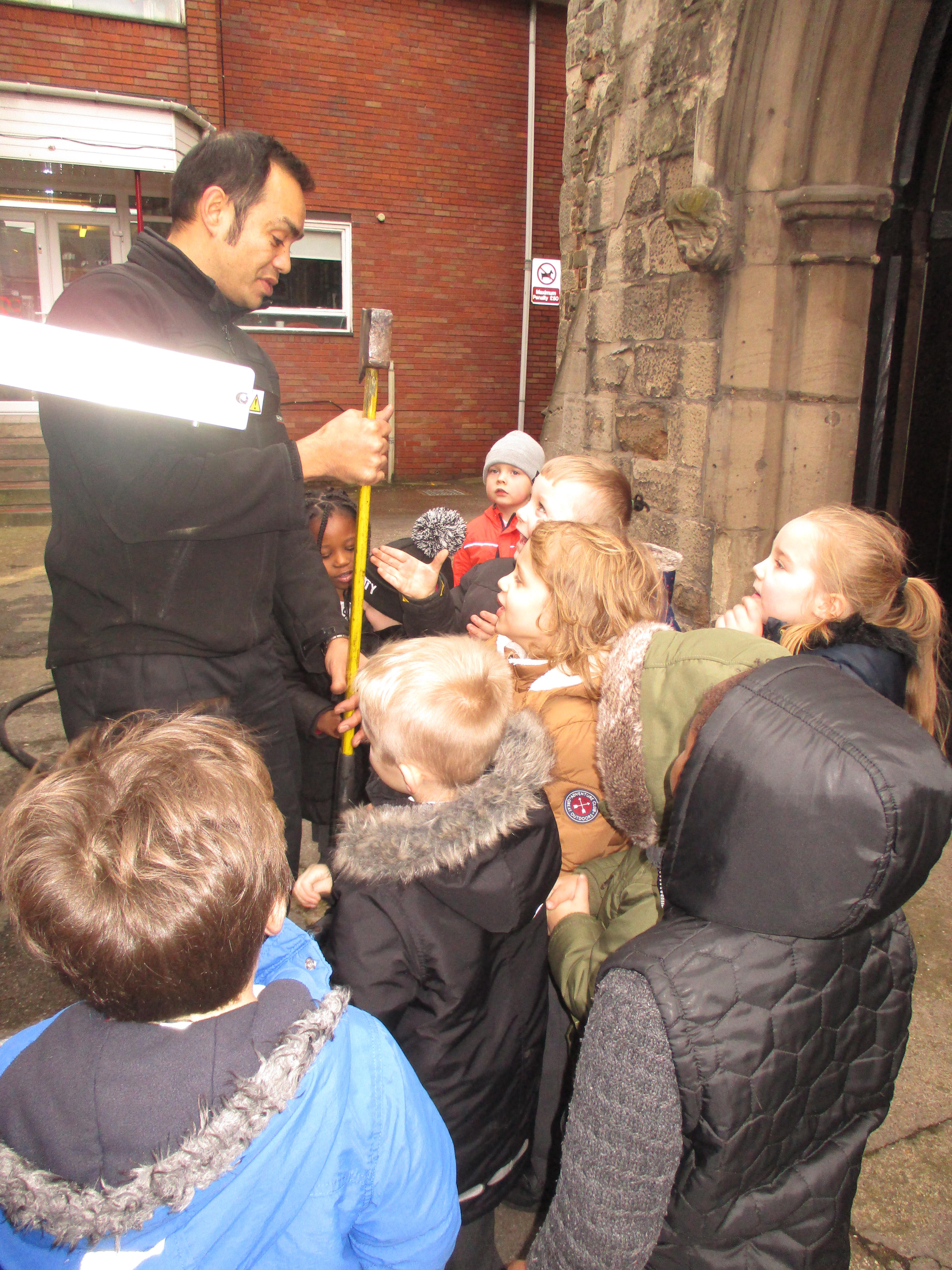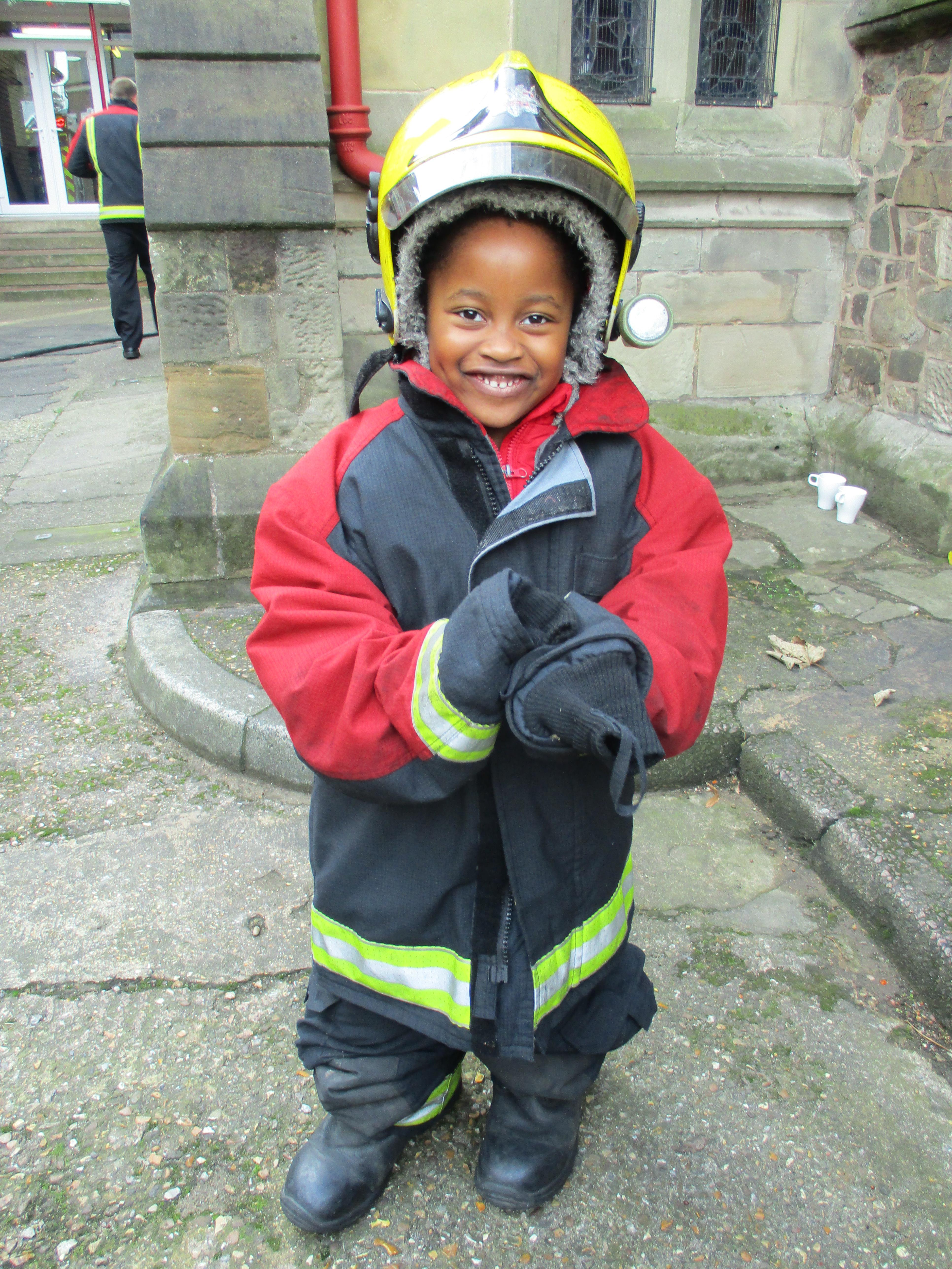Reception had a very exciting morning when the firemen came to visit. They all had a go at using the firemen's hose, trying on the special fire fighter uniform and all had a turn at sitting in the fire engine with the blue flashing lights on!The firemen told the children all about their job and what they need to do if they ever needed to call the firemen.