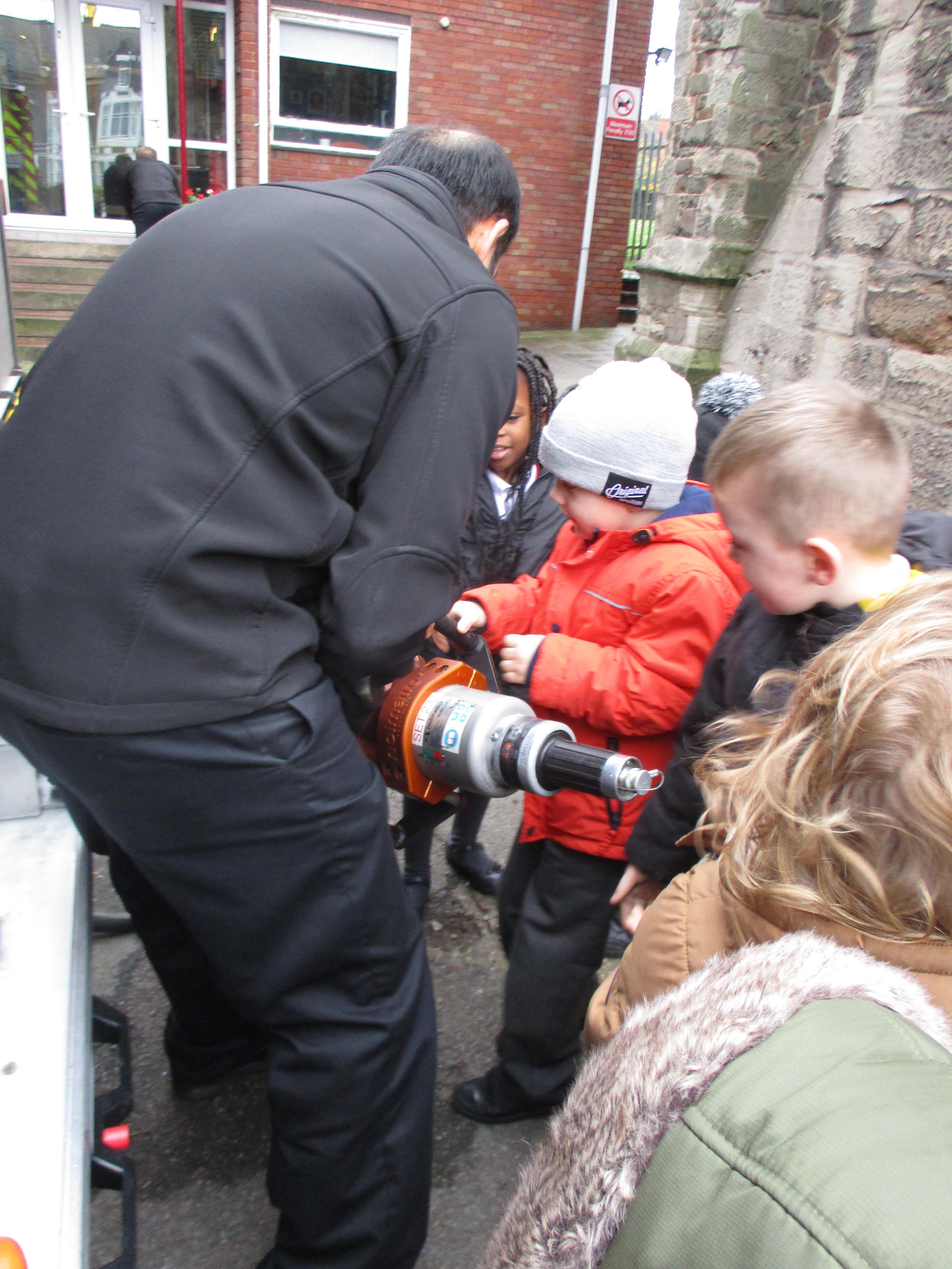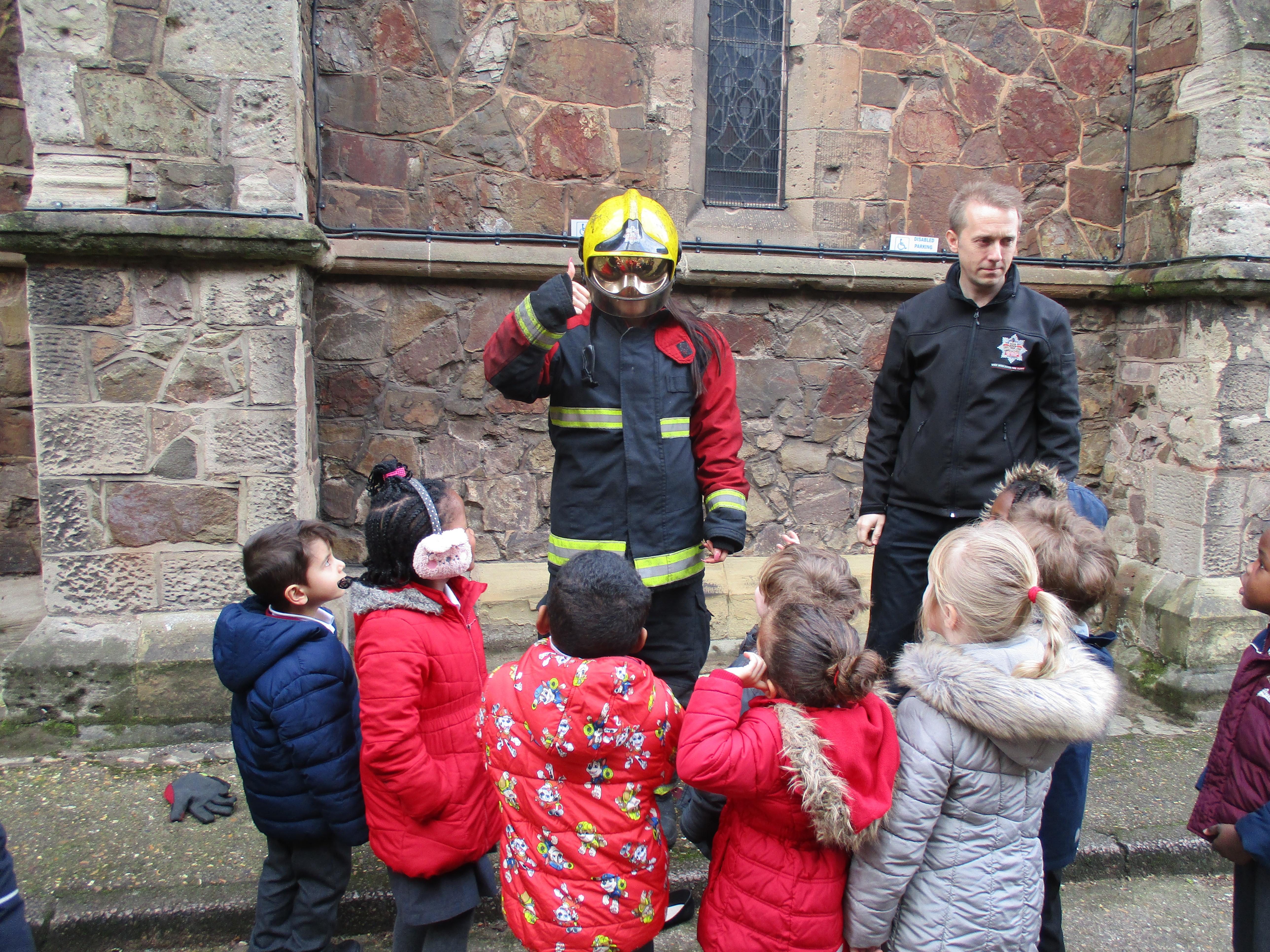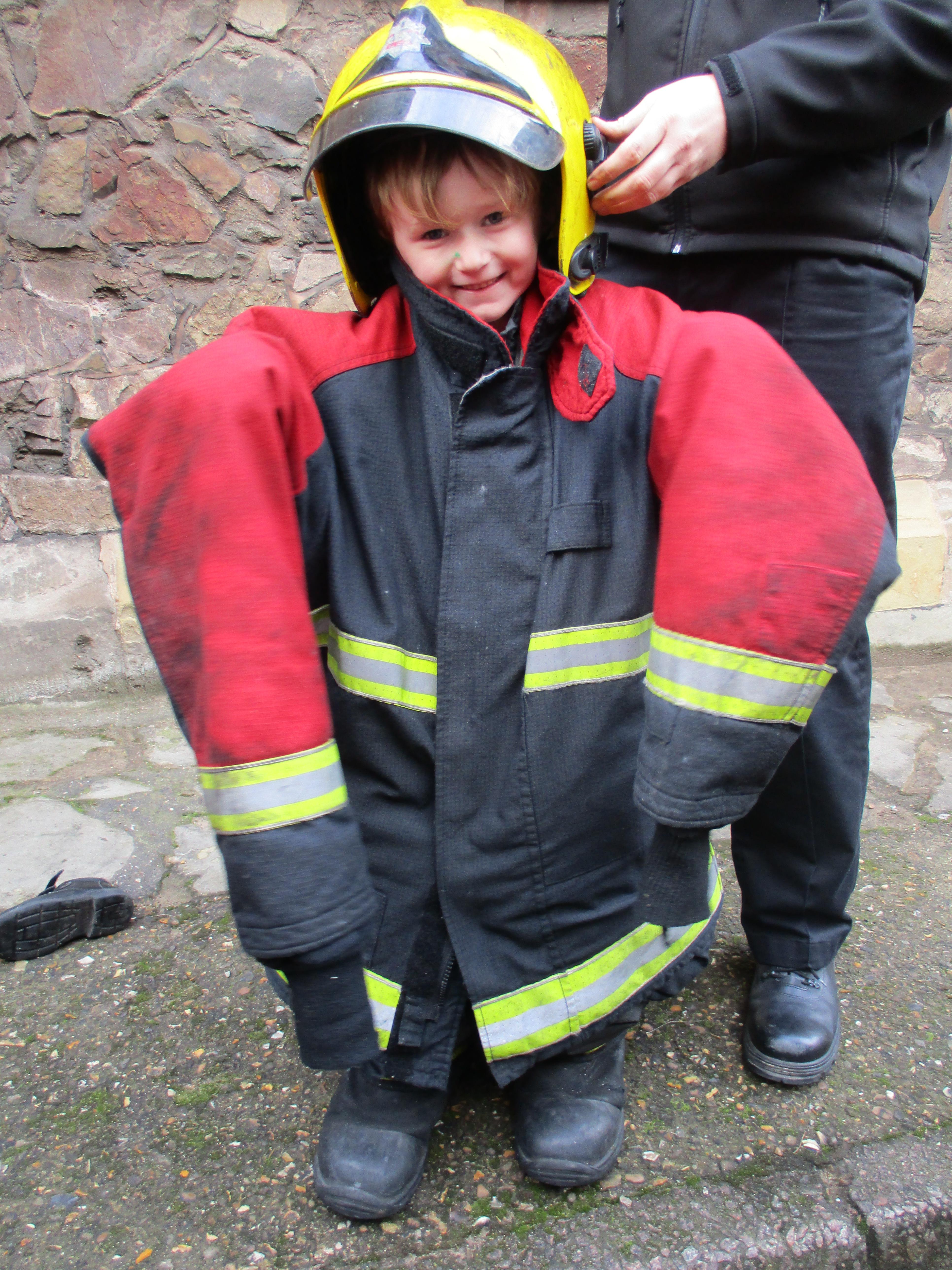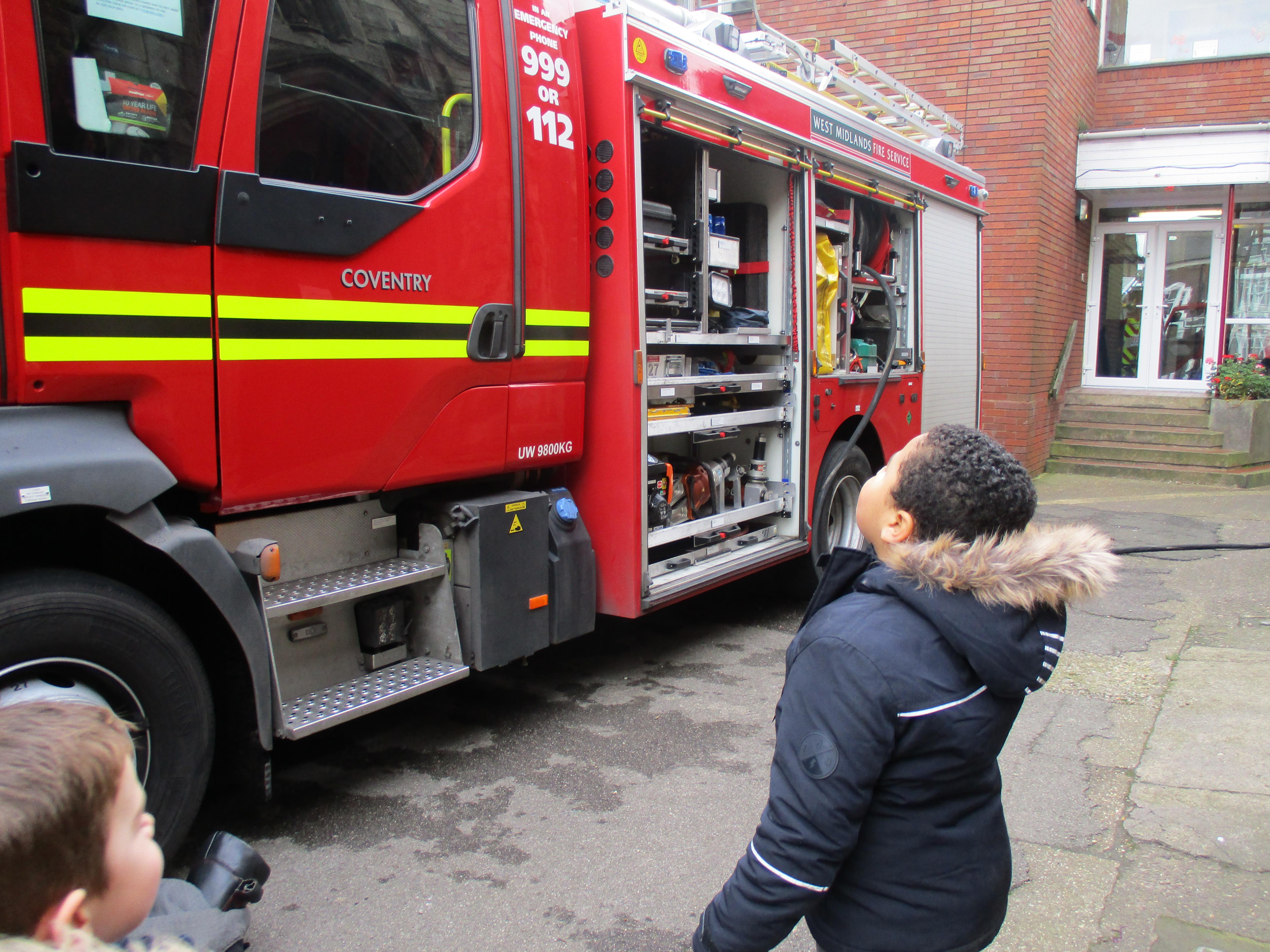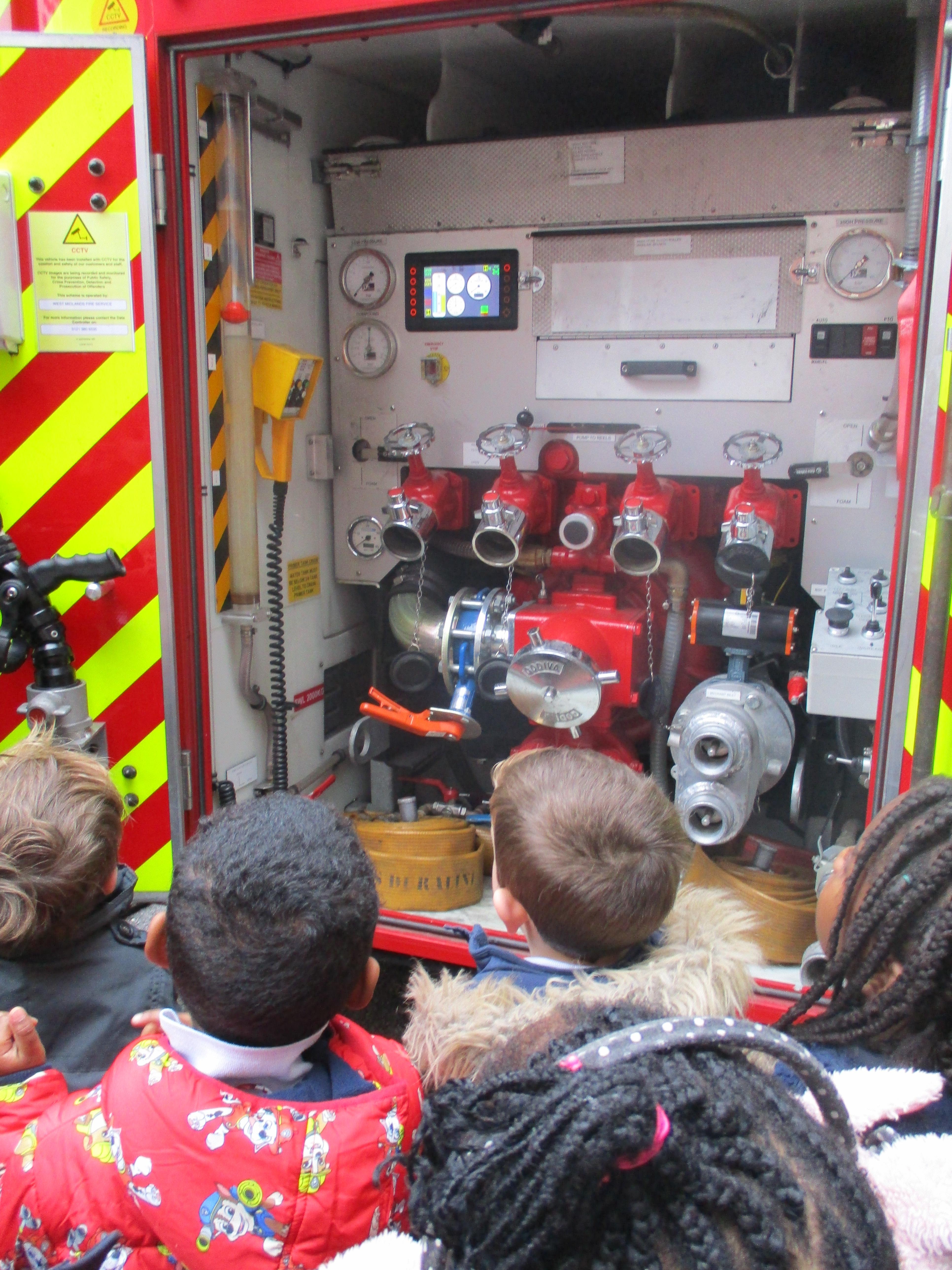 Reception had a very exciting morning when the firemen came to visit. They all had a go at using the firemen's hose, trying on the special fire fighter uniform and all had a turn at sitting in the fire engine with the blue flashing lights on!The firemen told the children all about their job and what they need to do if they ever needed to call the firemen.