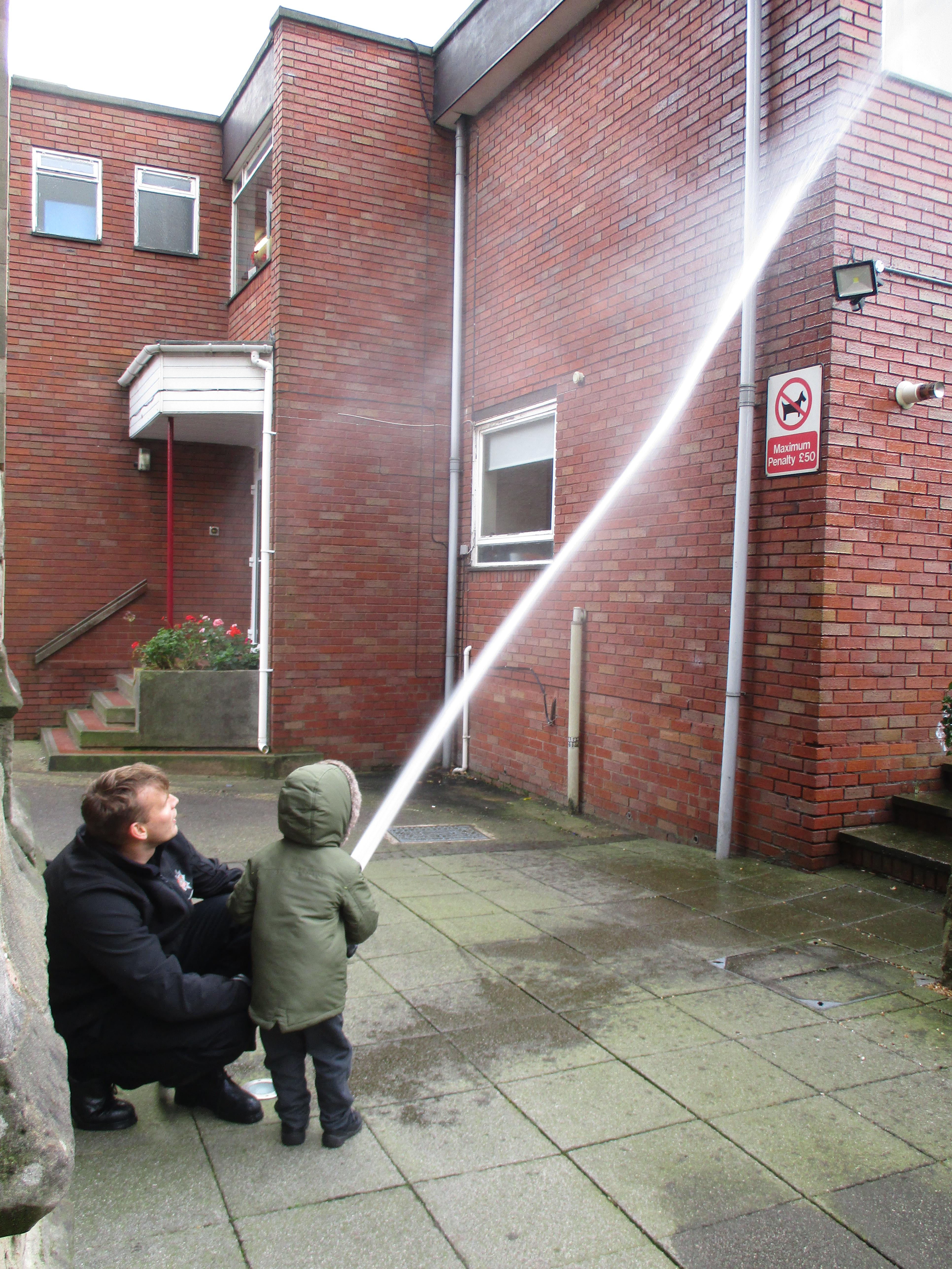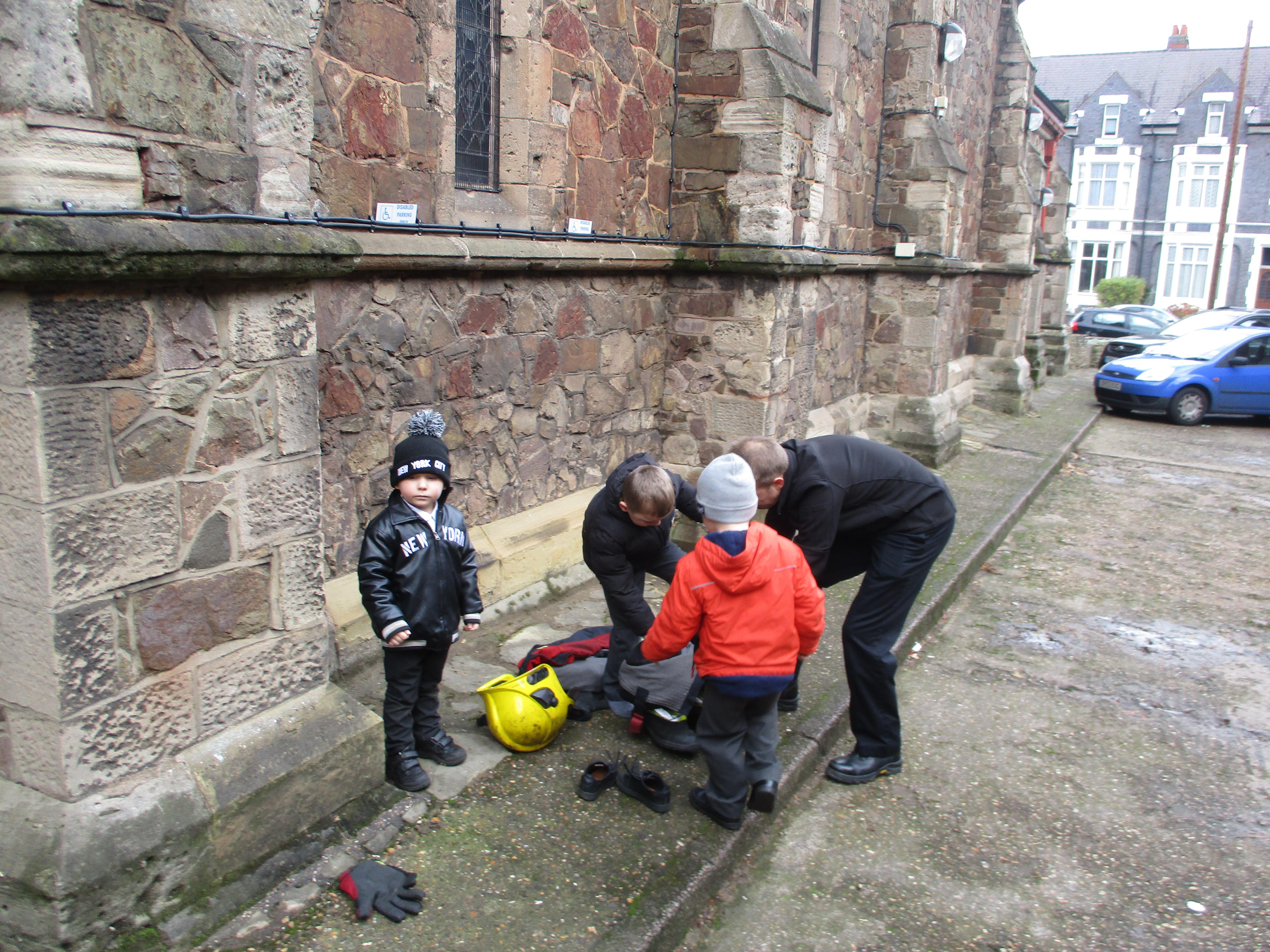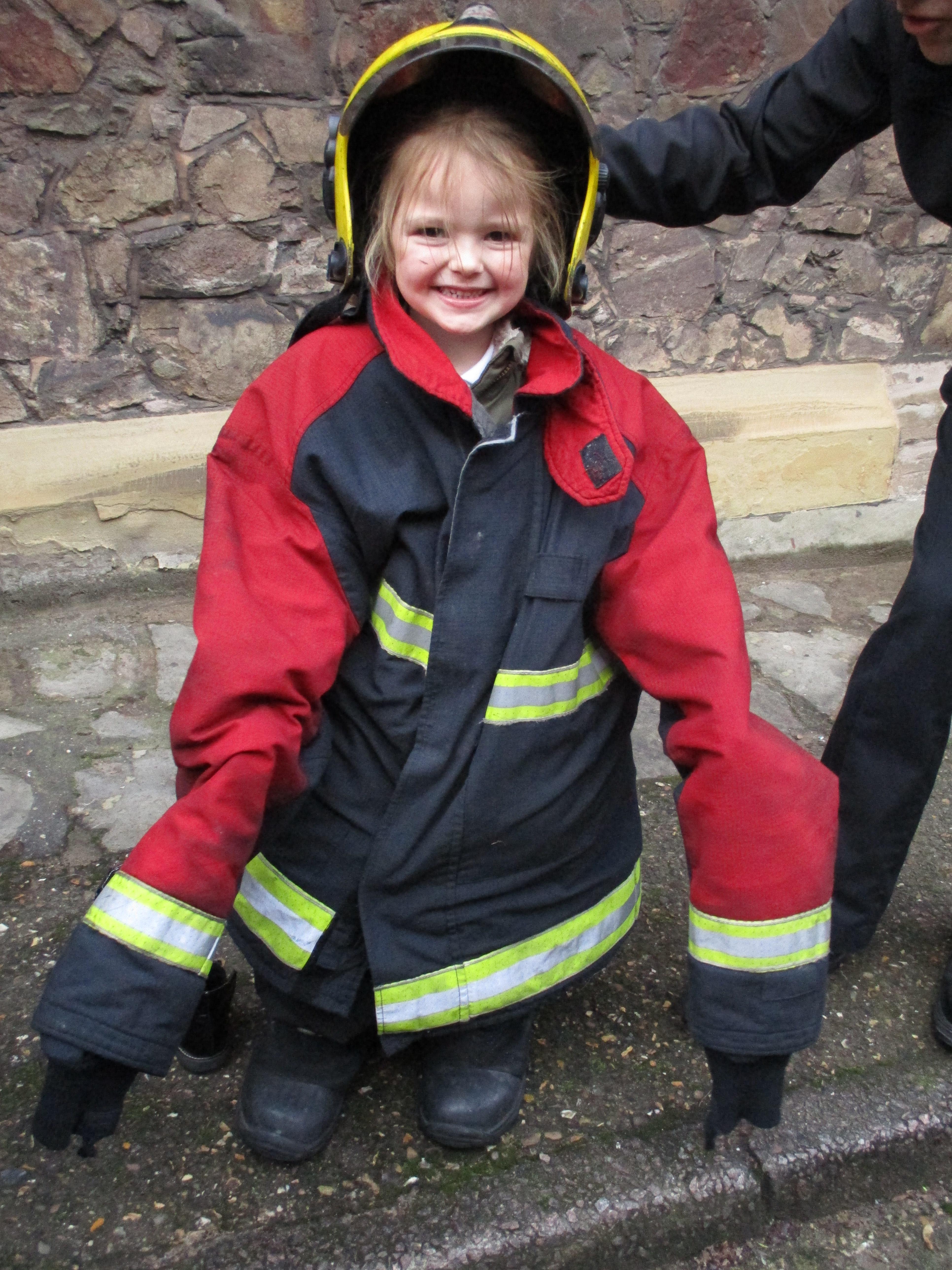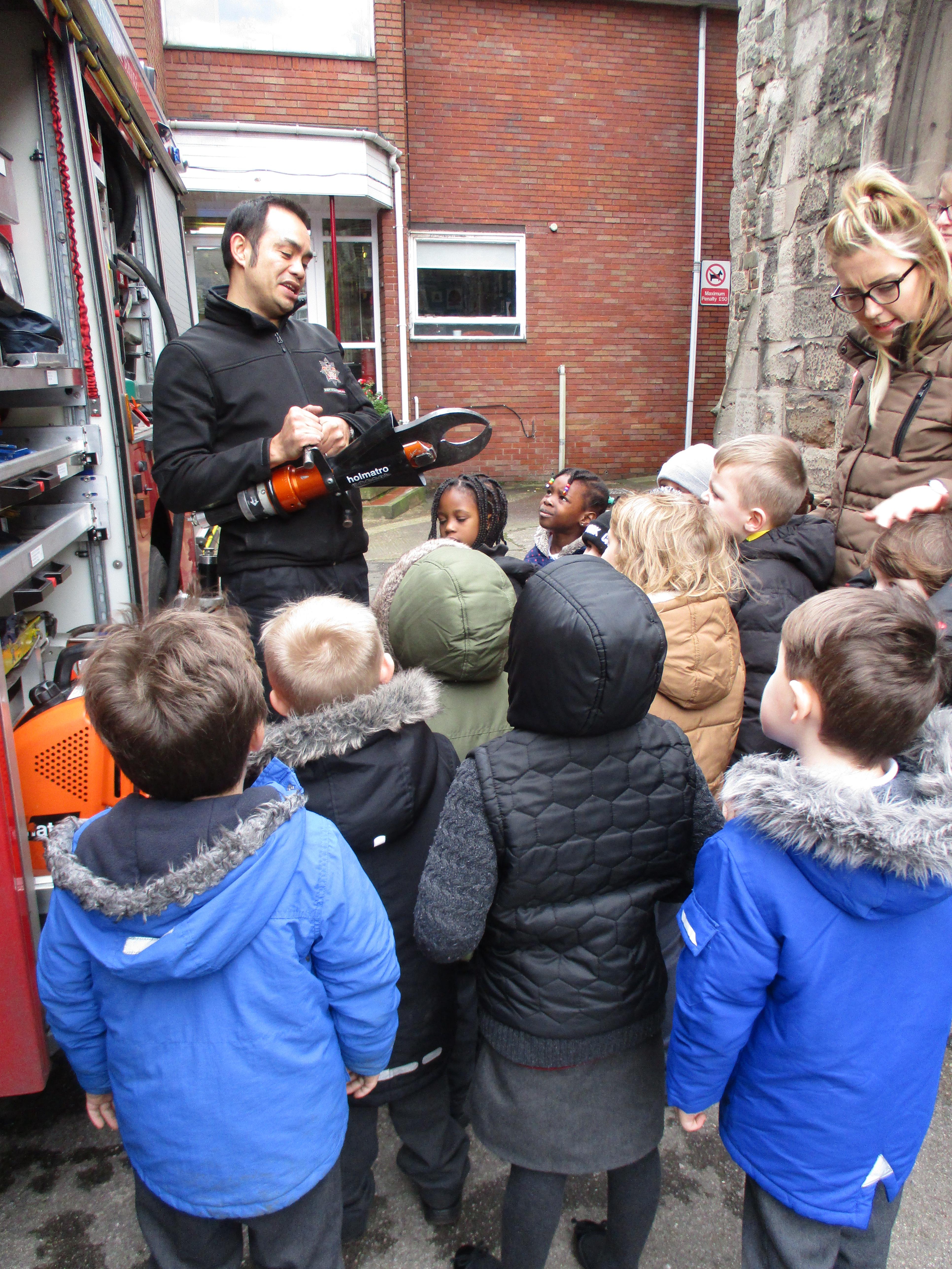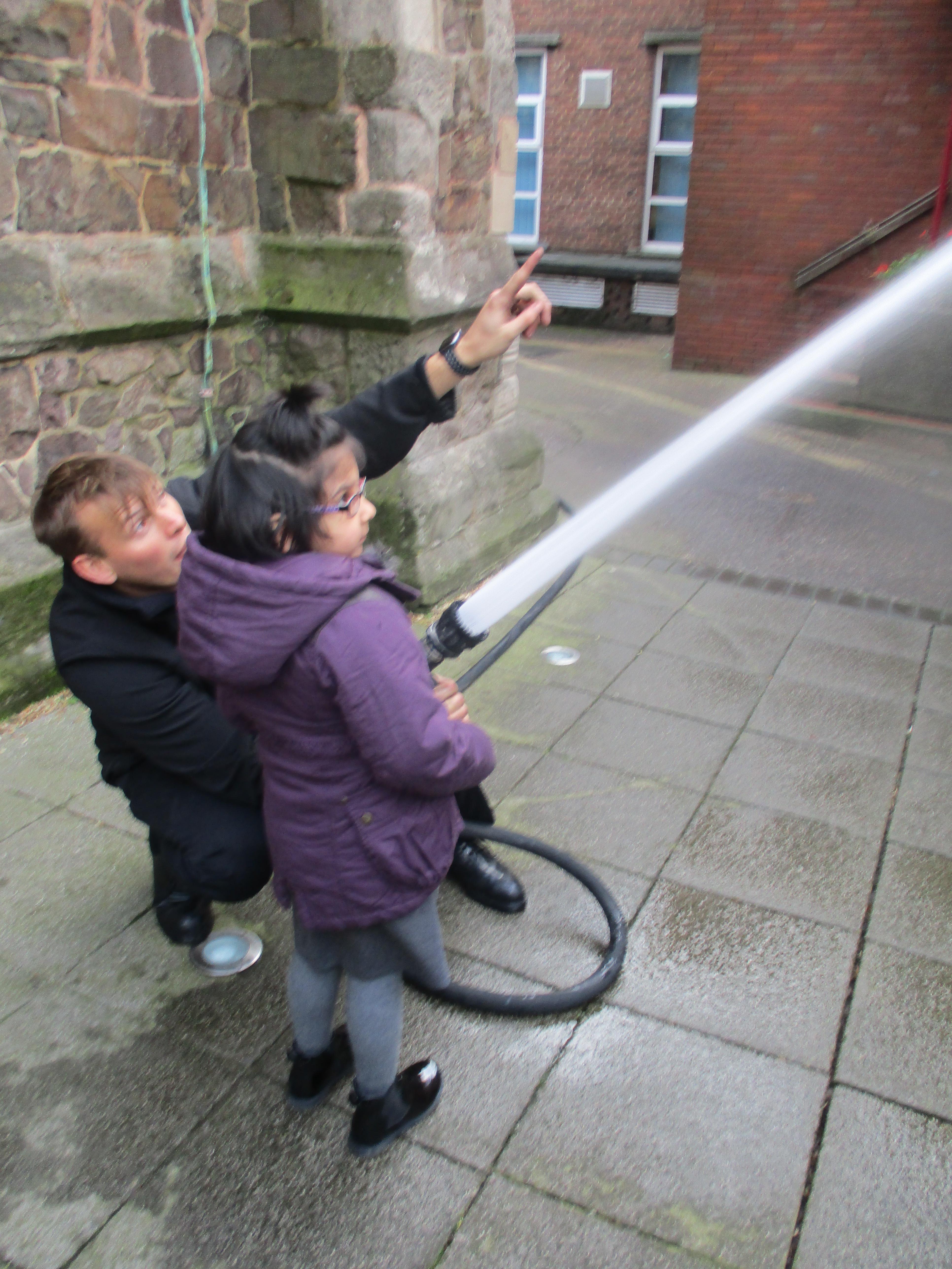 Reception had a very exciting morning when the firemen came to visit. They all had a go at using the firemen's hose, trying on the special fire fighter uniform and all had a turn at sitting in the fire engine with the blue flashing lights on!The firemen told the children all about their job and what they need to do if they ever needed to call the firemen.