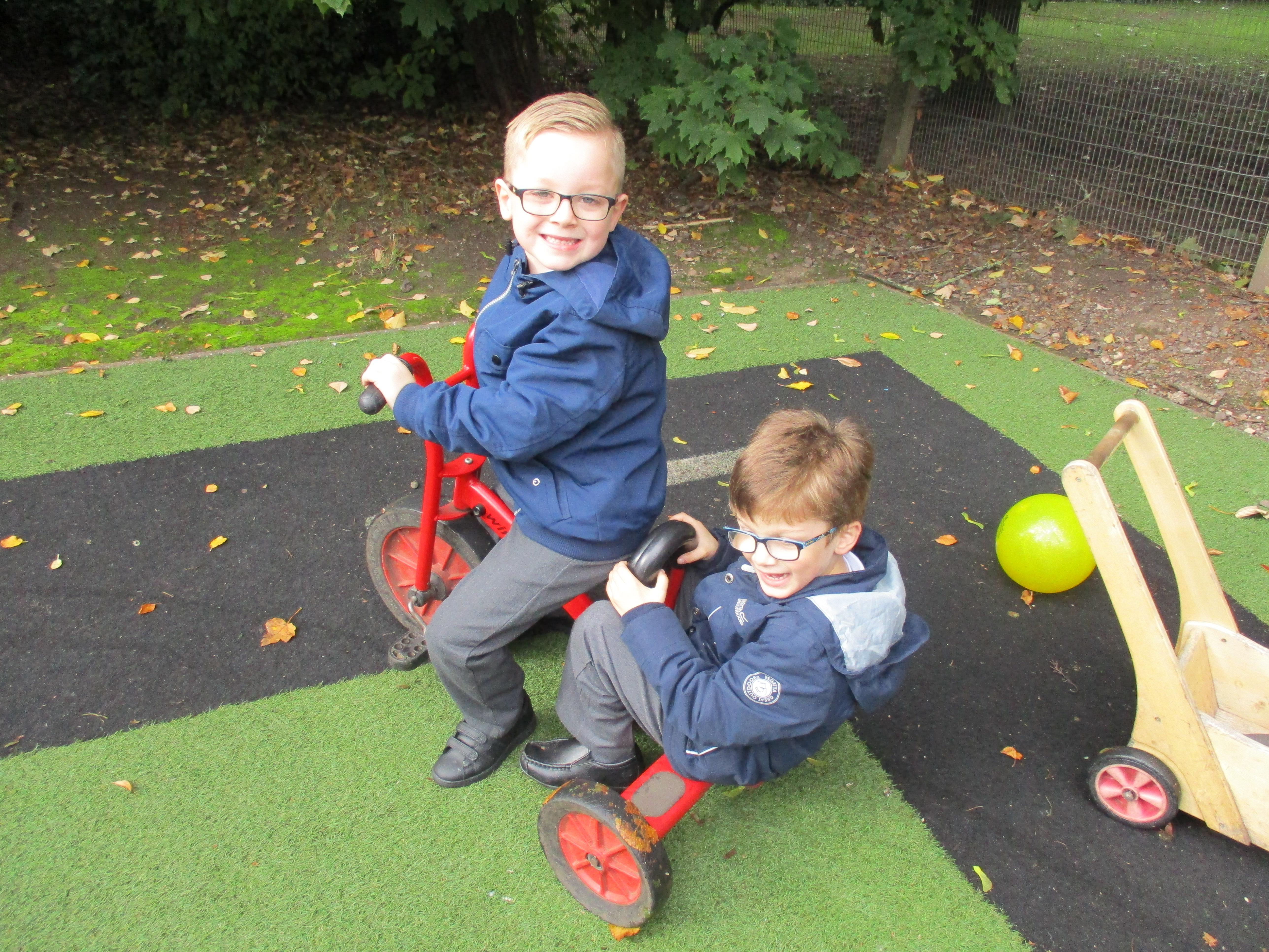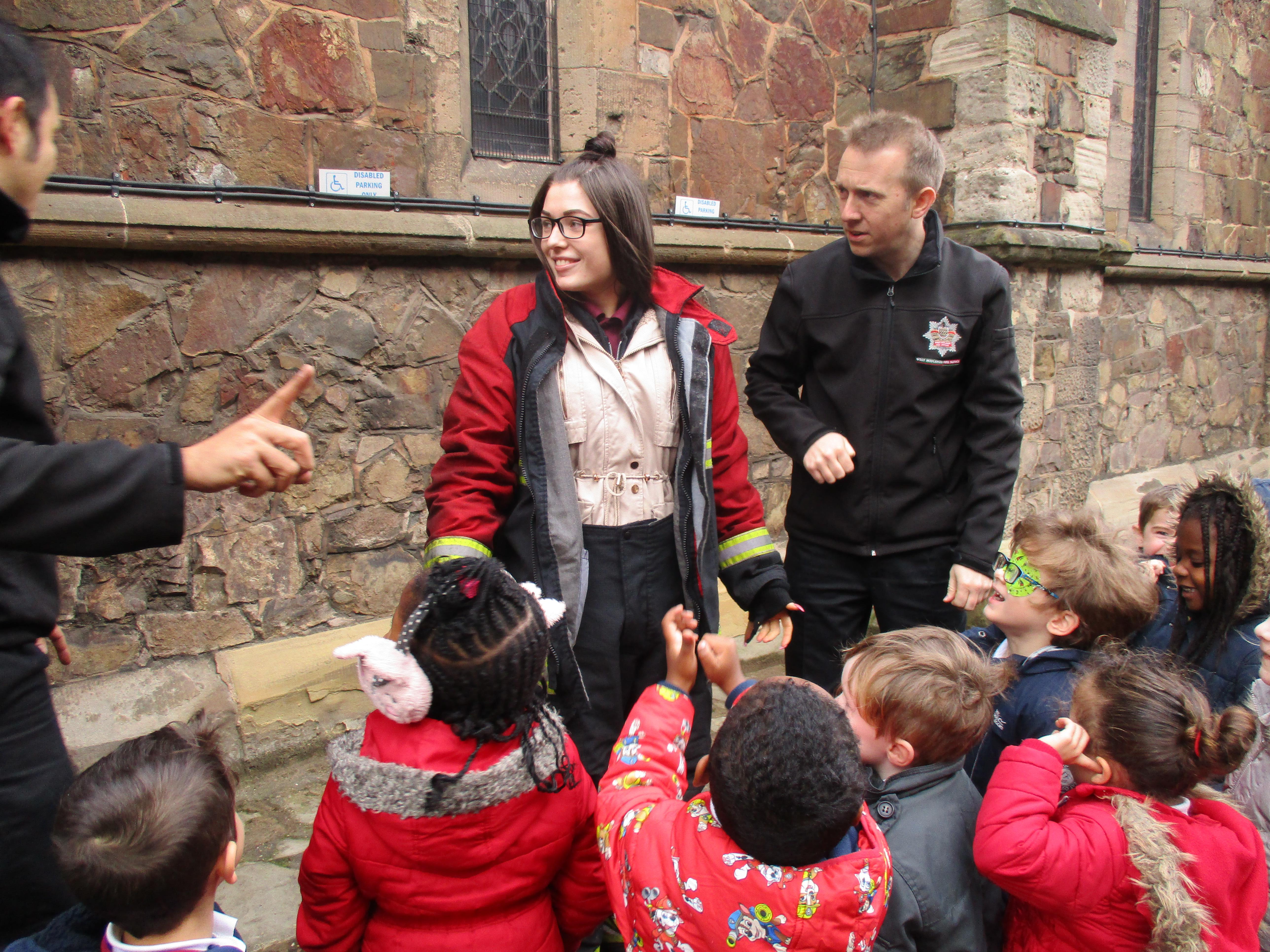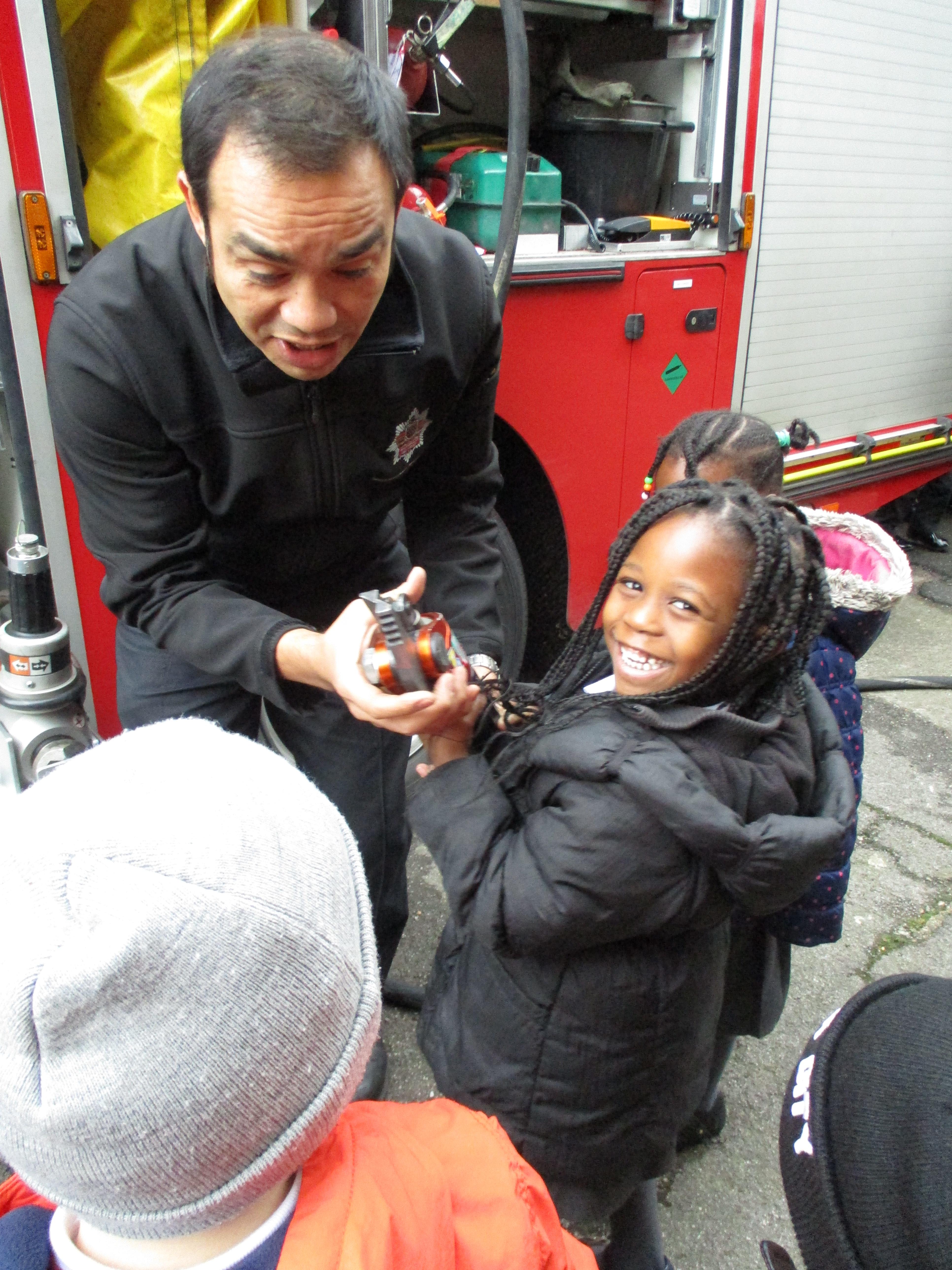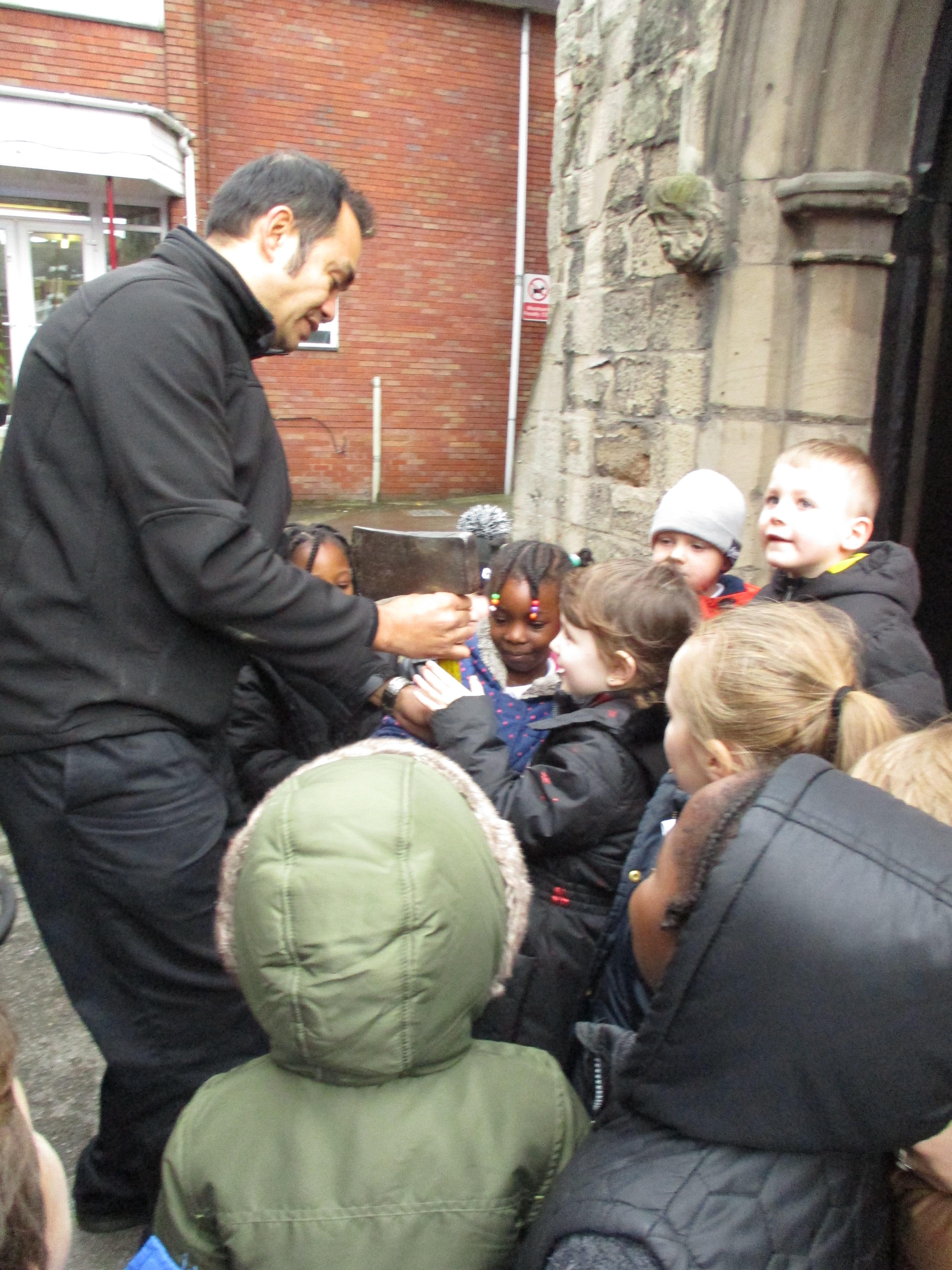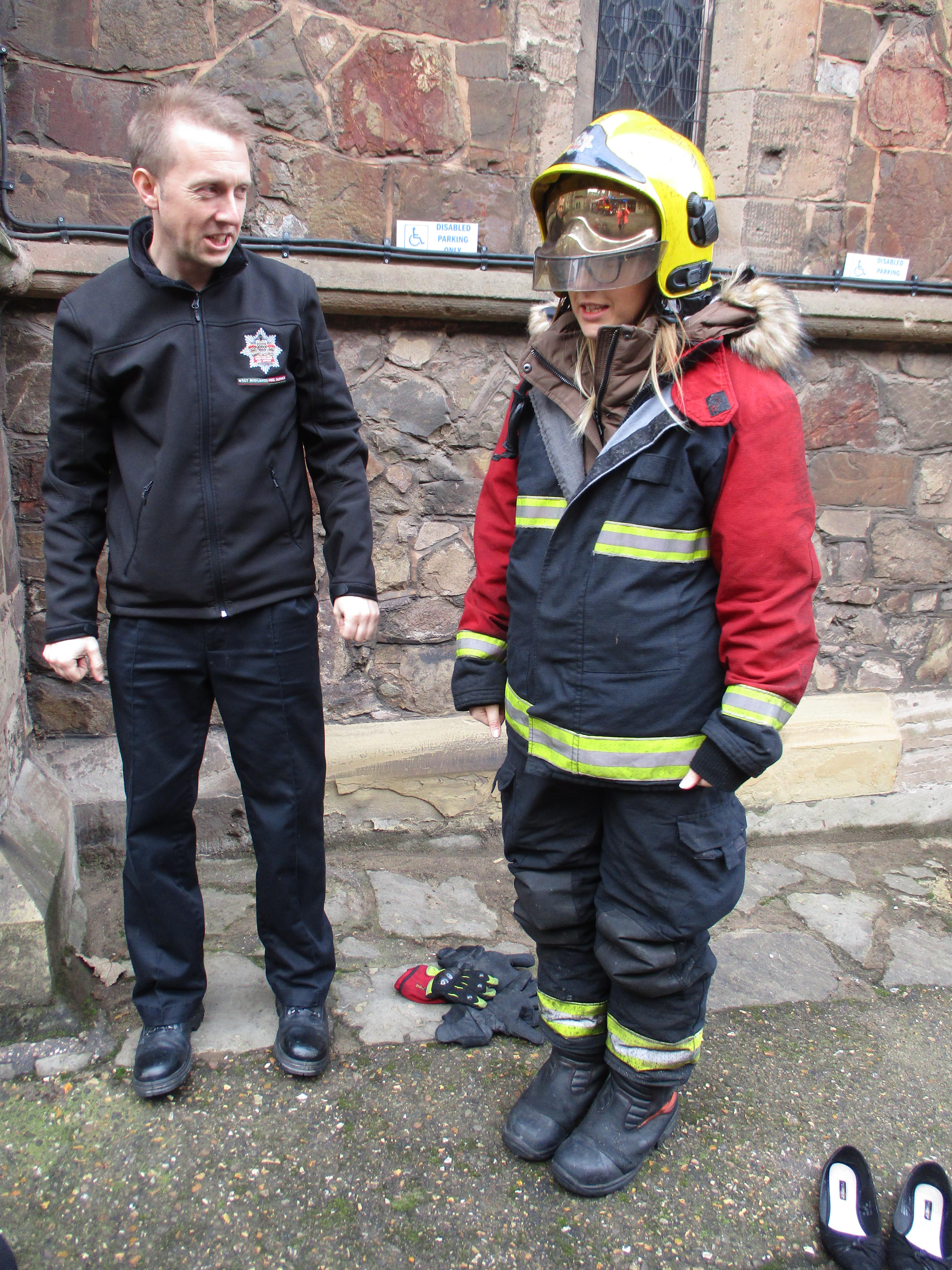 Reception had a very exciting morning when the firemen came to visit. They all had a go at using the firemen's hose, trying on the special fire fighter uniform and all had a turn at sitting in the fire engine with the blue flashing lights on!The firemen told the children all about their job and what they need to do if they ever needed to call the firemen.