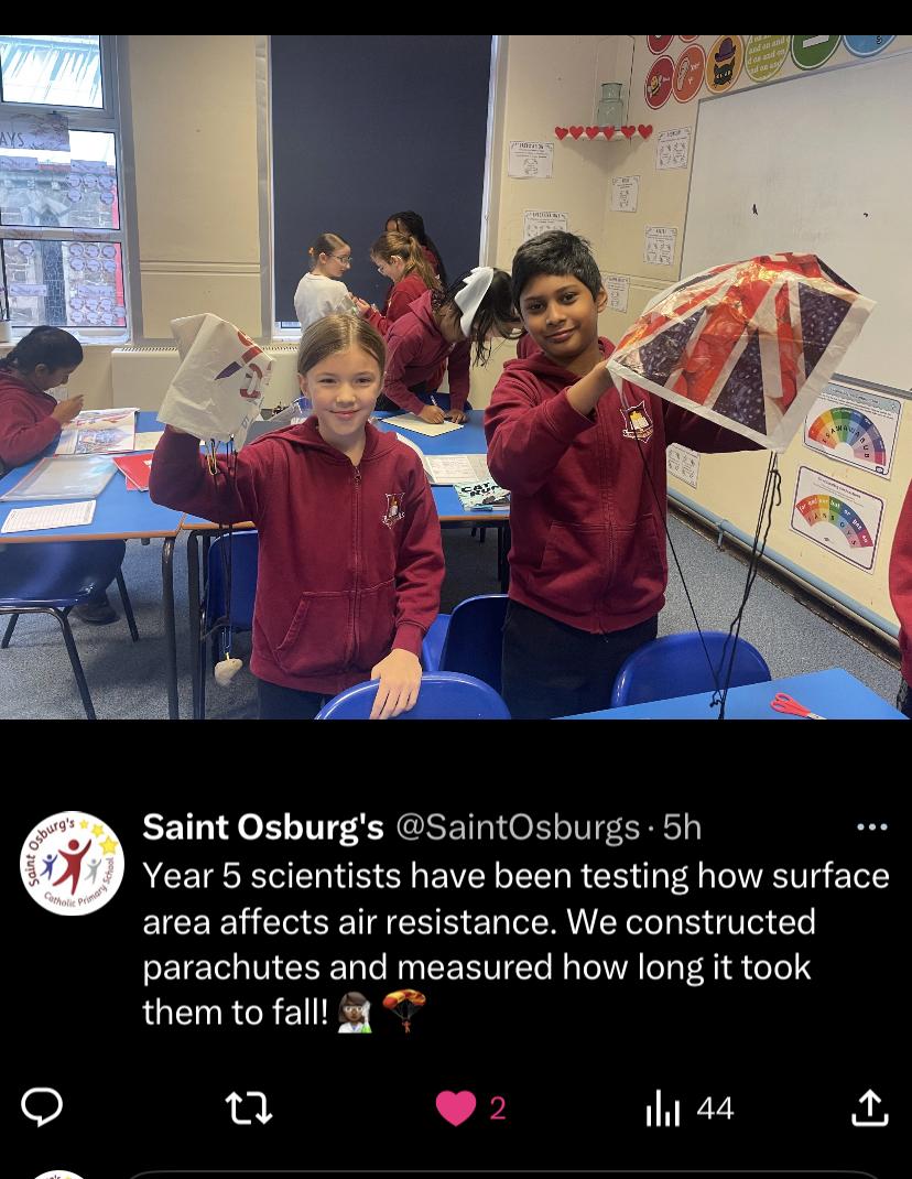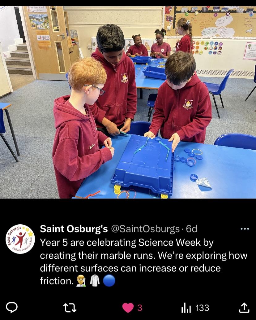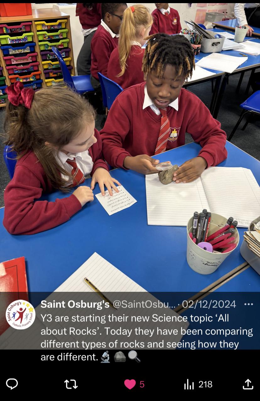 We are delighted to share that we have been awarded the Primary Science Quality Mark for our commitment to providing a high quality, and engaging Science curriculum for all our pupils. ‘Many congratulations to everyone at St Osburgs on the achievement of the Primary Science Quality Mark.' - Helen Sizer, Deputy Director: Primary Science Quality Mark