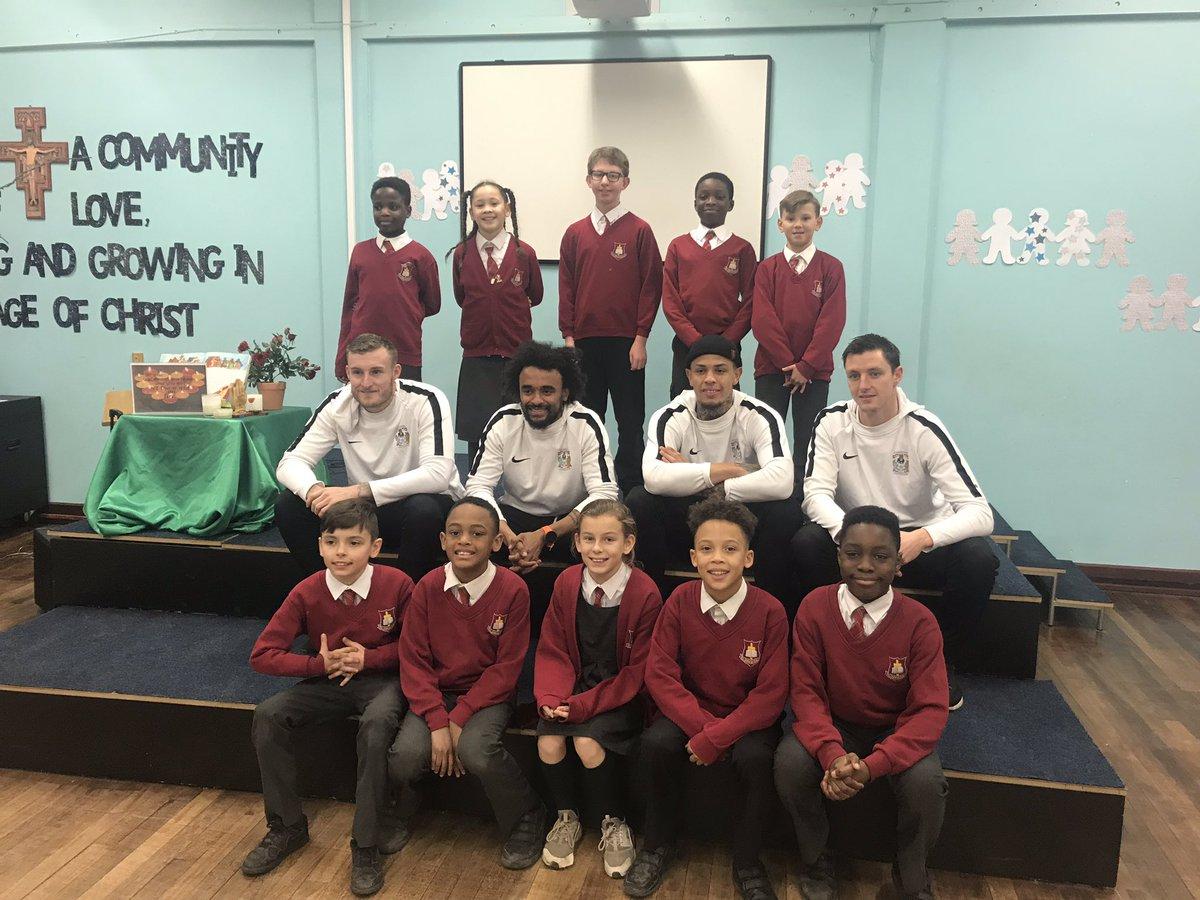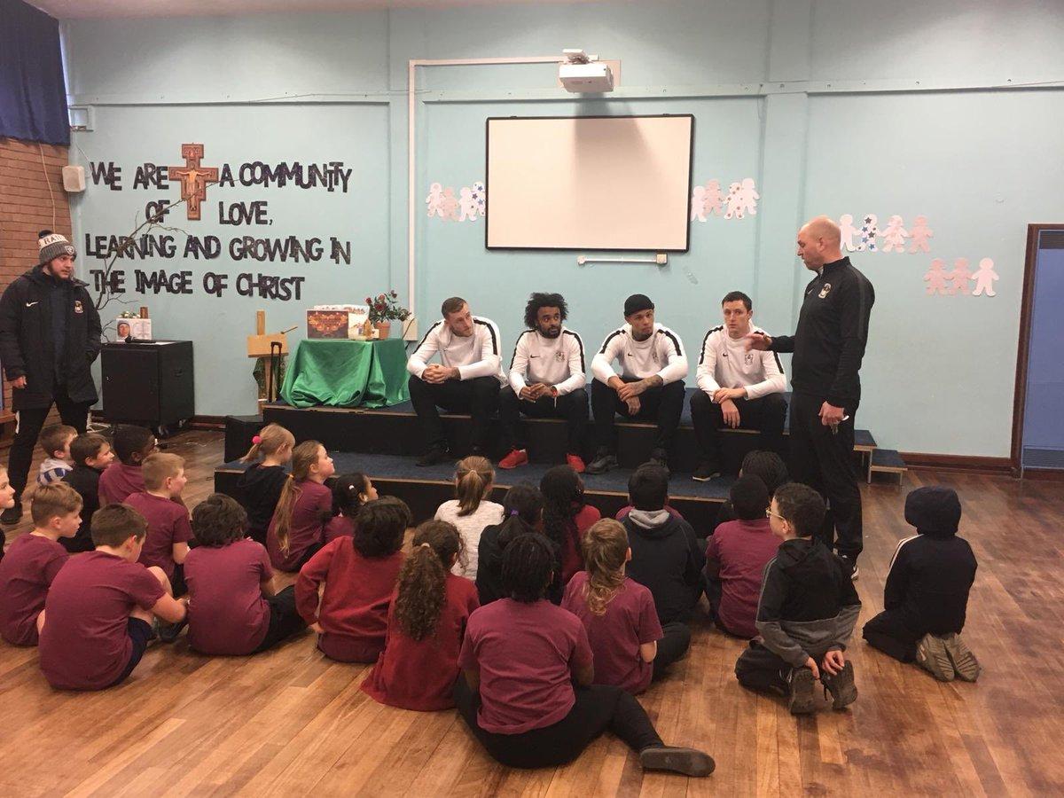 Pupils in Years 3 and 4 had a special treat yesterday when four members of Coventry City Football Team turned up to join in with their PE lessons. They all joined in a game of dodgeball in addition to having the chance to answer lots of questions and have some photos taken. What a nice surprise!