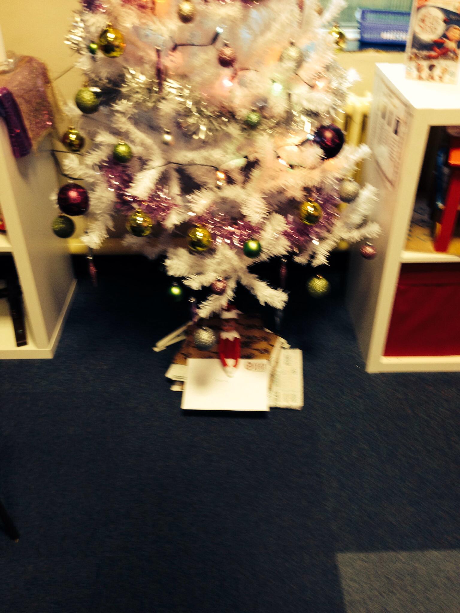 Sparkle had left us a letter today saying he was unable to fly back to the North Pole last night so wasn't able to bring the treat Santa has for us- hopefully he'll make it tonight!