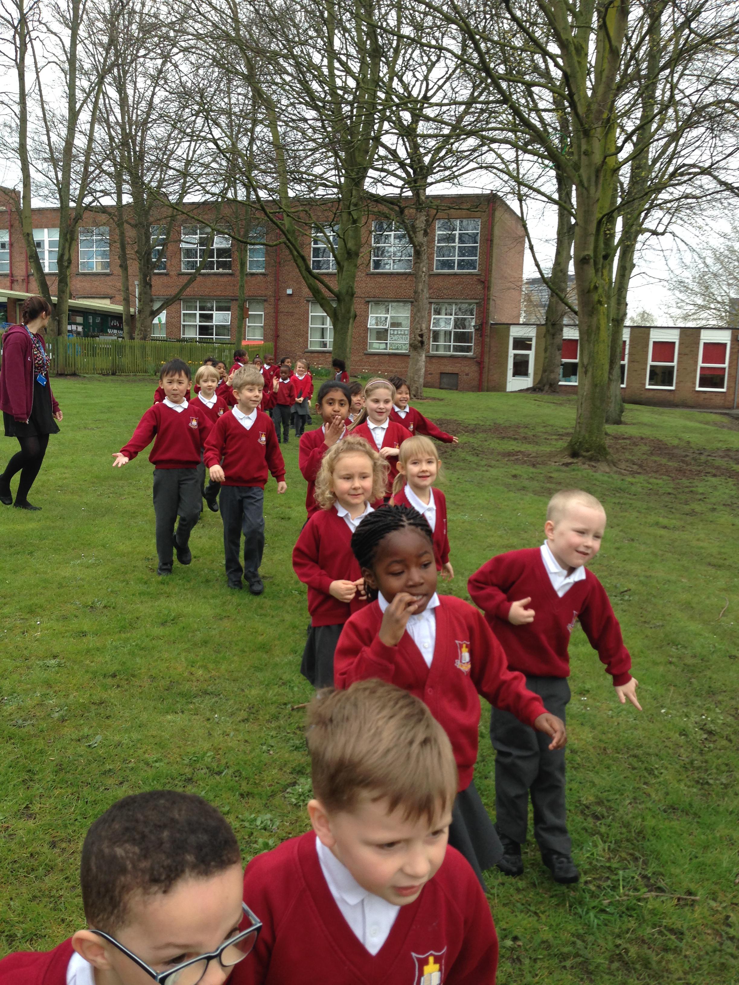 In science we have started out new topic of sound by going on a sound walk. We heard lots of different sounds around our school.