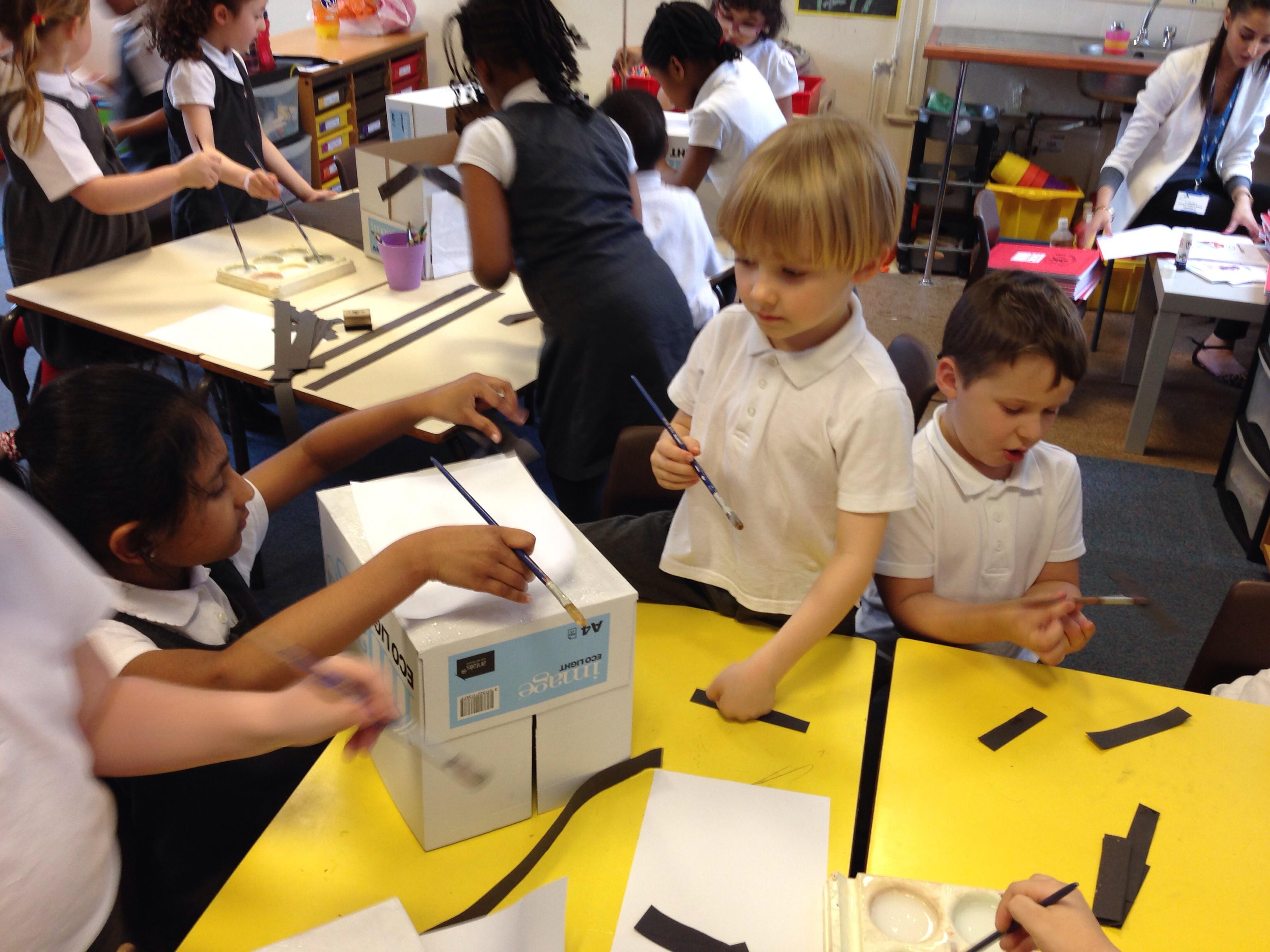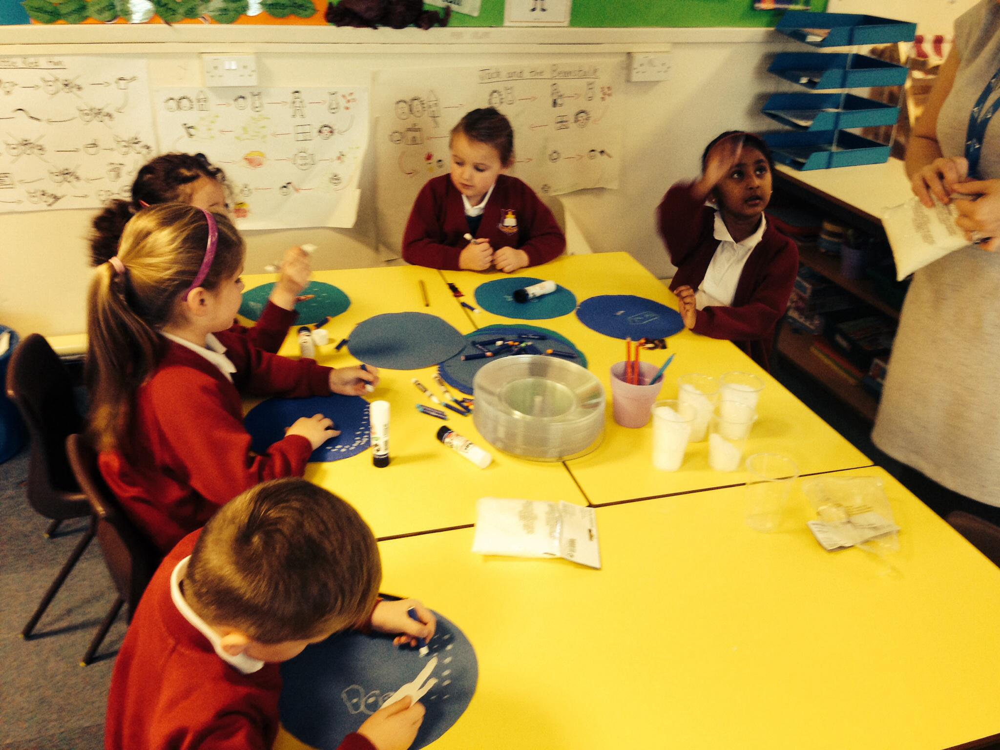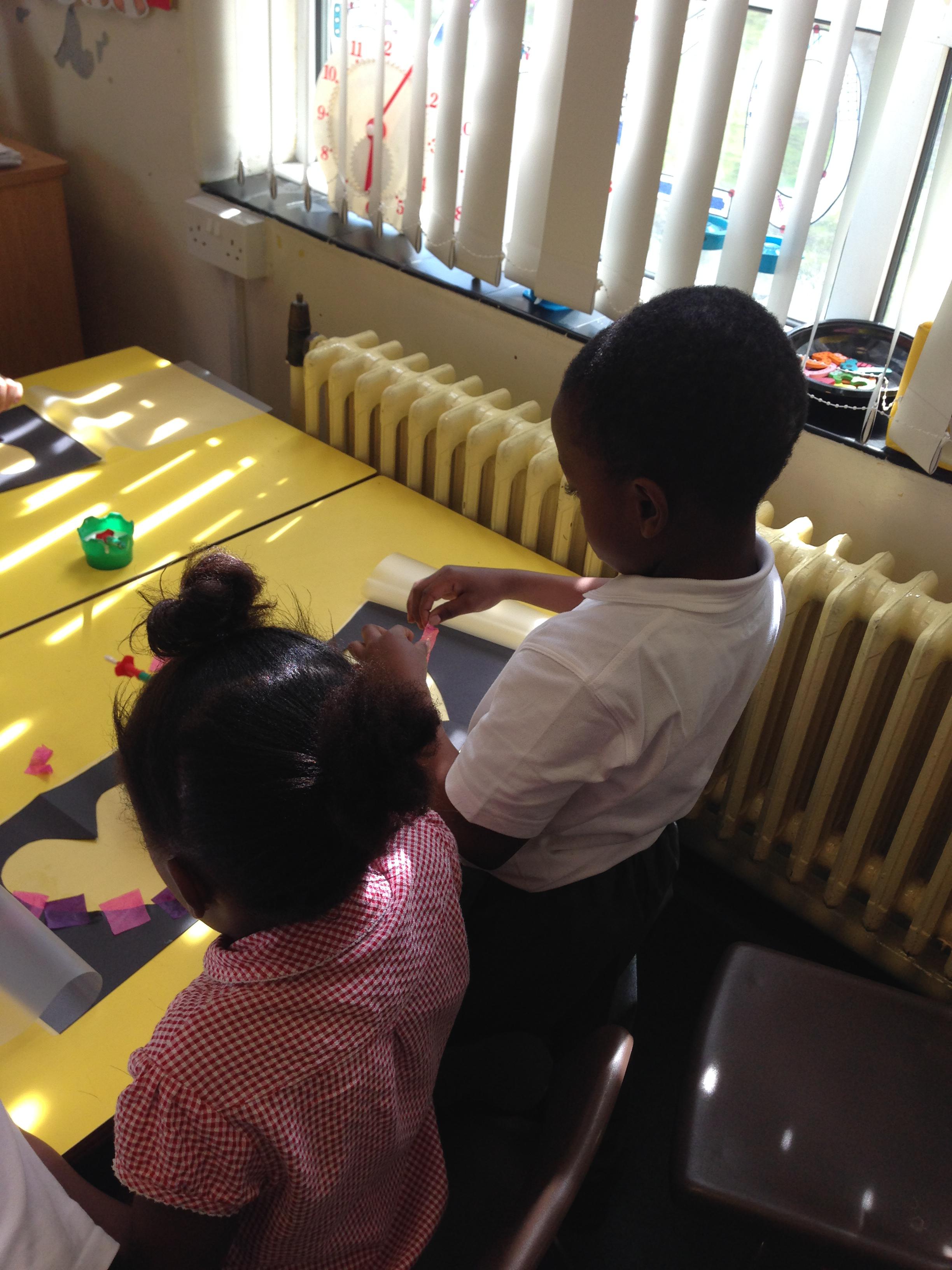 In Art we looked at Van Gogh's Starry Night, the children used crayons to create the starry night background and cut building shapes out of black paper to glue to the background. These look fantastic and will be used to create a display.