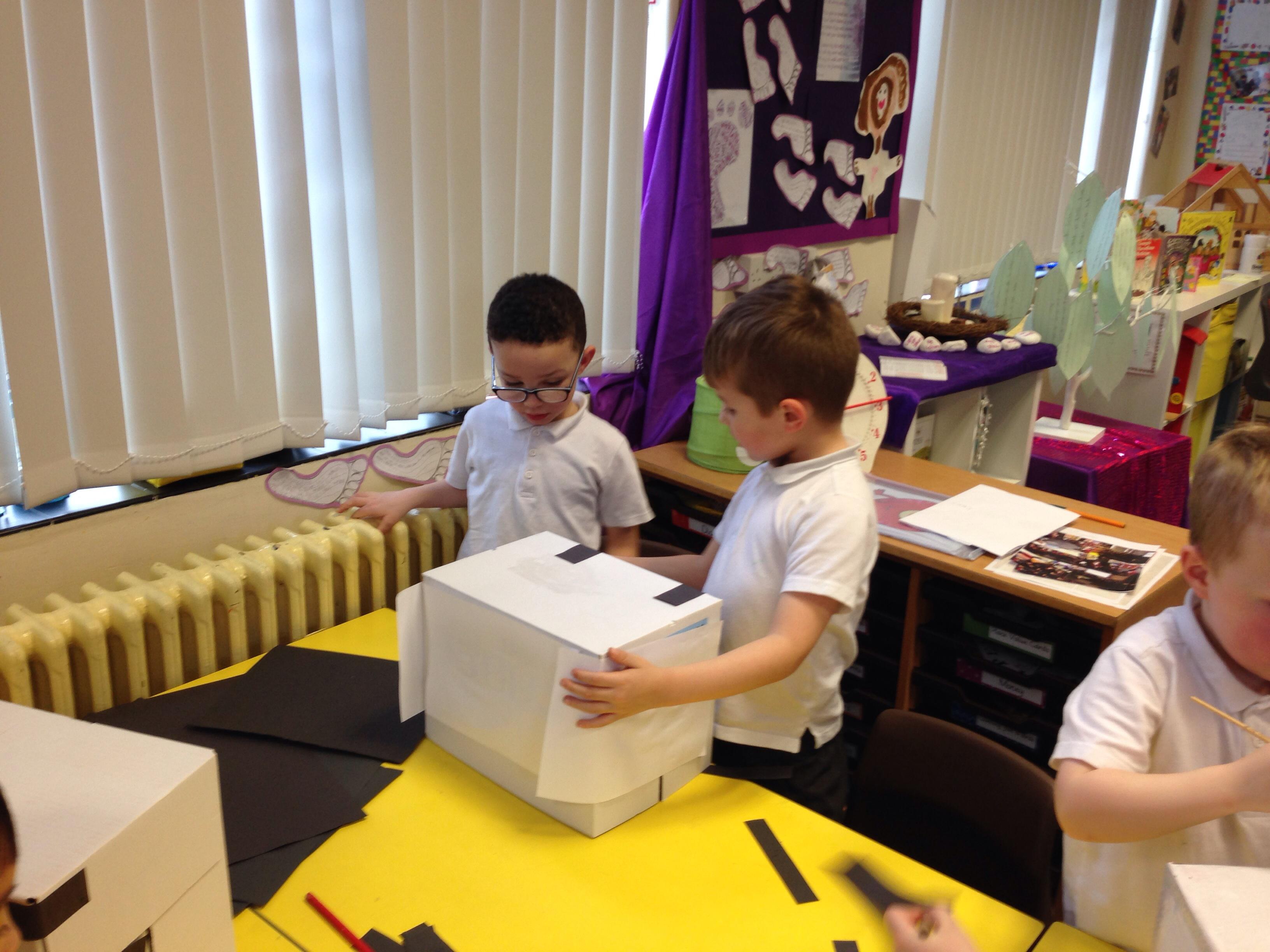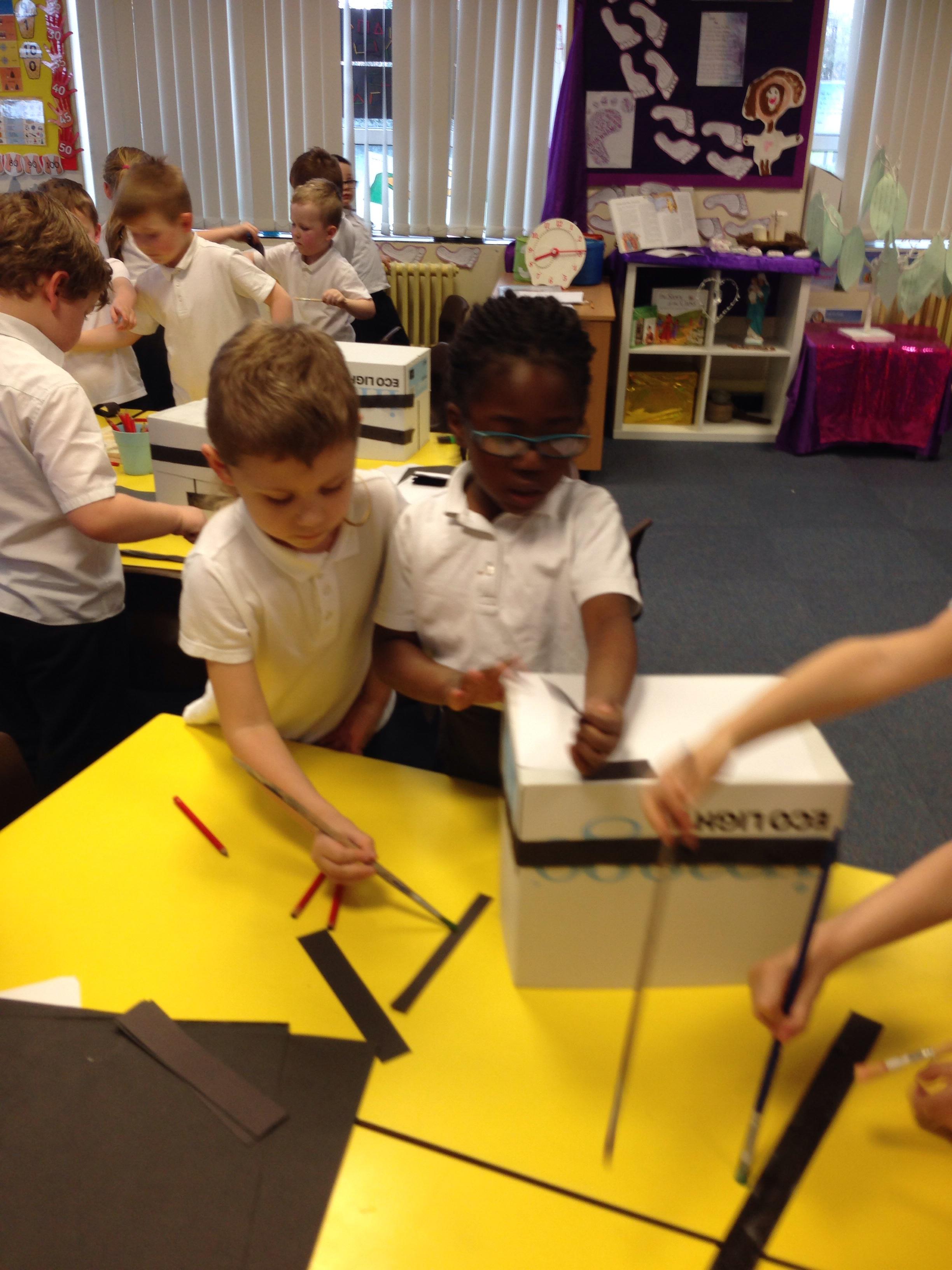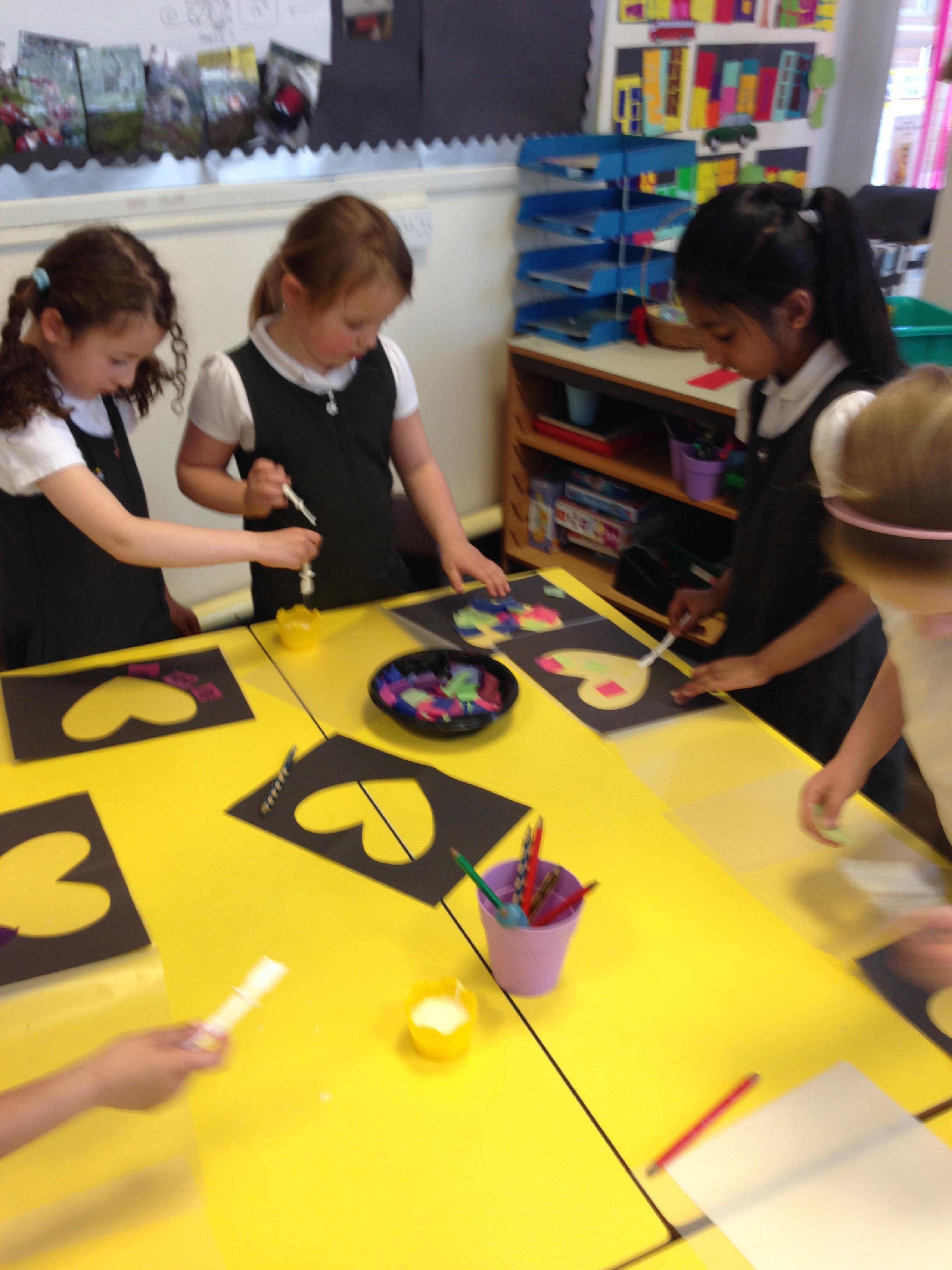 In Art we looked at Van Gogh's Starry Night, the children used crayons to create the starry night background and cut building shapes out of black paper to glue to the background. These look fantastic and will be used to create a display.