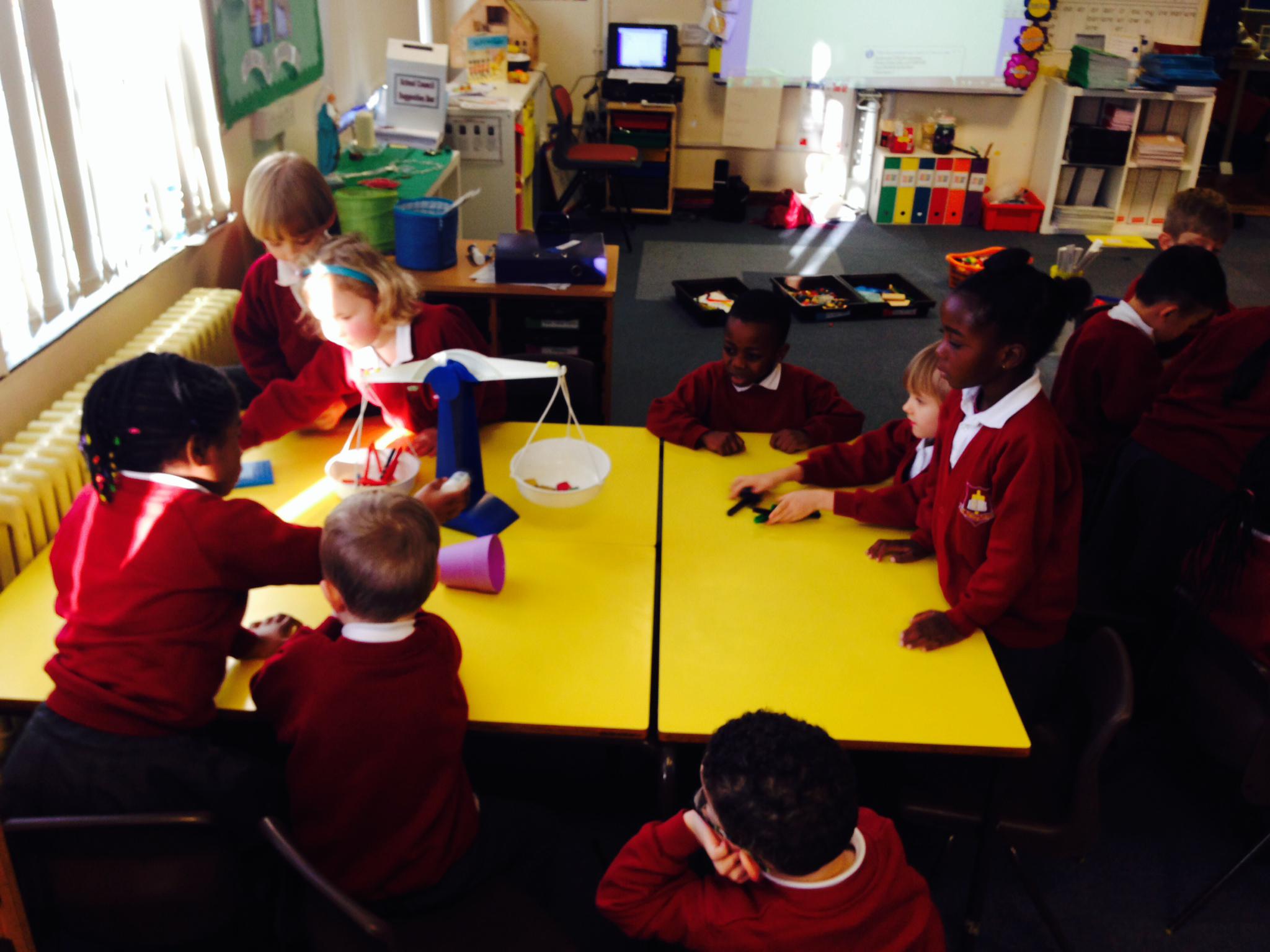 In Maths we have learnt about place value in 2 digit numbers, compared and ordered numbers, solved problems, learnt about grouping and sharing objects and arrays. We also looked at weighing where the children had the opportunity to compare the weight of different objects as well as weighing objects using non-standard units such as the number of cubes a glue stick weighed.