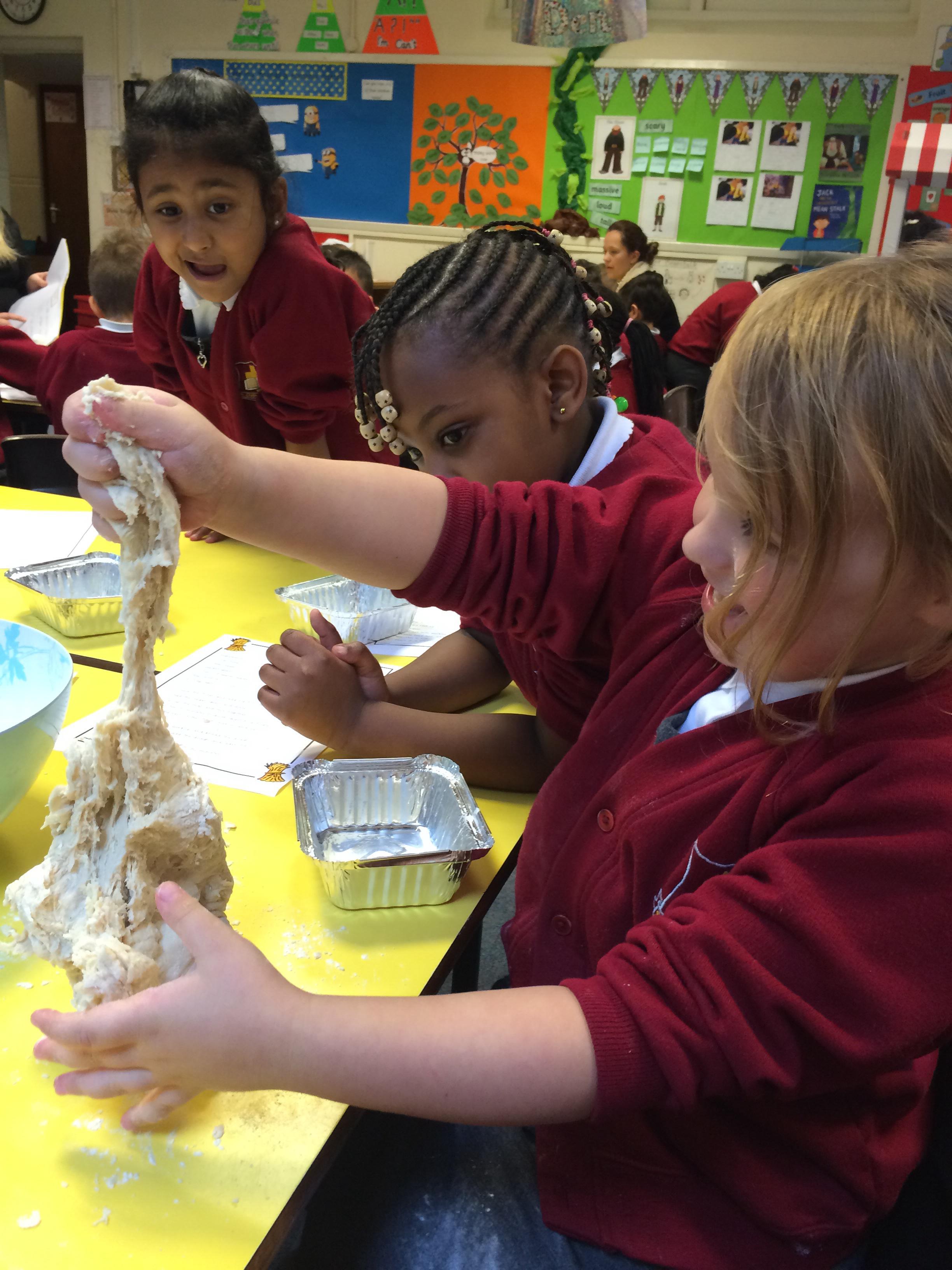 There are lots of hands on activities in Year 1 related to our English topic of Jack and the Beanstalk- green playdough to make a beanstalk, beans to sort and small world set up as Jack's house to encourage re telling of the story.