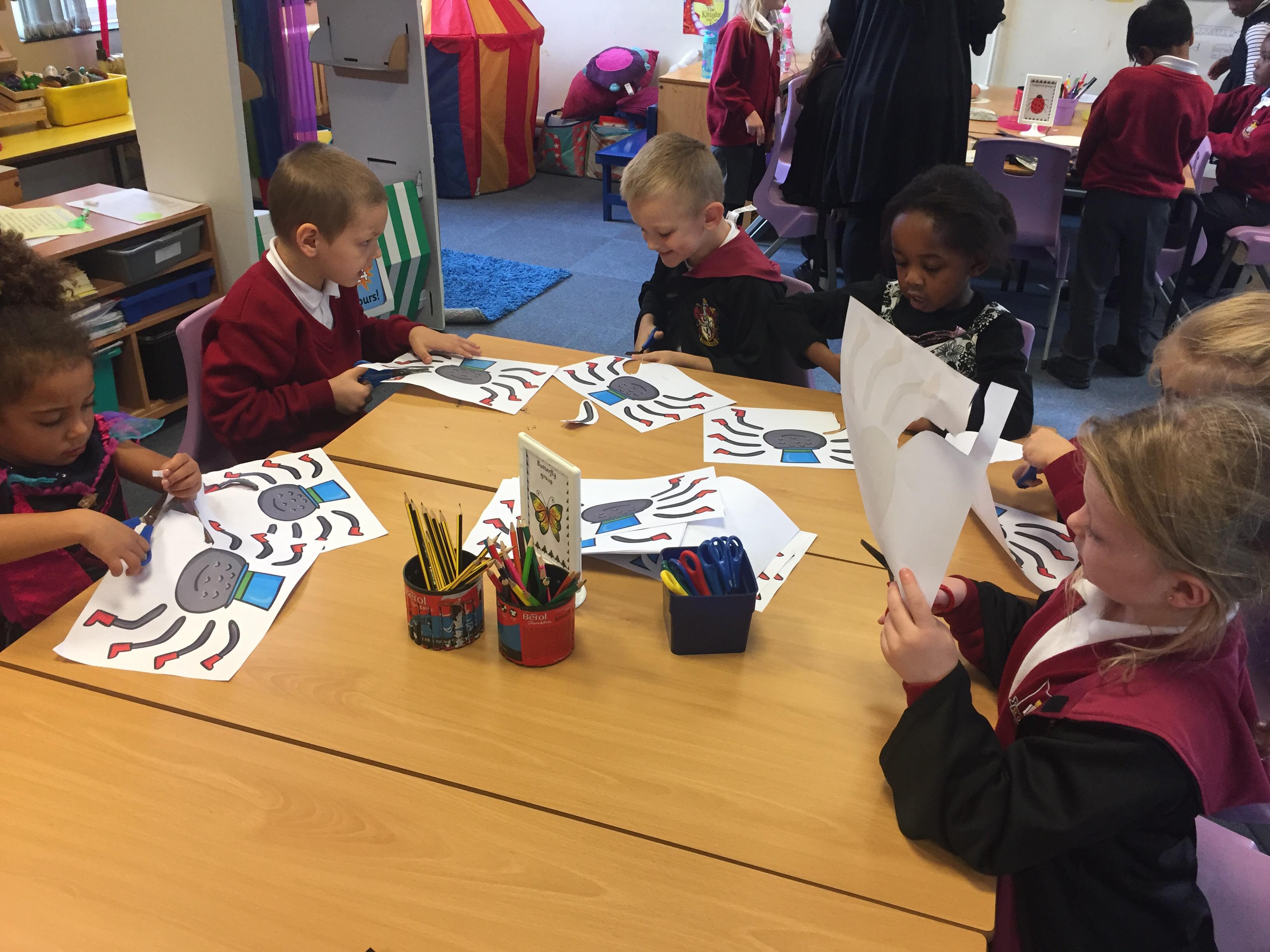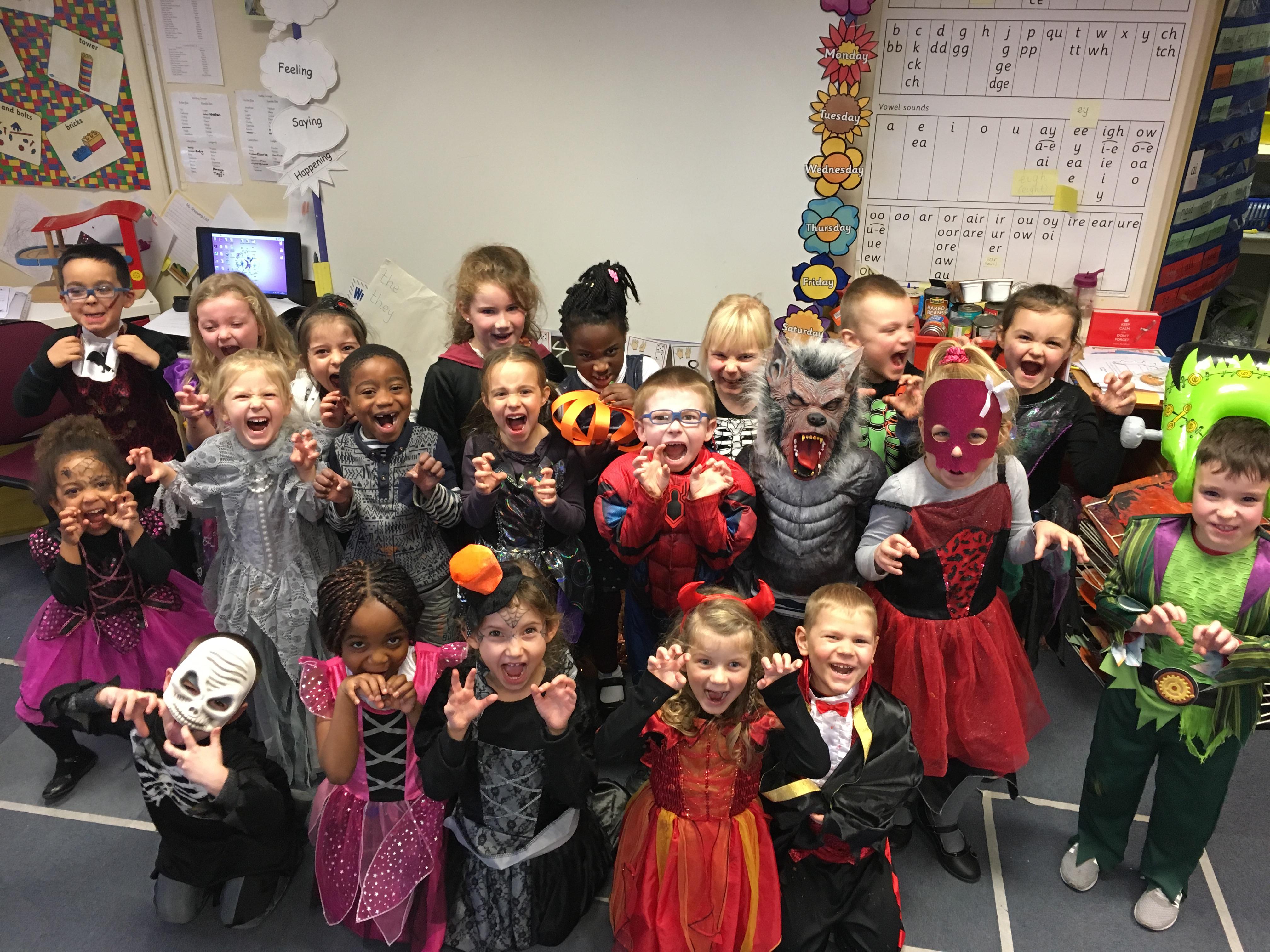 On Tuesday we had our 'Spooky Stories' day. It was lovely to see so many children dressed in their spooky costumes. We had a fun day beginning with the story of Room on the Broom. The children also enjoyed a lunch time disco and some spooky art in the afternoon.