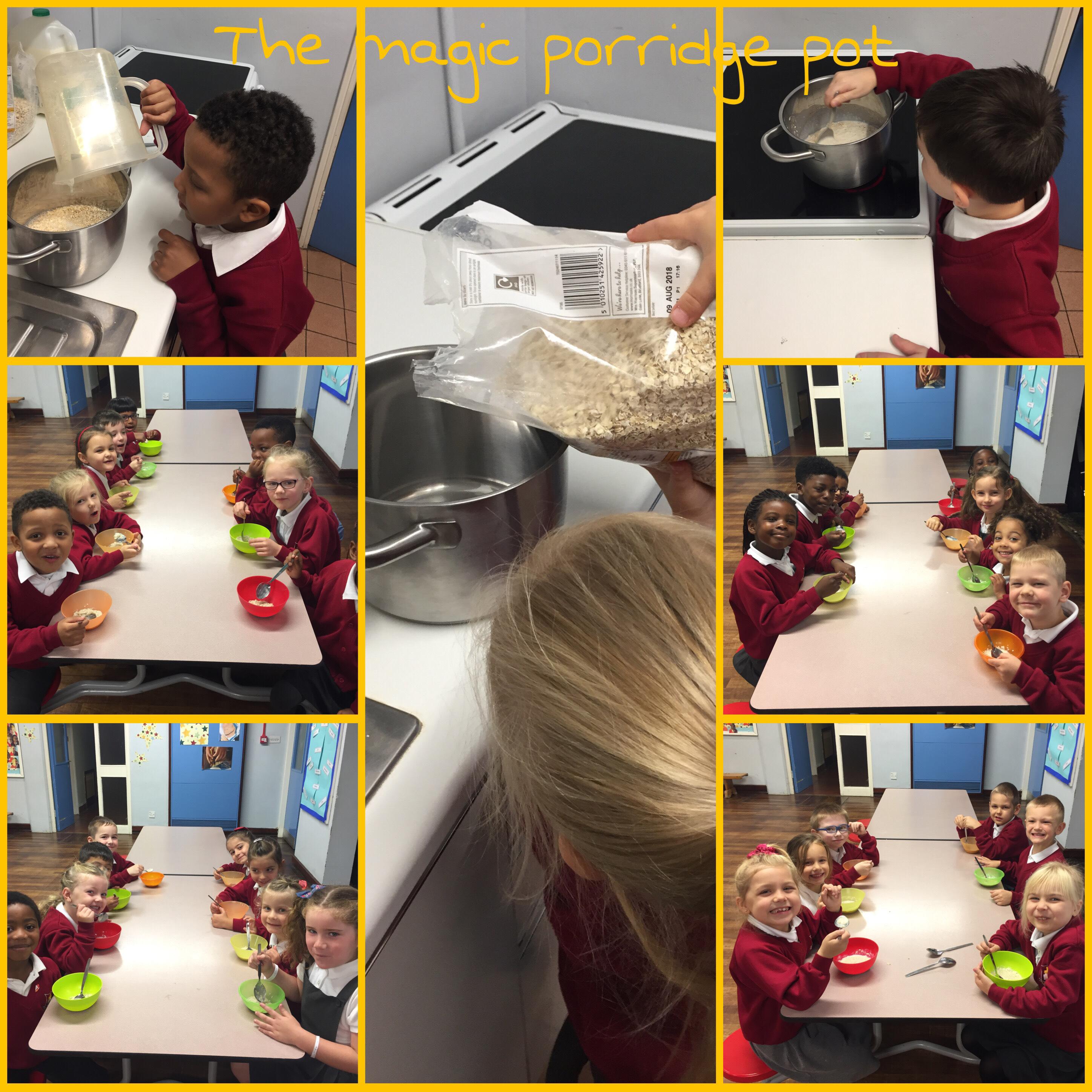 This week we began our English block where we are looking at the story of the Magic Porridge Pot. Somebody had been into our class and left a pot of overflowing porridge- just like the book!