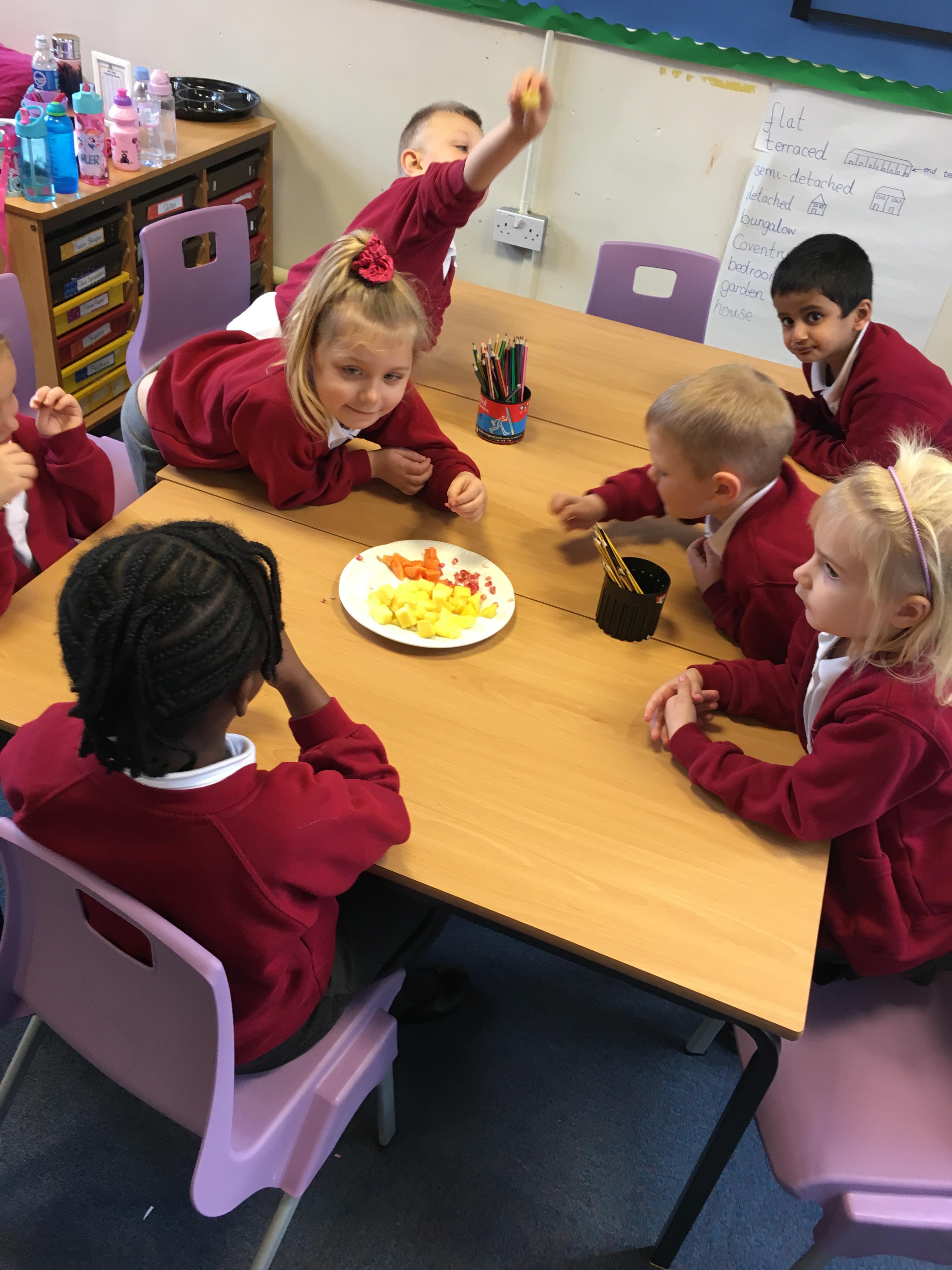 On Thursday afternoon we concluded our work on Our Local Area by visiting a supermarket. The children explored the store, including the fish and cheese counters and came back with some yummy fruit which we tasted on Friday.