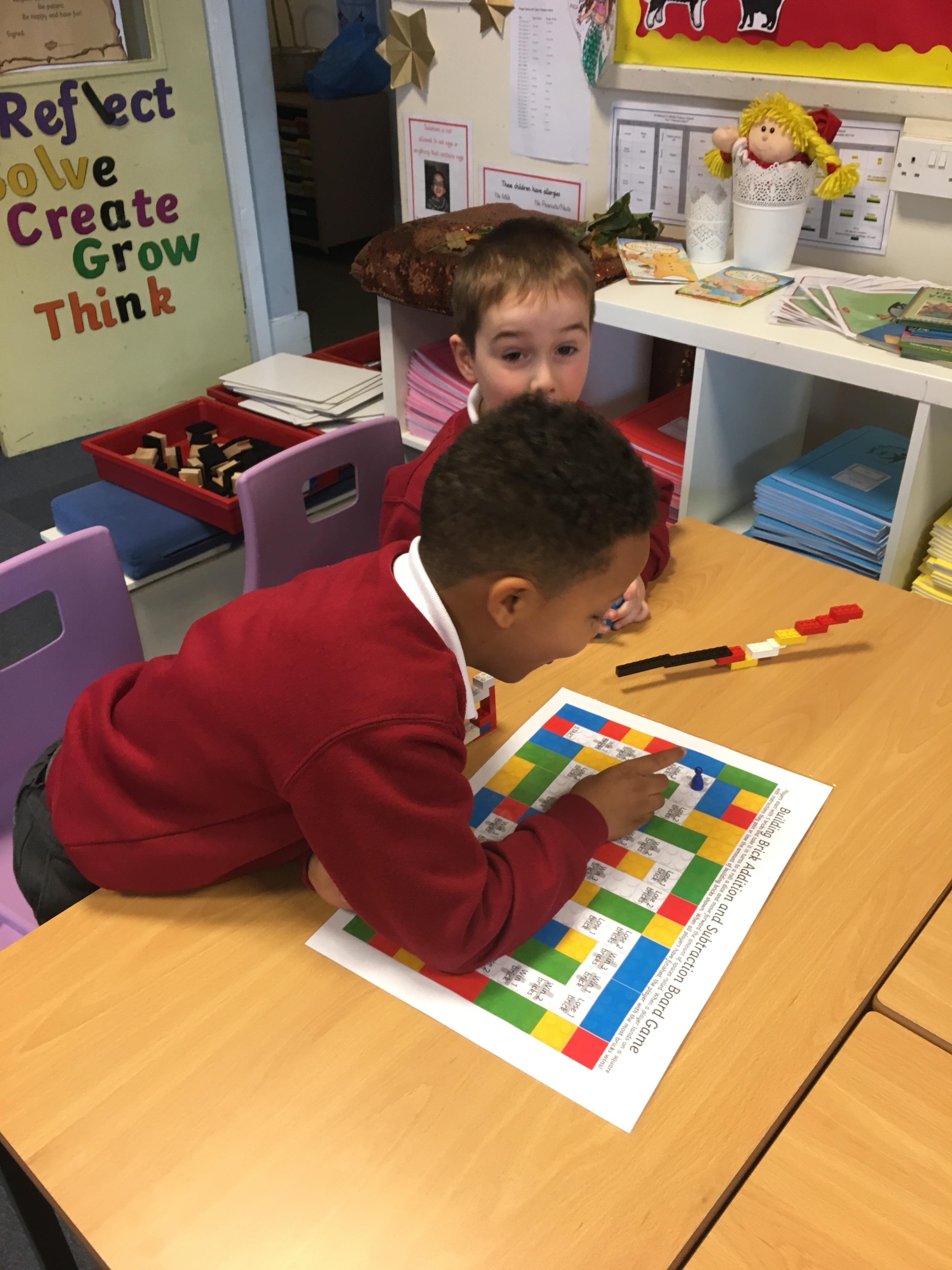 In maths we looked at subtracting a single digit from a single digit, we had lots of fun playing bingo. We also began to learn our addition facts to 5.