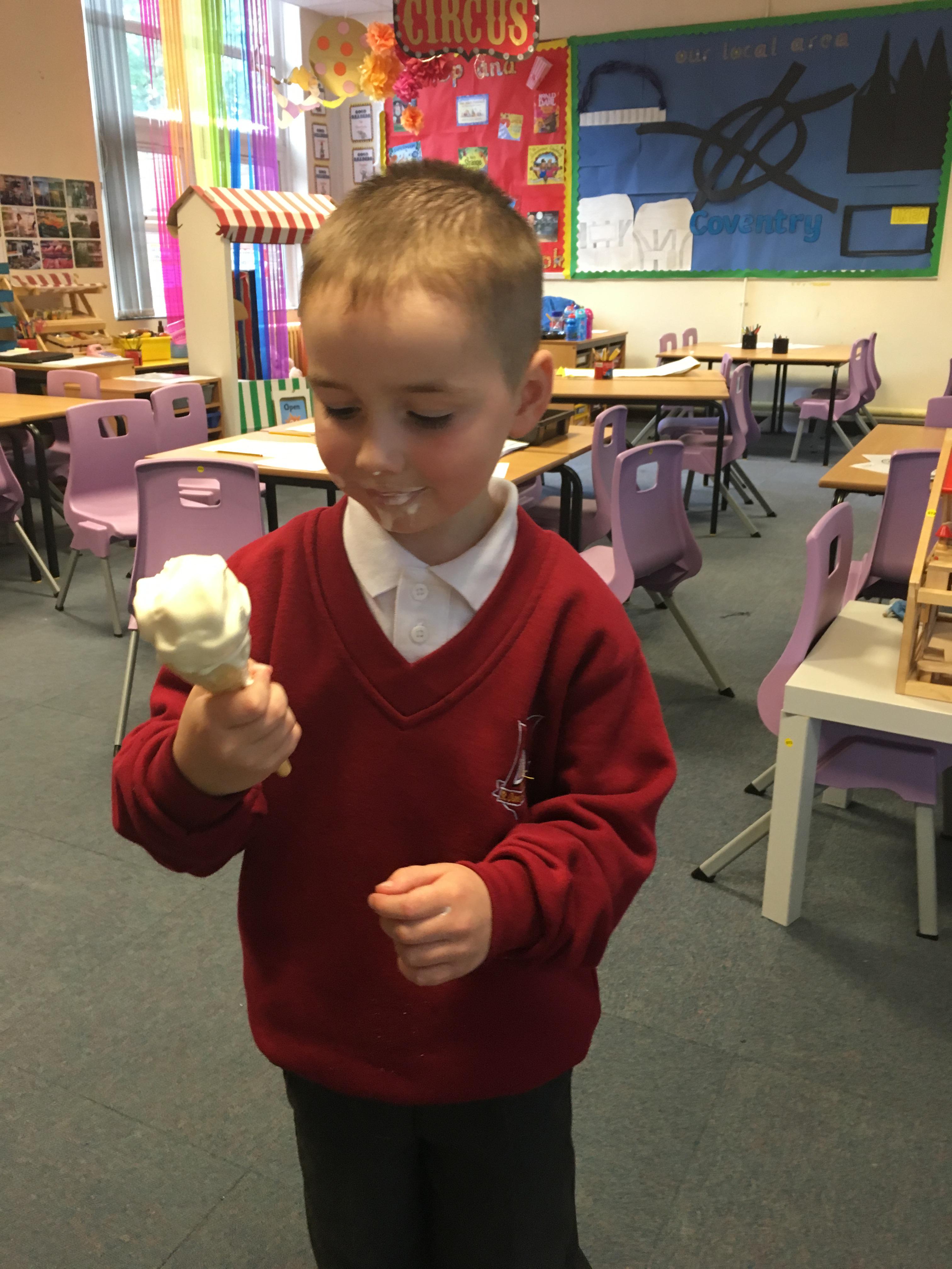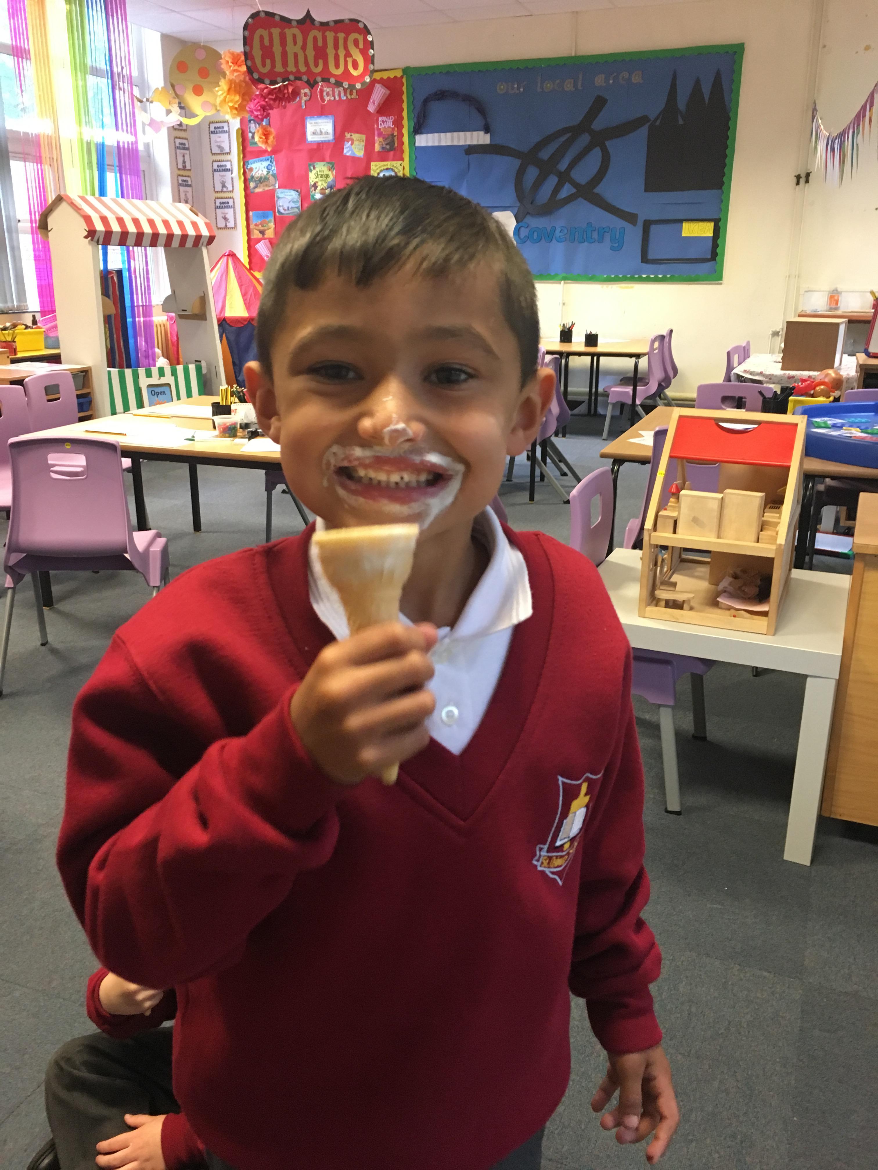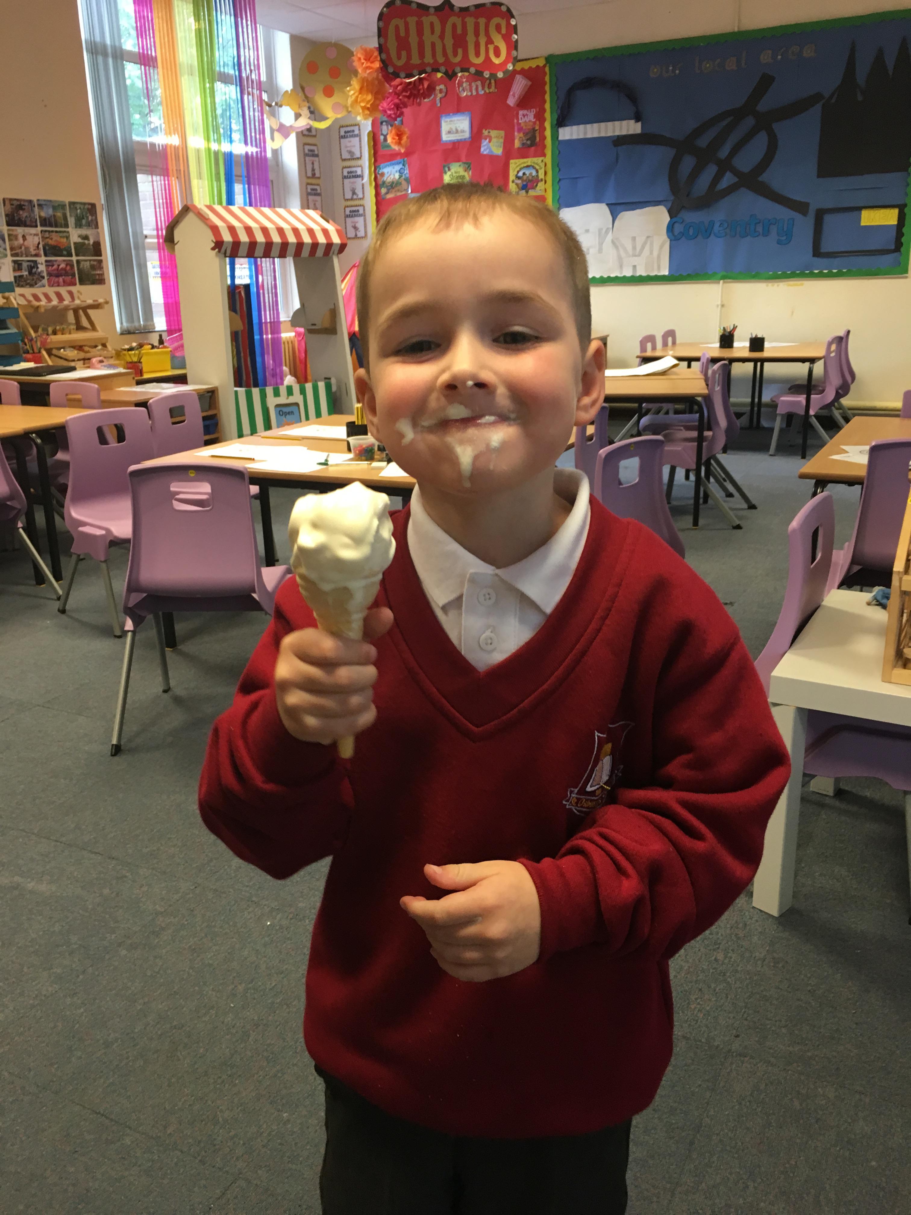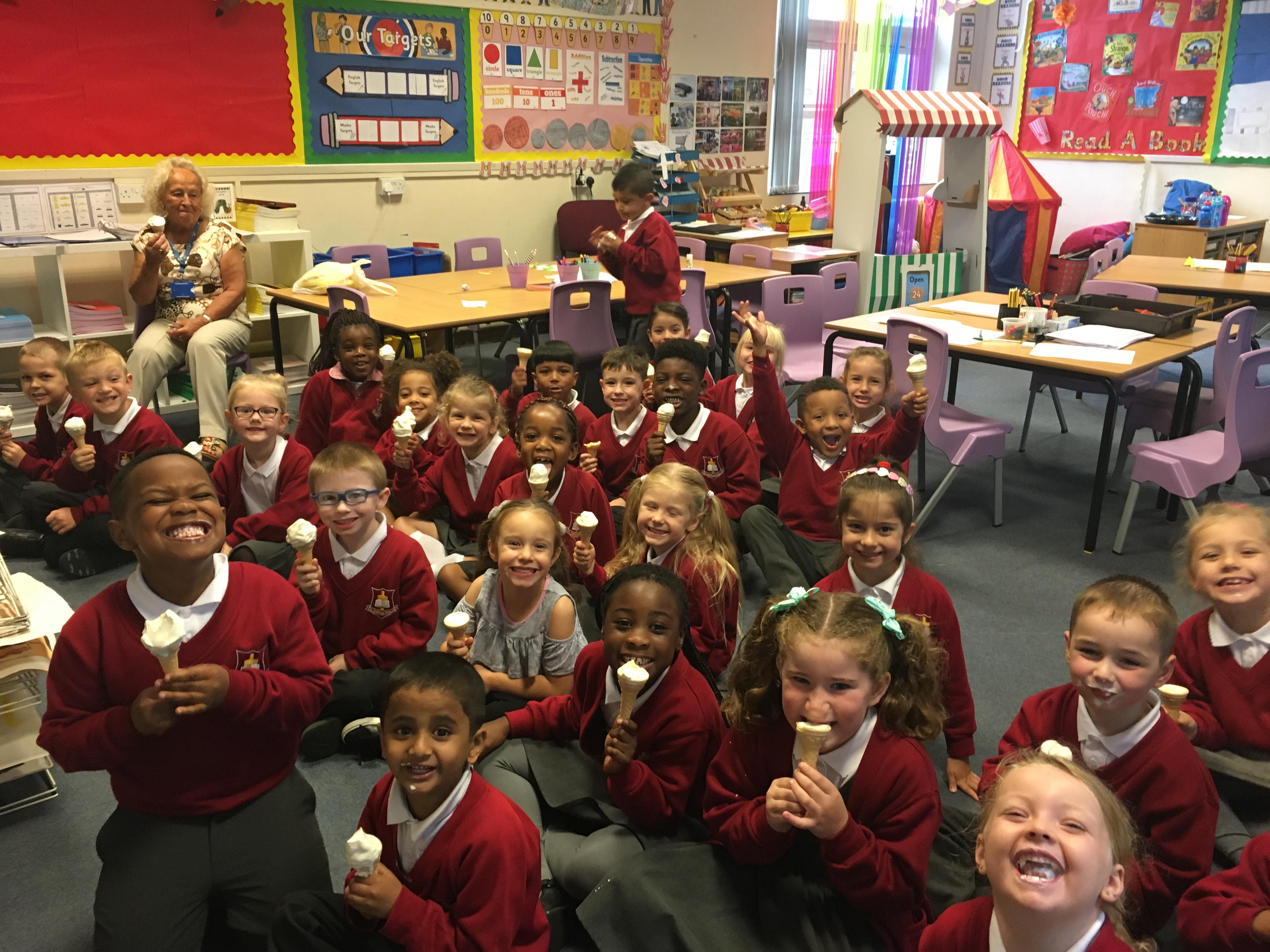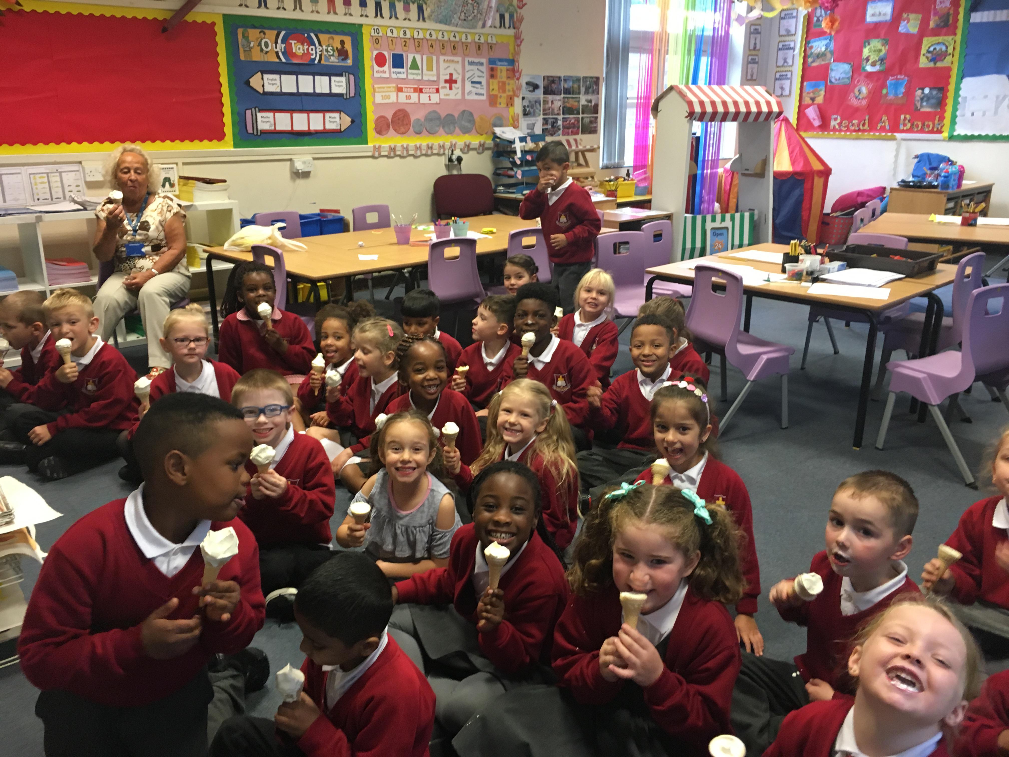 Today we took part in our first whole school mass of the year to celebrate the feast day of St Osburg. As a treat we all had an ice cream!