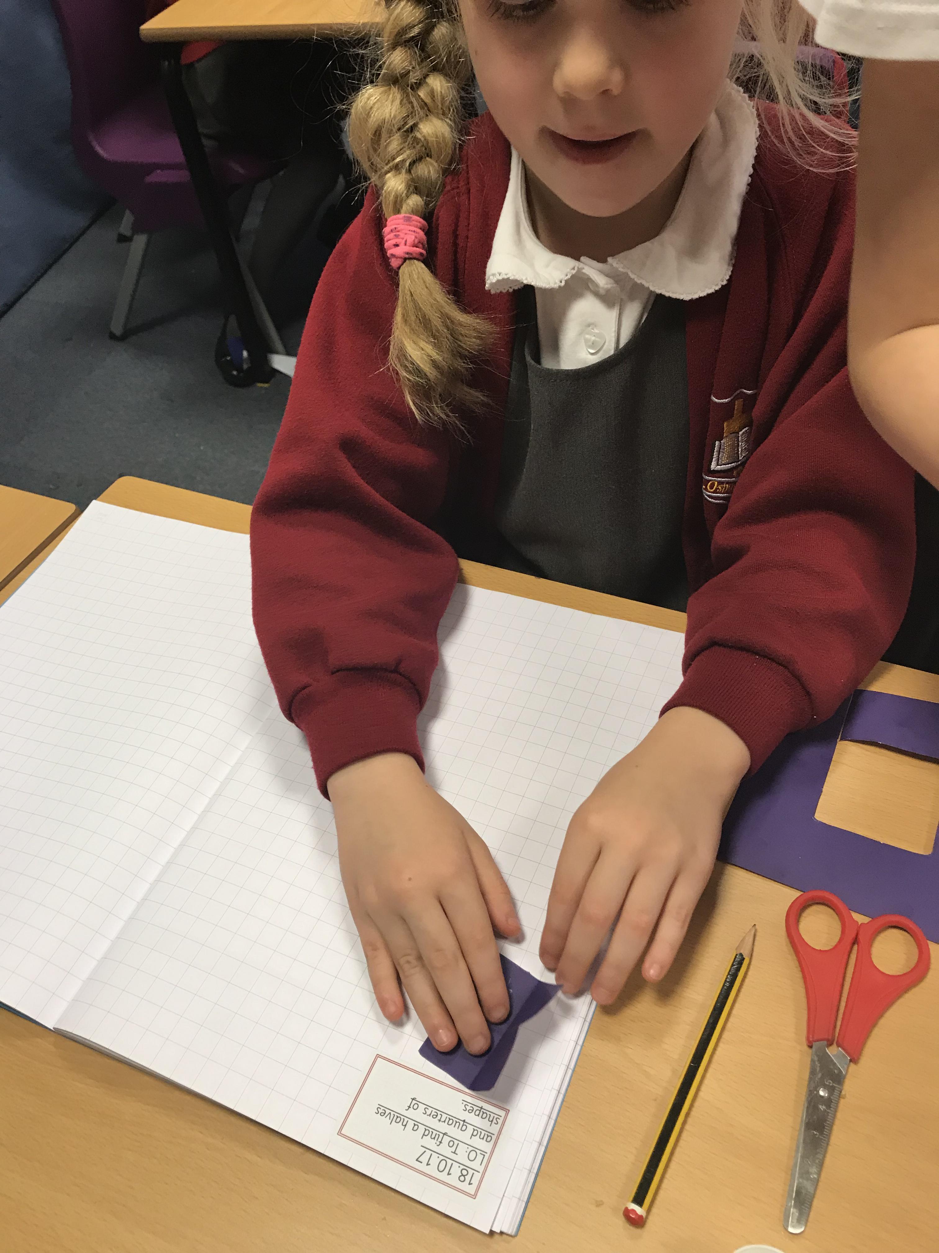 Year 2 have been busy this week learning about fractions in maths. We began the week by cutting cakes into halves and quarters and then we were finding halves and quarters of different shapes.