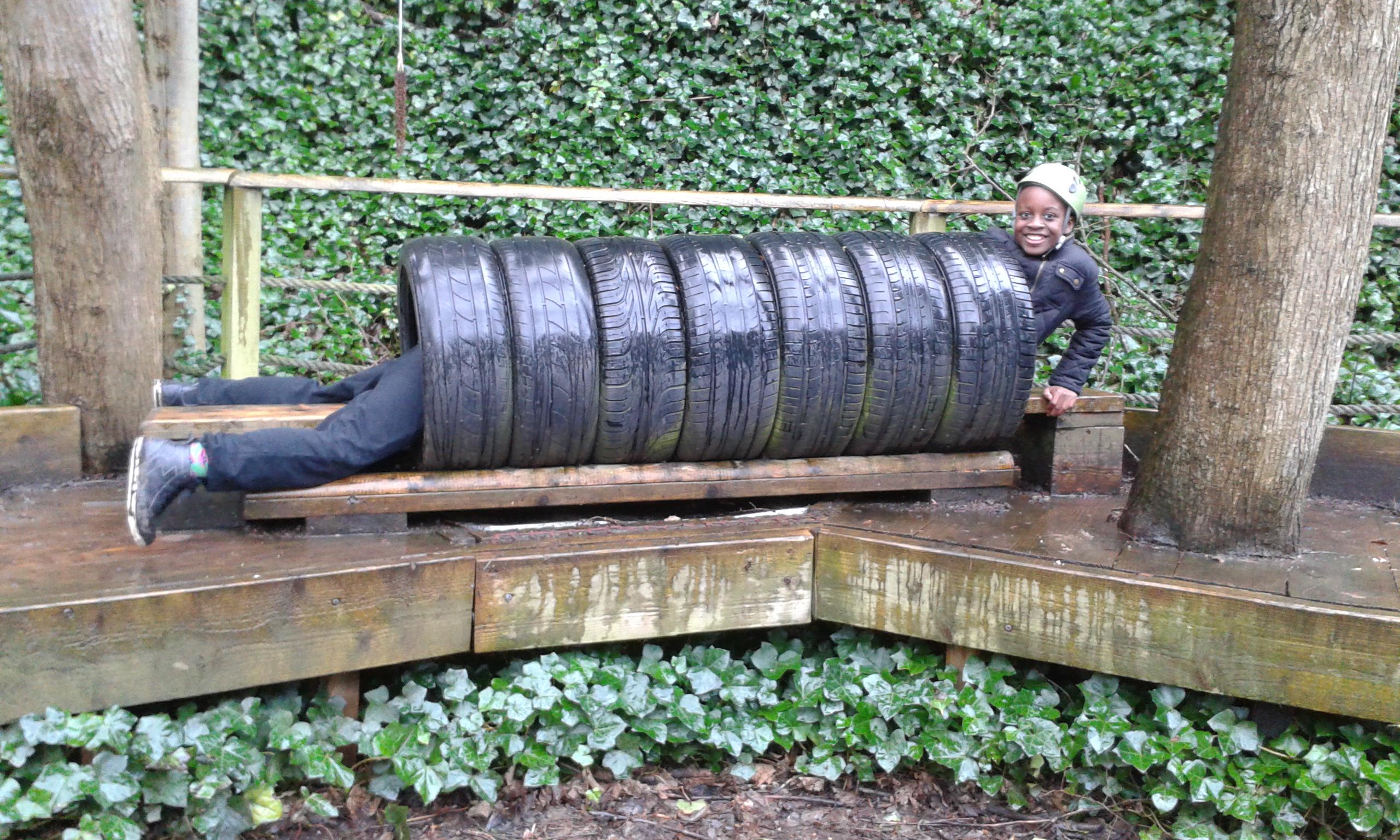 The adventure course with wobbly bridges, zip wires, and other activities testing our strength, balance, co-ordination and nerve. Then we had to do it all again blindfolded!