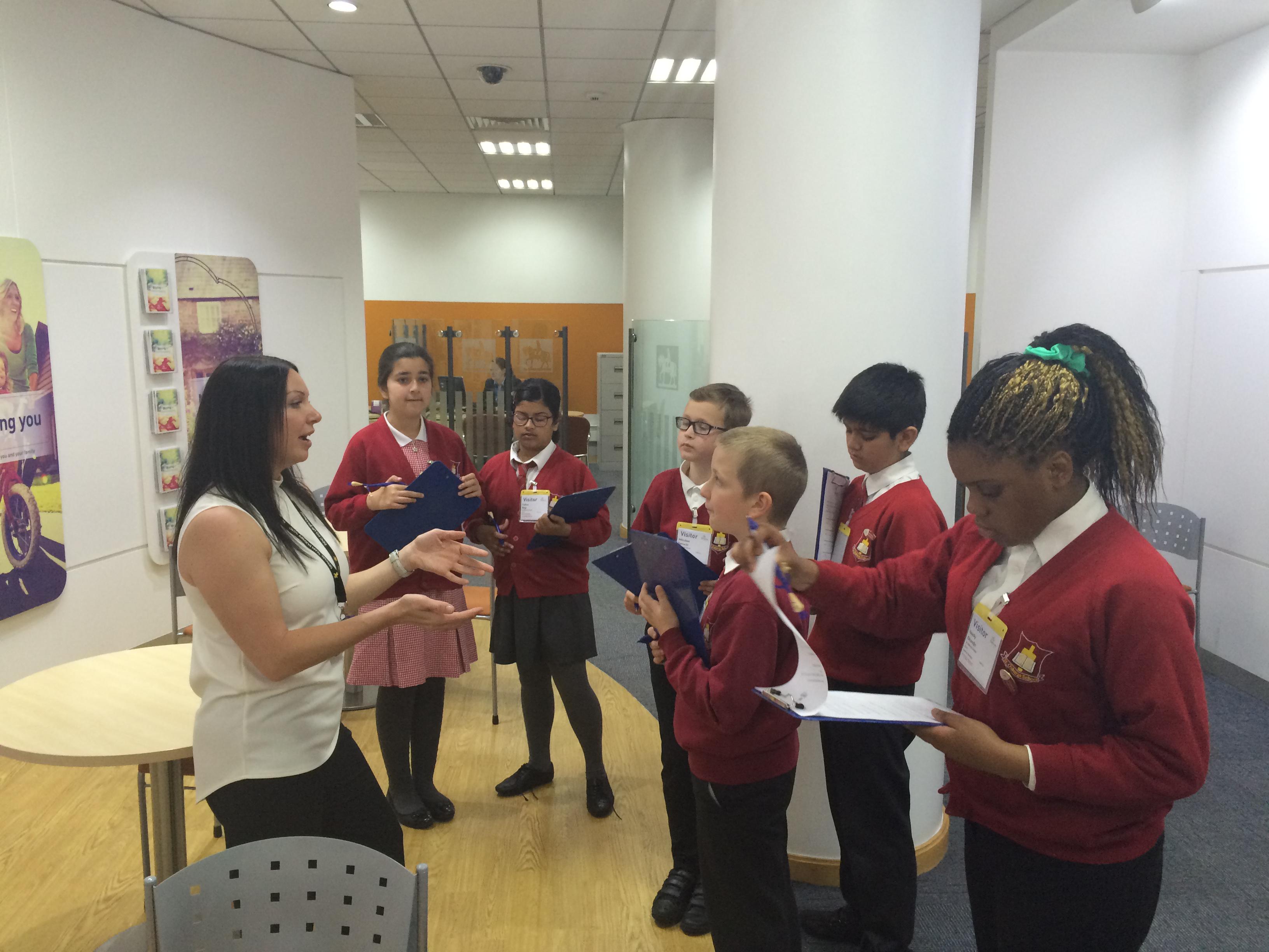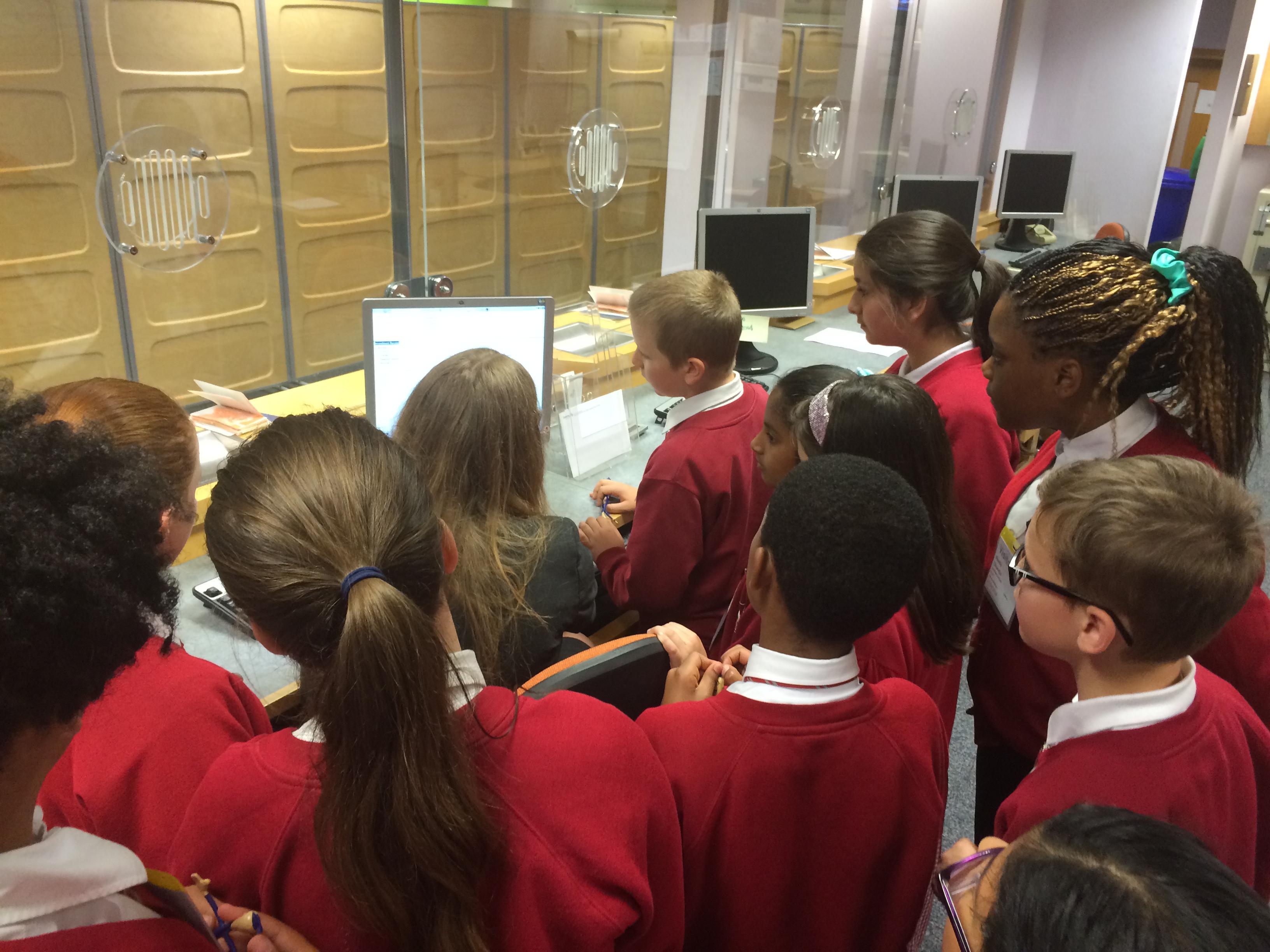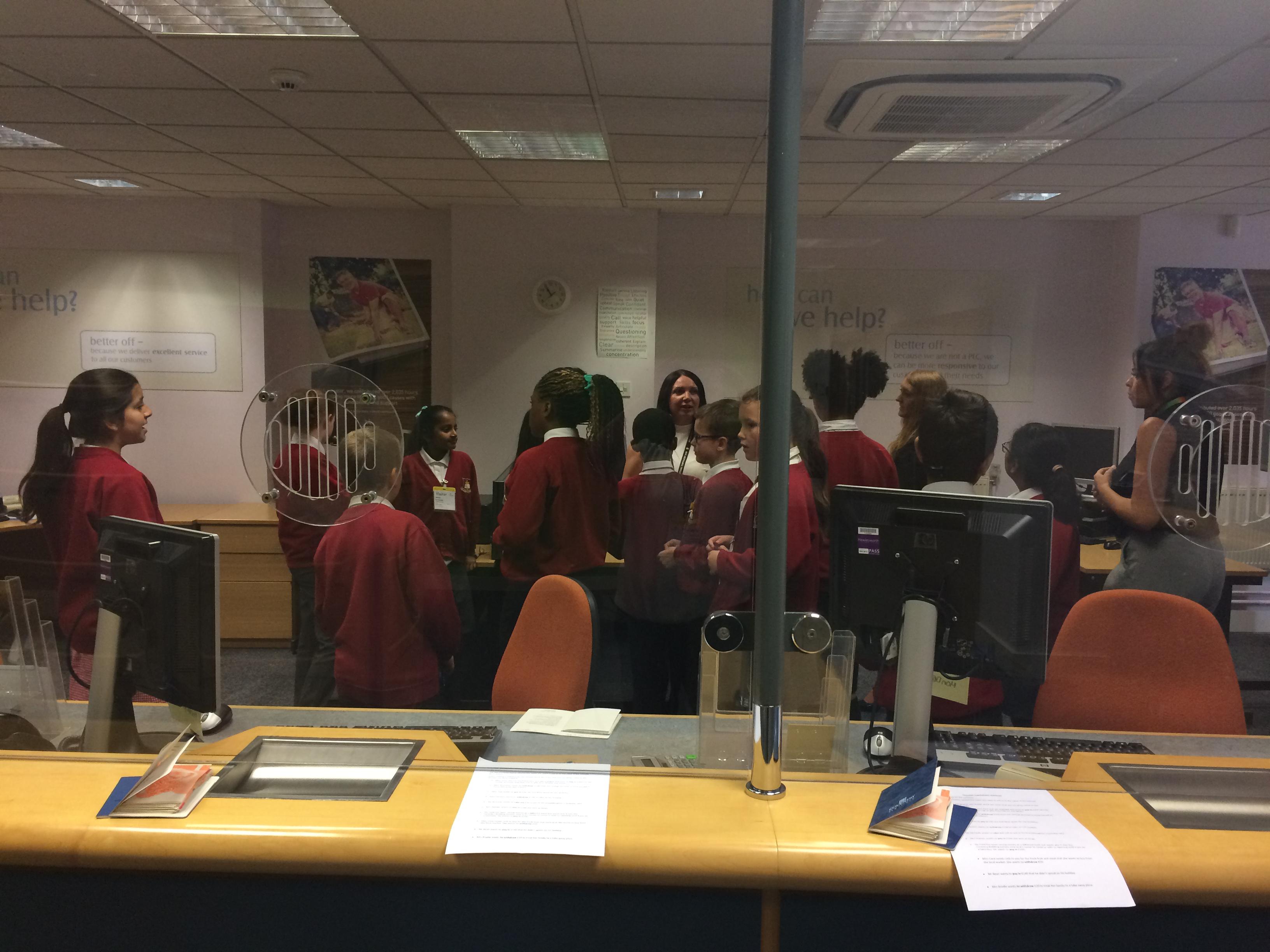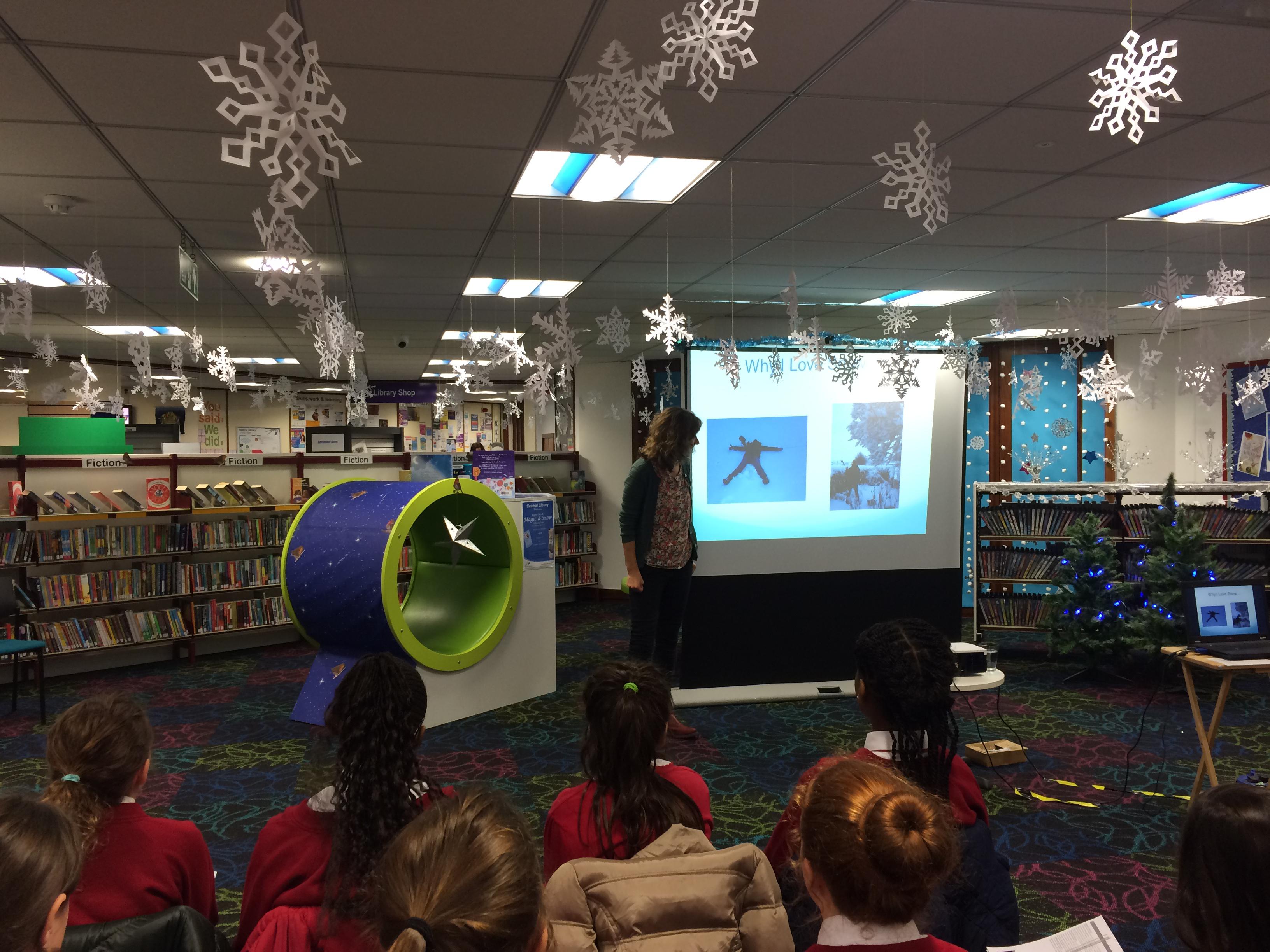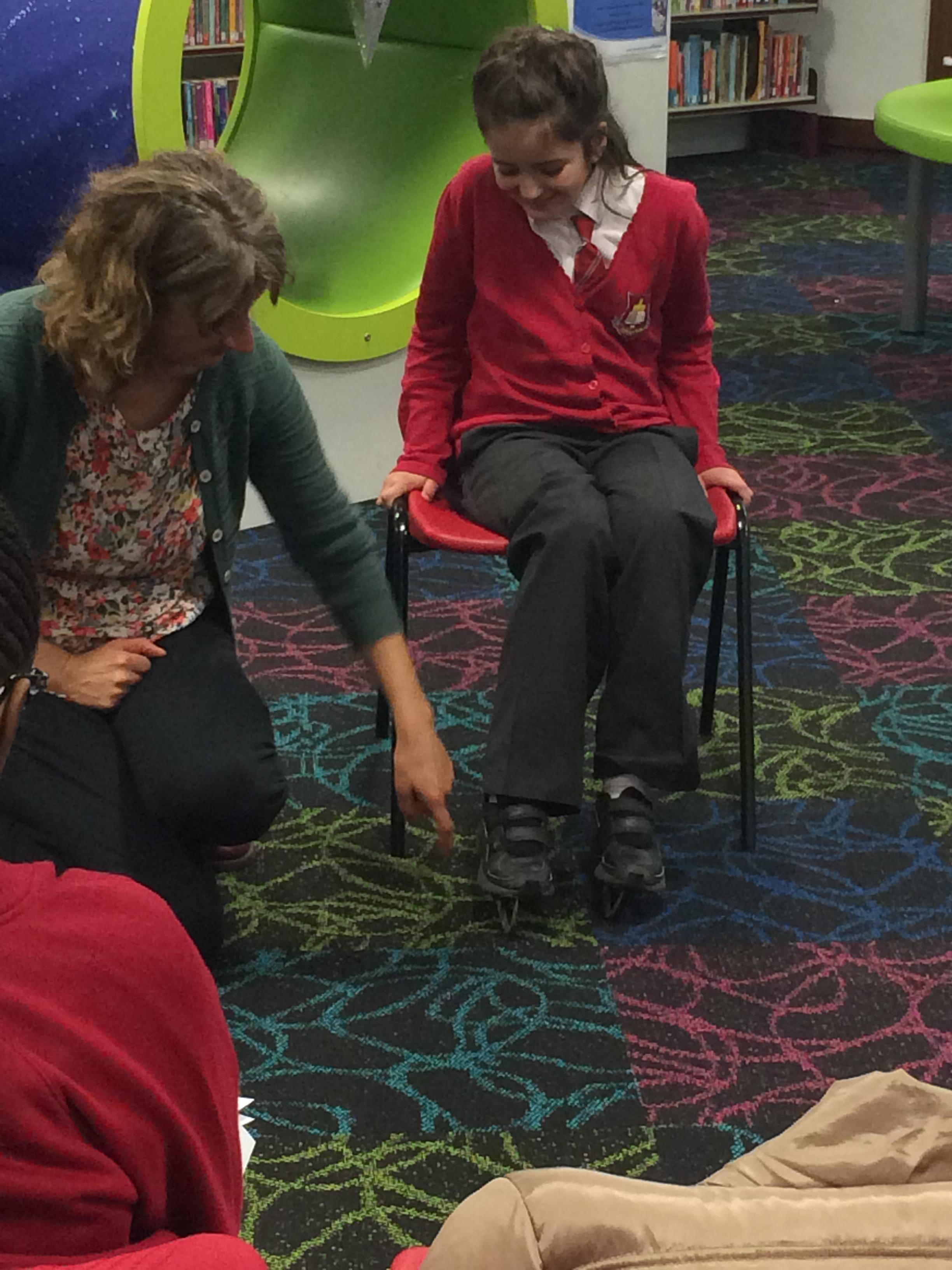 Year 6 girls meeting author Emma Carroll at Central Library.
