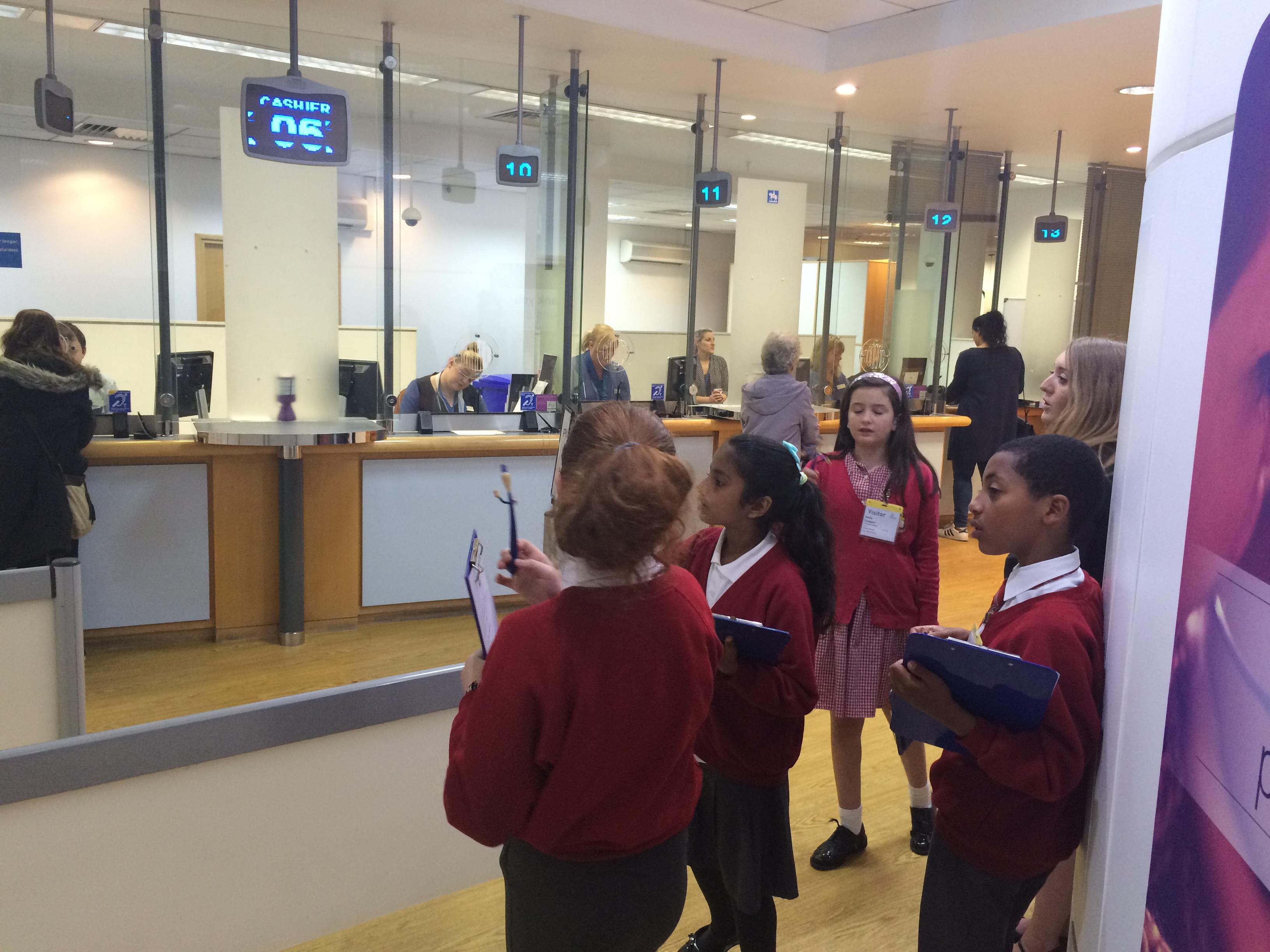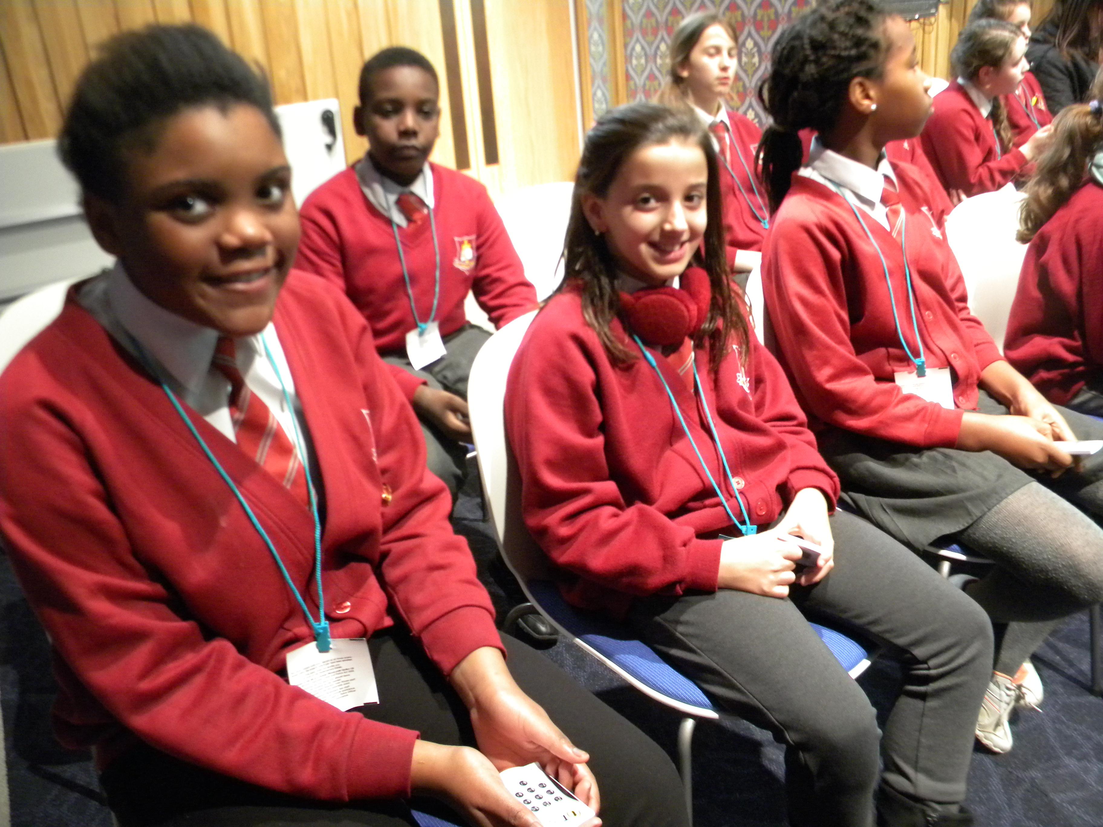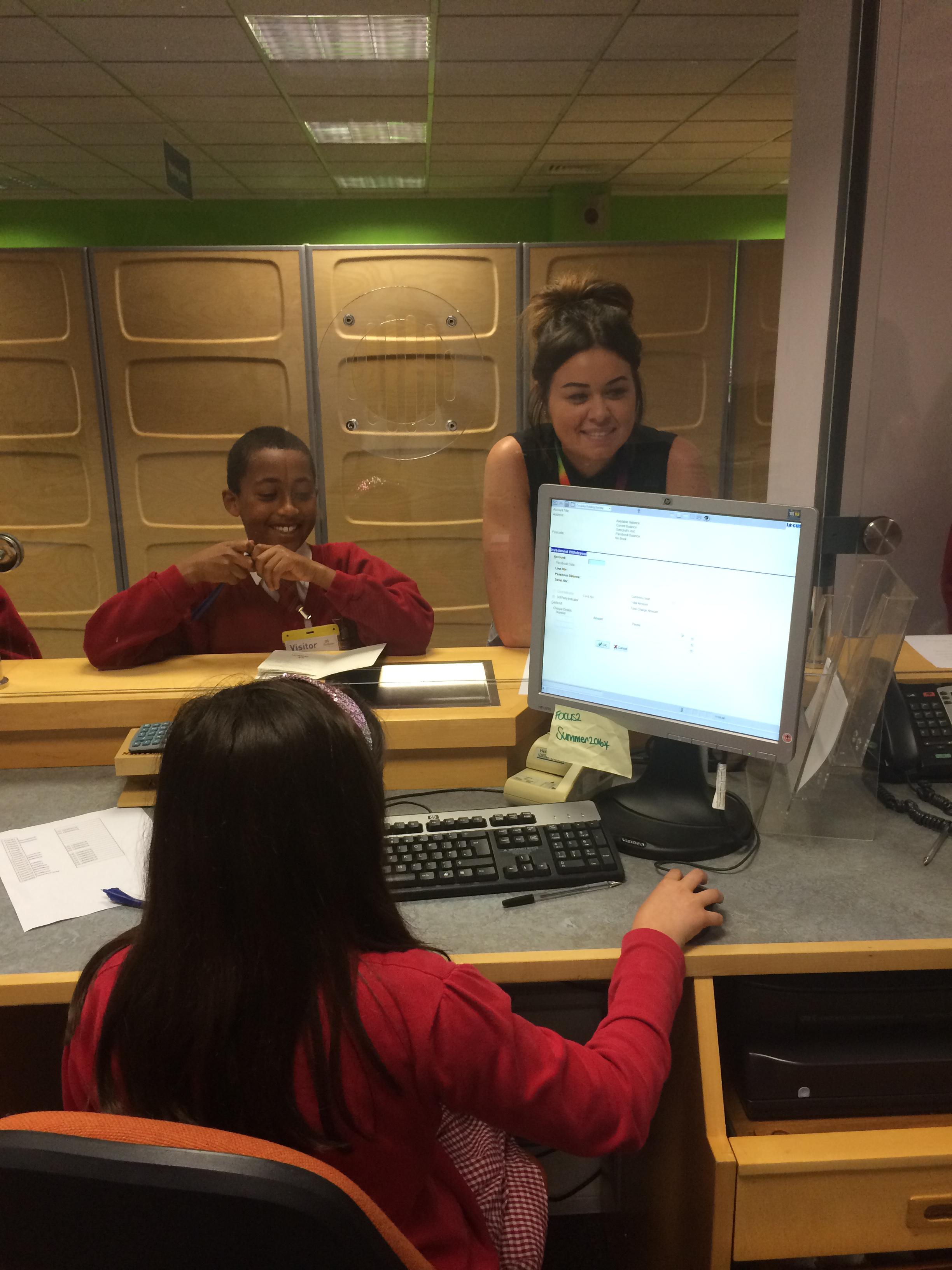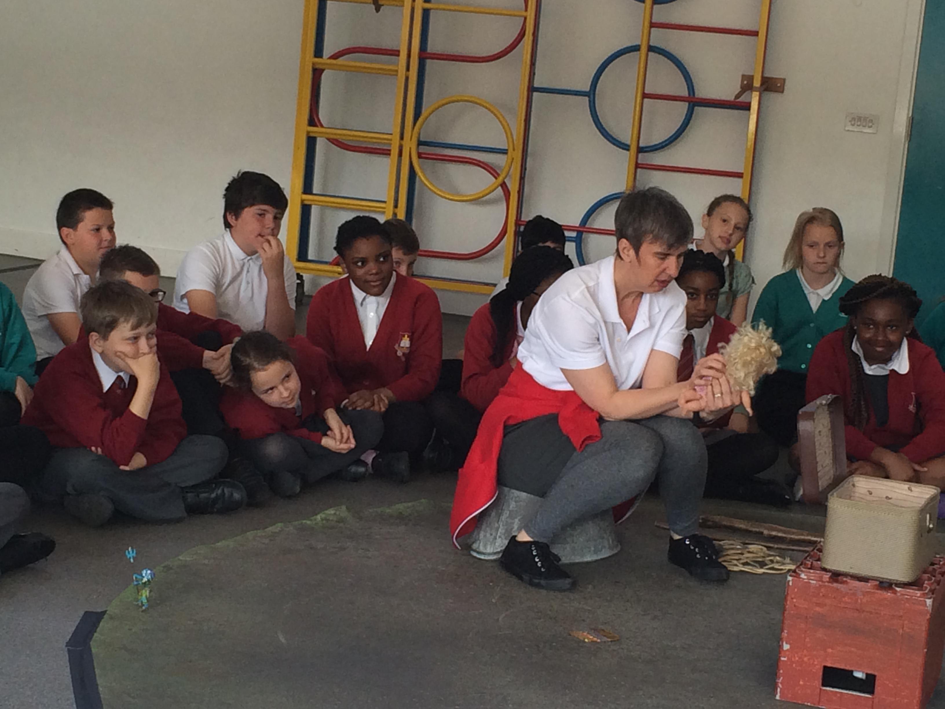 Year 6 girls meeting author Emma Carroll at Central Library.